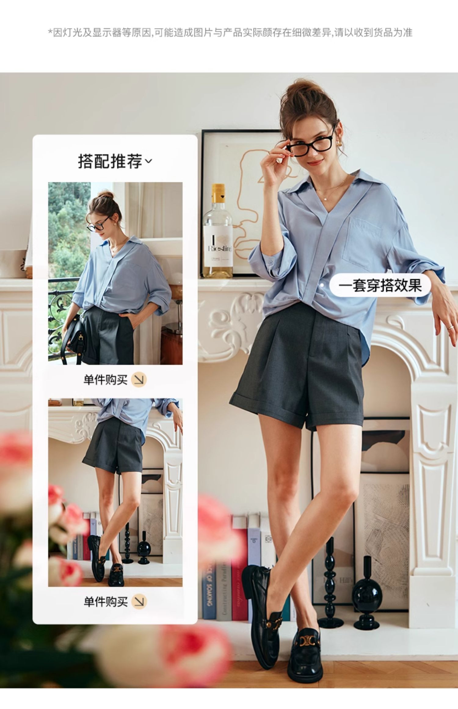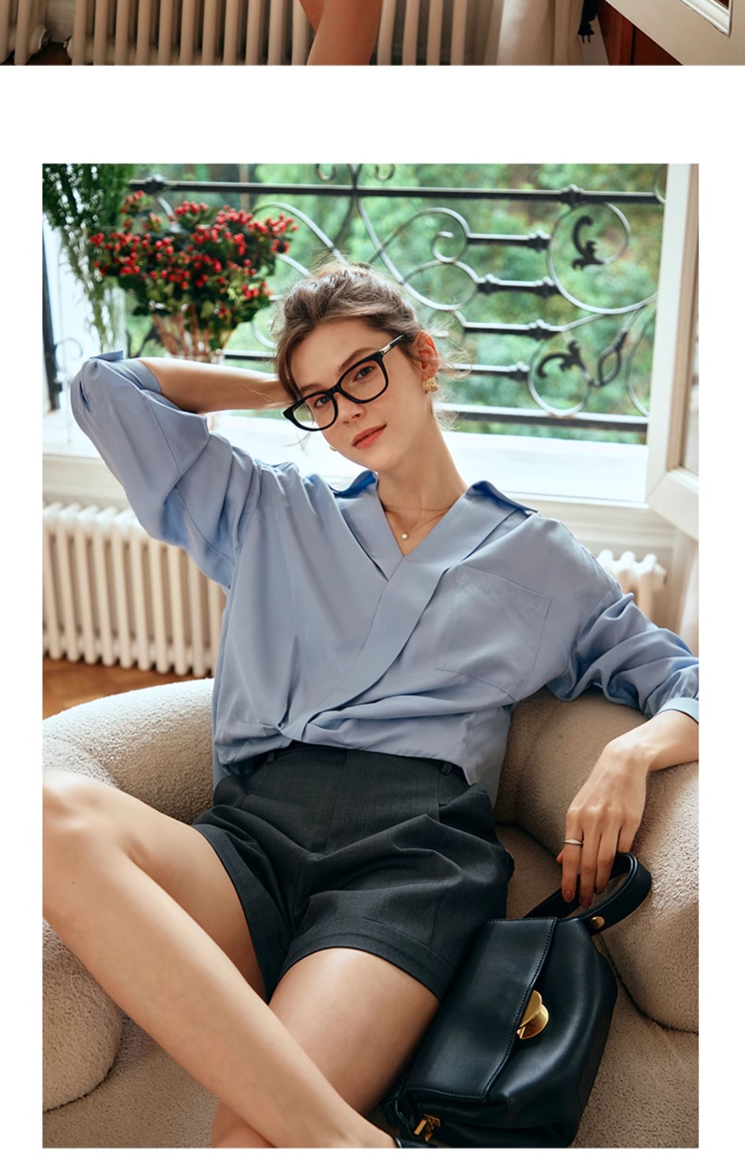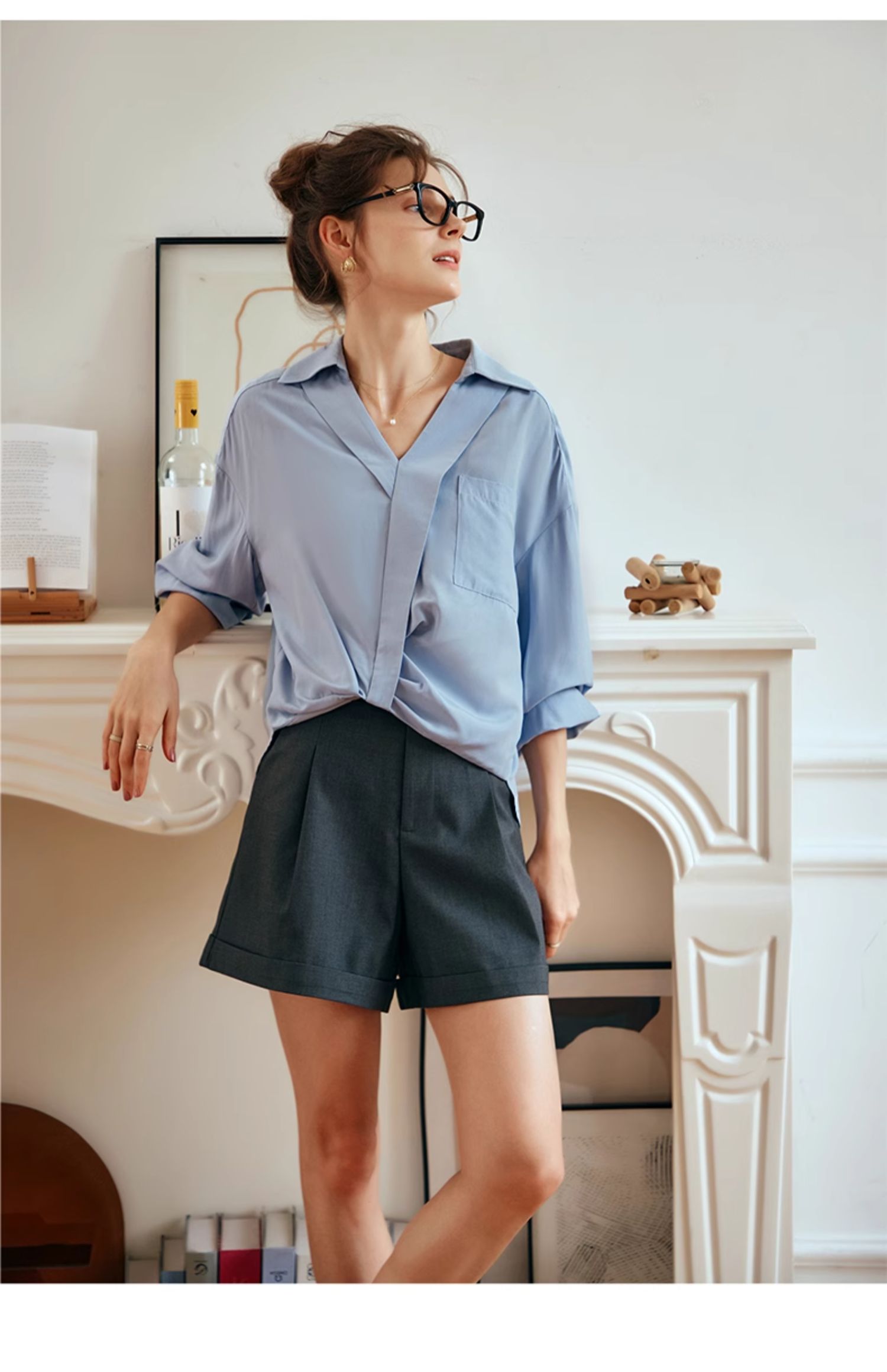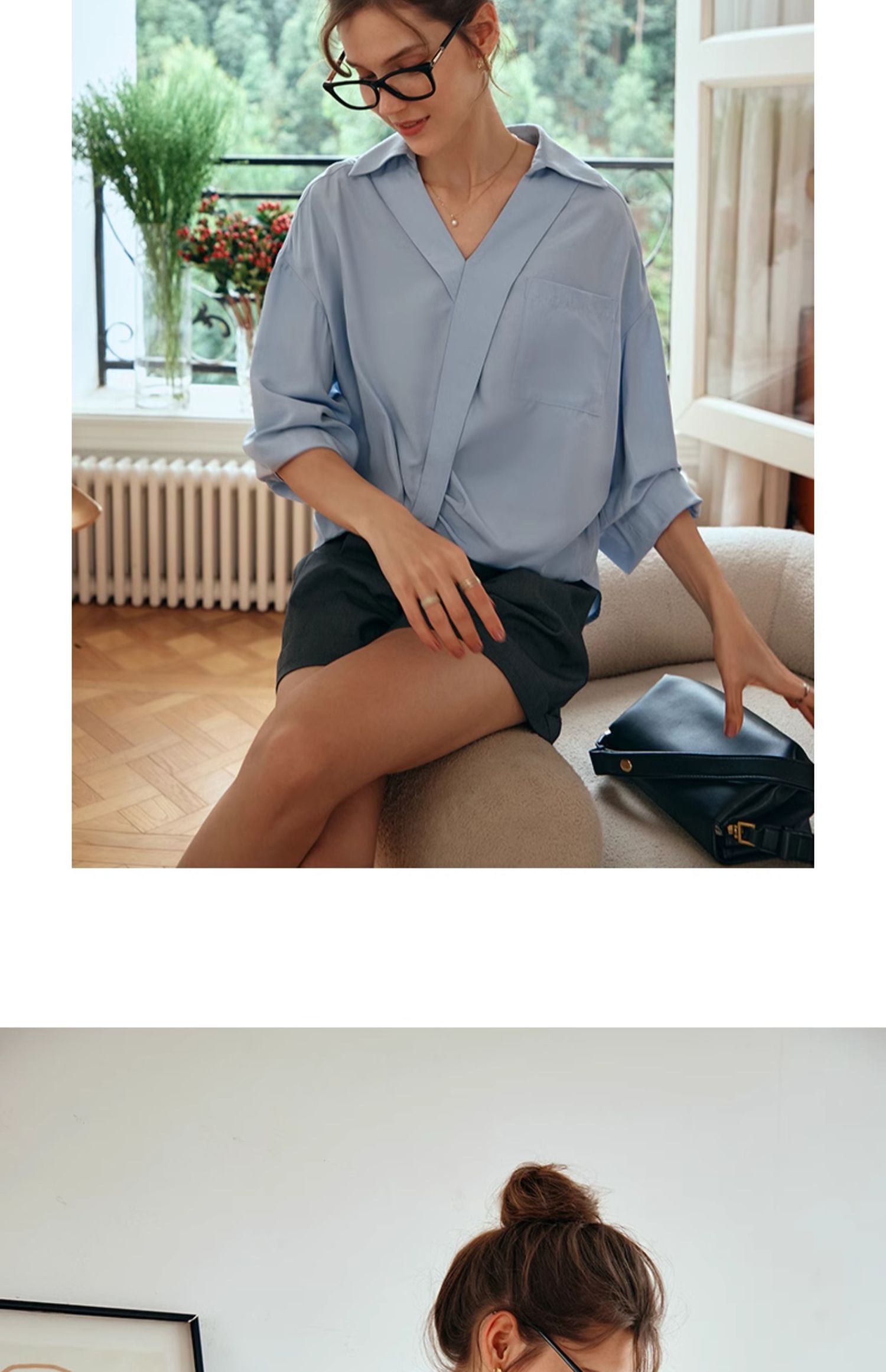 OLrain欧芮儿蓝色雪纺衫女早春2024新款通勤小众设计感高级衬衫