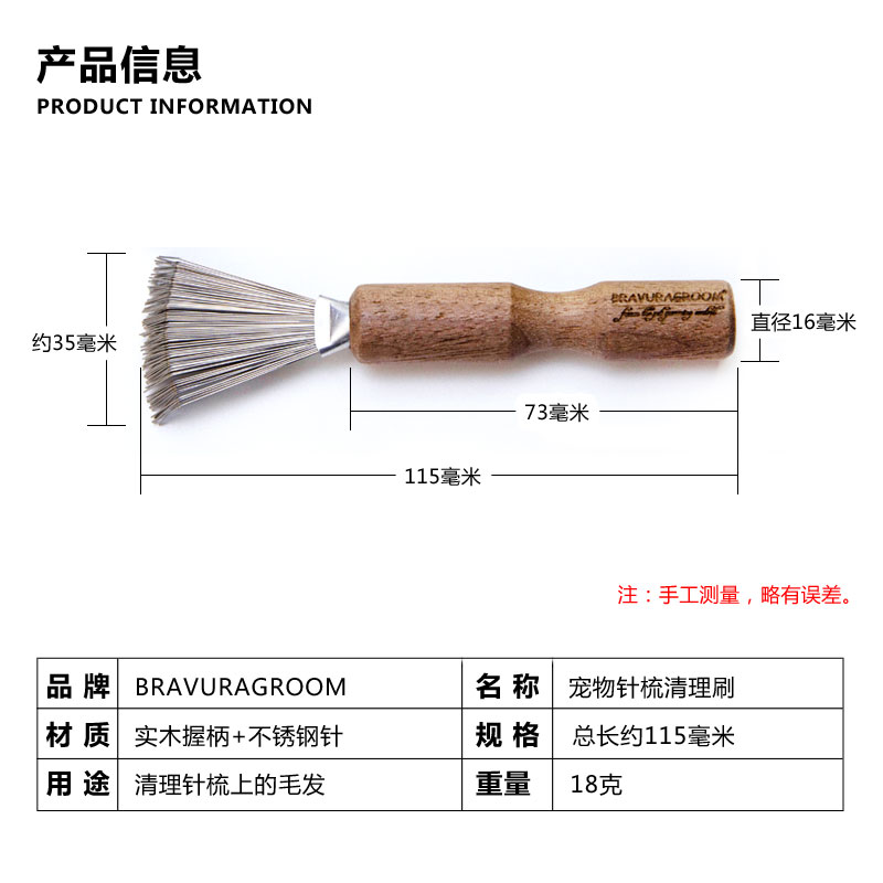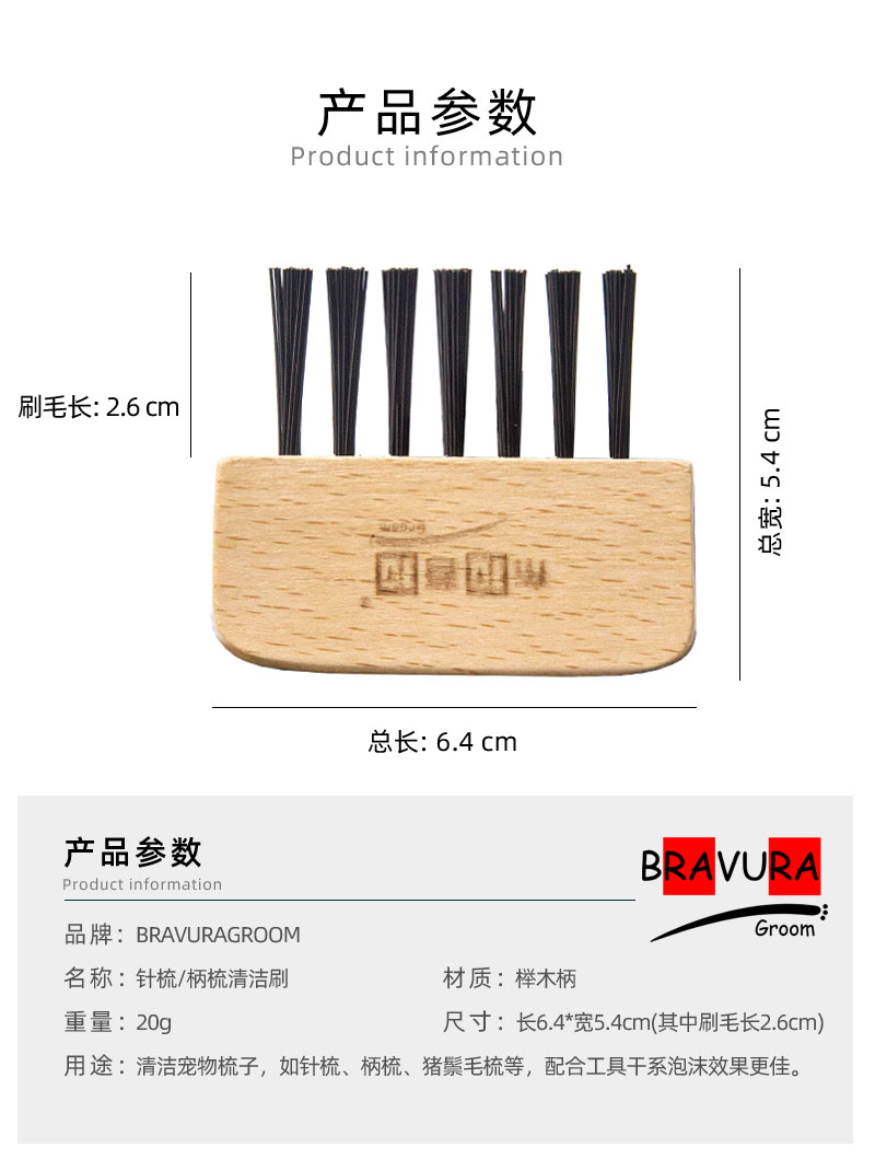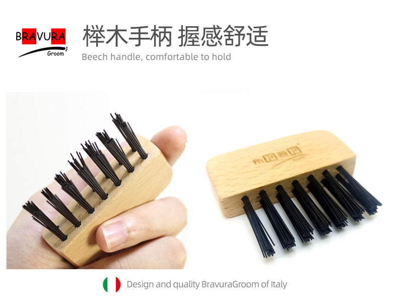 针梳清洁刷 柄梳 猪鬃毛清洁 宠物美容工具清理套装 意大利BRAVURAGROOM