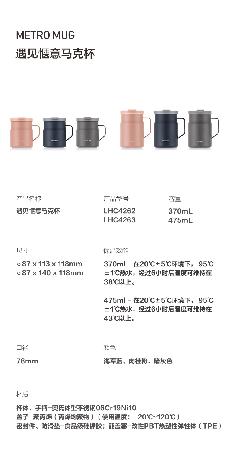 乐扣乐扣保温杯水杯女咖啡杯桌面办公室马克杯304不锈钢男生