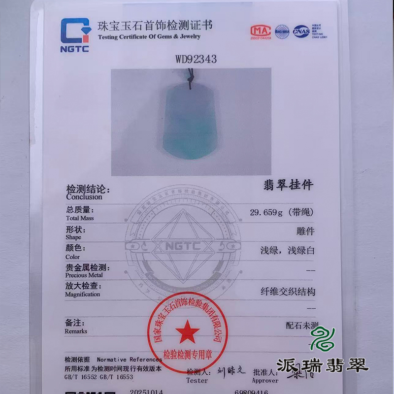 派瑞翡翠 翡翠挂件 糯冰 浅绿