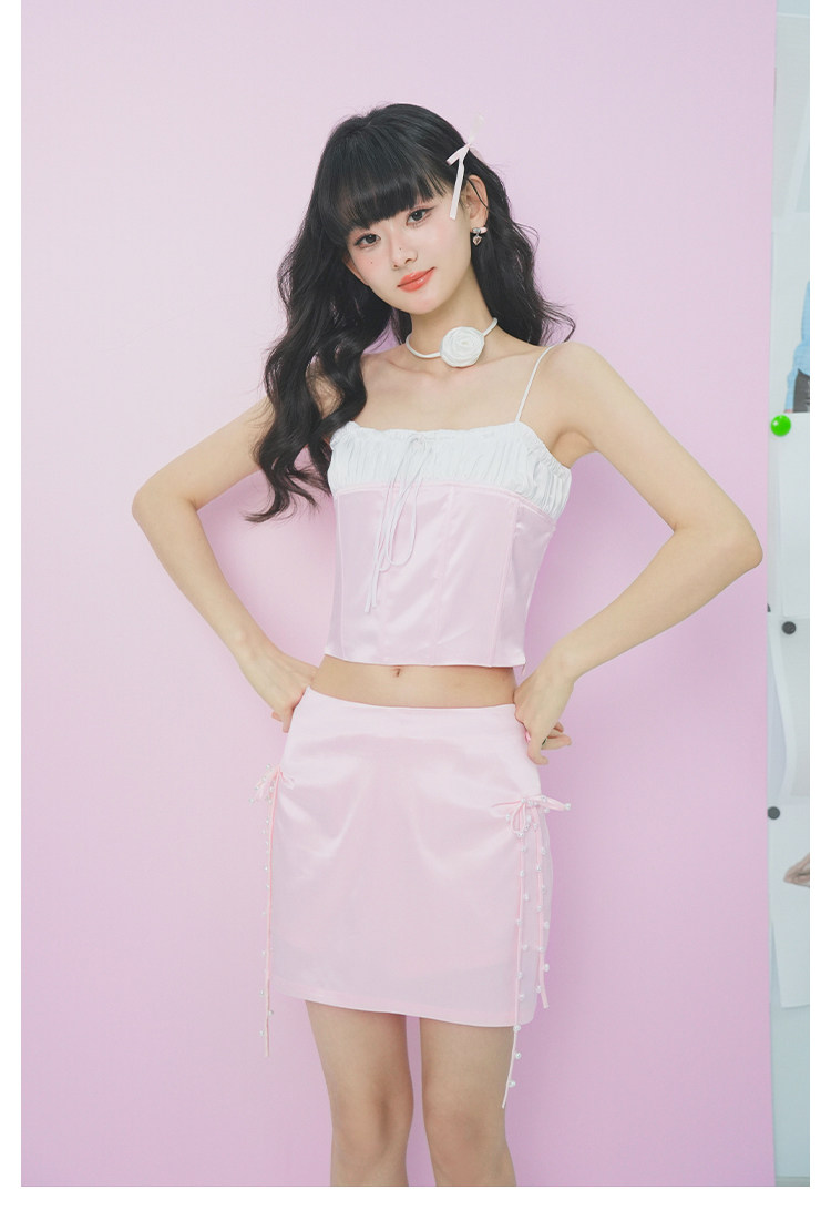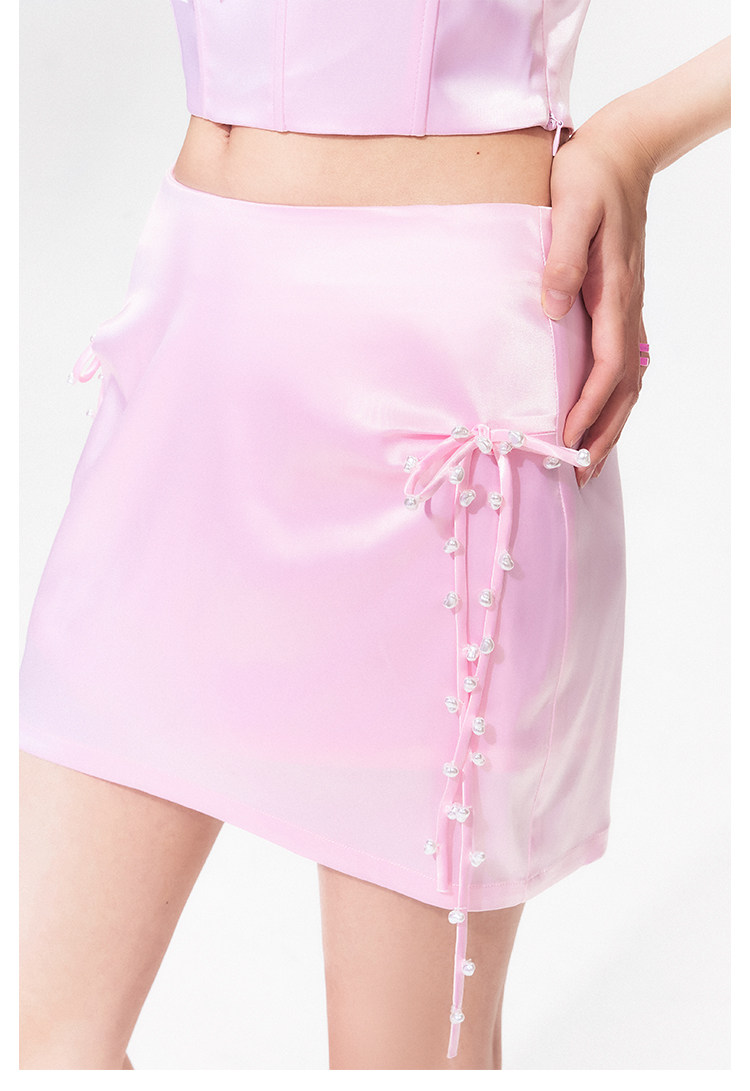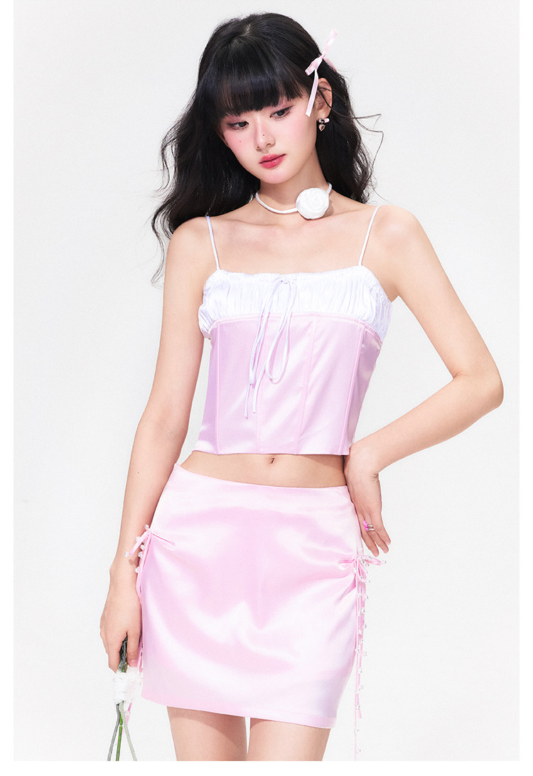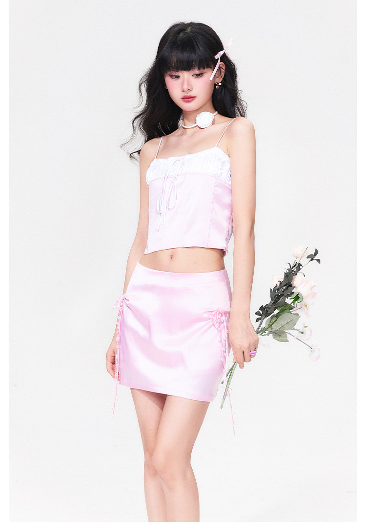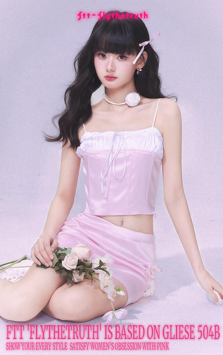 FTT FlyTheTruth『樱桃香气』 粉色缎面系带半身裙女夏纯欲风短裙