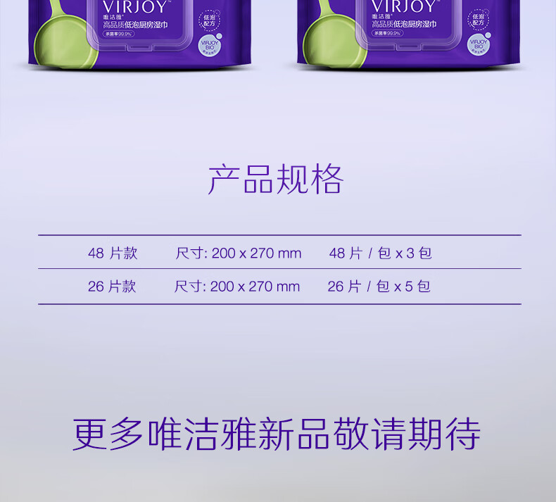 【秒杀】唯洁雅高品质低泡厨房湿巾48片*3包
