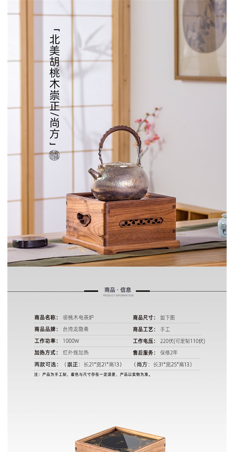 龙隐斋 崇正/北美胡桃木电陶炉 1000W 尺寸21*21*13cm(6台/箱)电热茶炉家用静音烧水煮茶器小台式