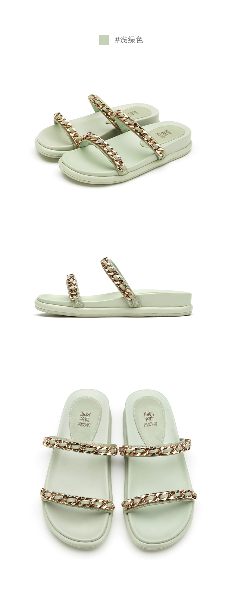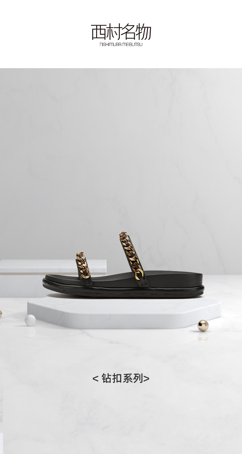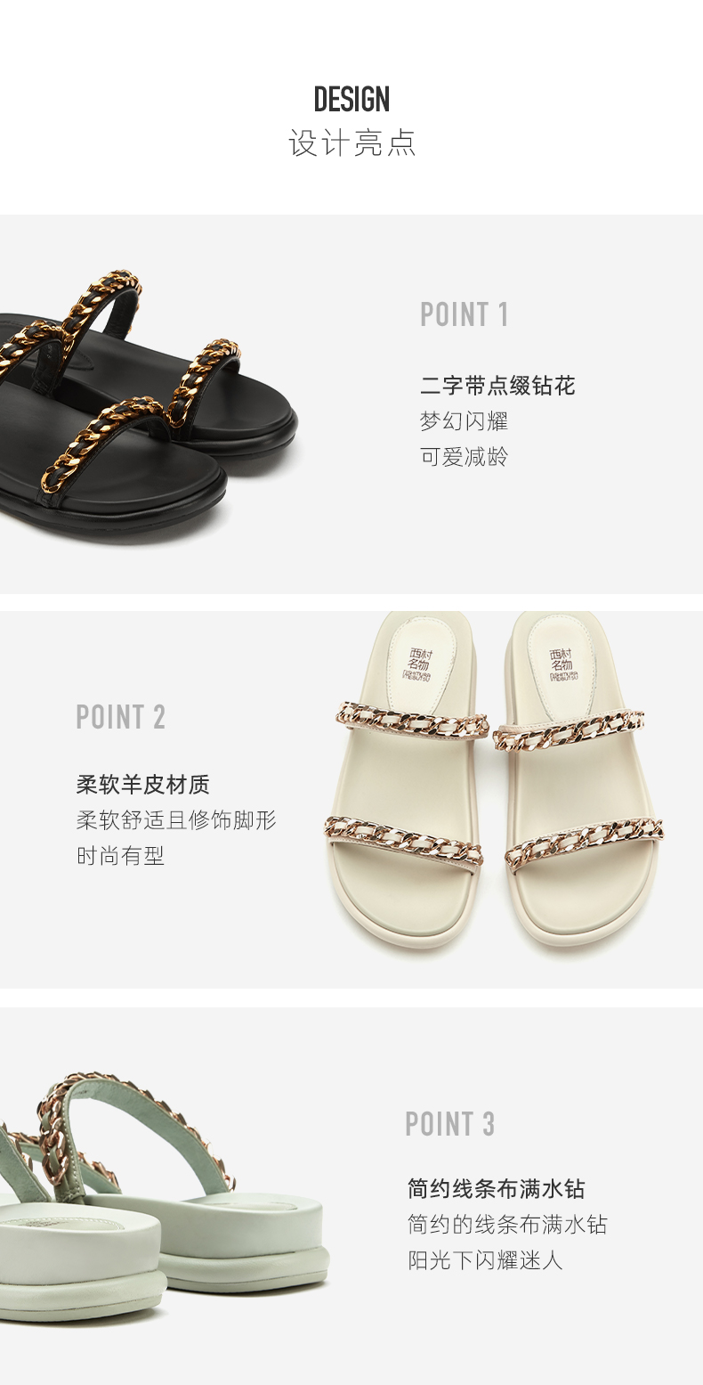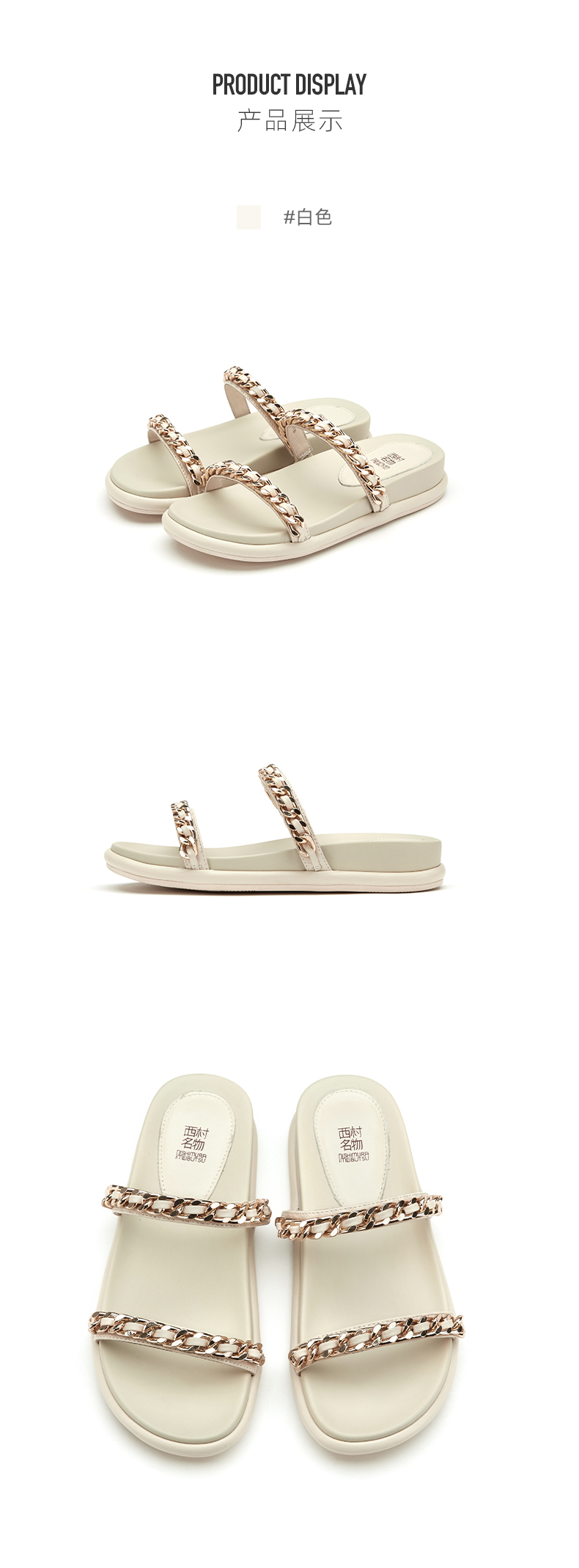 西村名物2021春季新款女士凉拖鞋凉鞋拖鞋水钻白色粗跟X21BJ23291