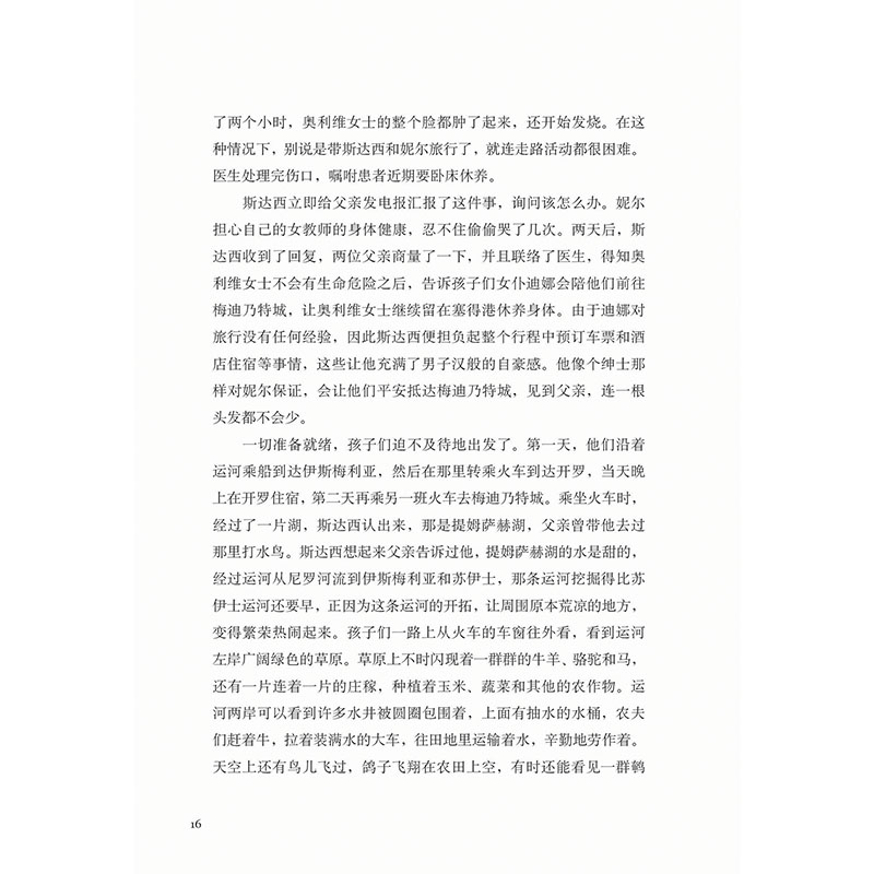 虽然斯达西的年纪刚刚14岁,但他觉得自己已经是个大人了, 面对只有8岁的妮尔,斯达西尽管很喜欢这个小伙伴,依旧禁不住带着傲气十足的腔调说 :“等你像我这么大的时候,你会知道很多事情,不仅是关于塞得港,还有苏伊士运河,甚至整个埃及的事情你都会知道,难道你没听人提到过马赫迪的名字吗?”