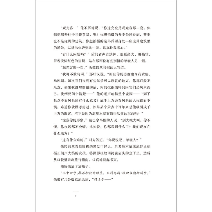 “哎,动一动!”他催促道,“微笑、弯腰,点支烟什么的,总之你得干点什么!如果你光站着,不就等于拍照片吗。”