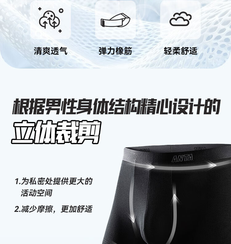 安踏运动内裤丨【1件装】竹纤维男士亲肤透气冰感抗菌平角裤192538972