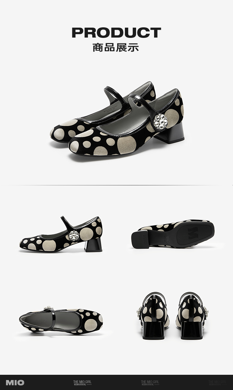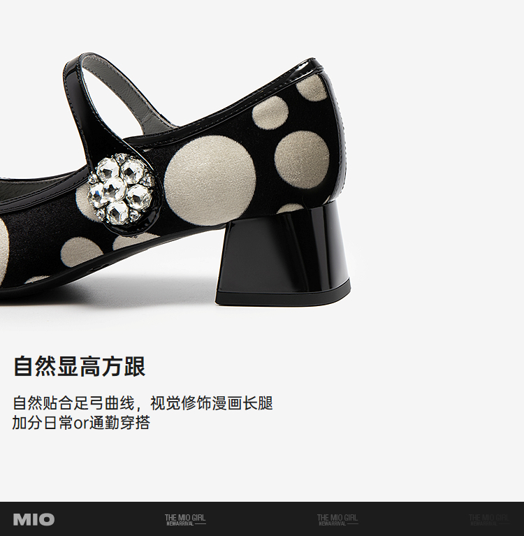 MIO米奥玛丽珍鞋复古摩登波点一字带圆头粗跟单鞋女M254450733
