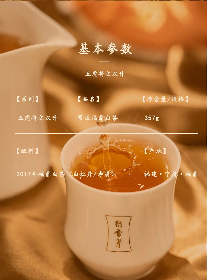 白茶 | 绿雪芽五虎将汉升2017白牡丹寿眉357G/饼