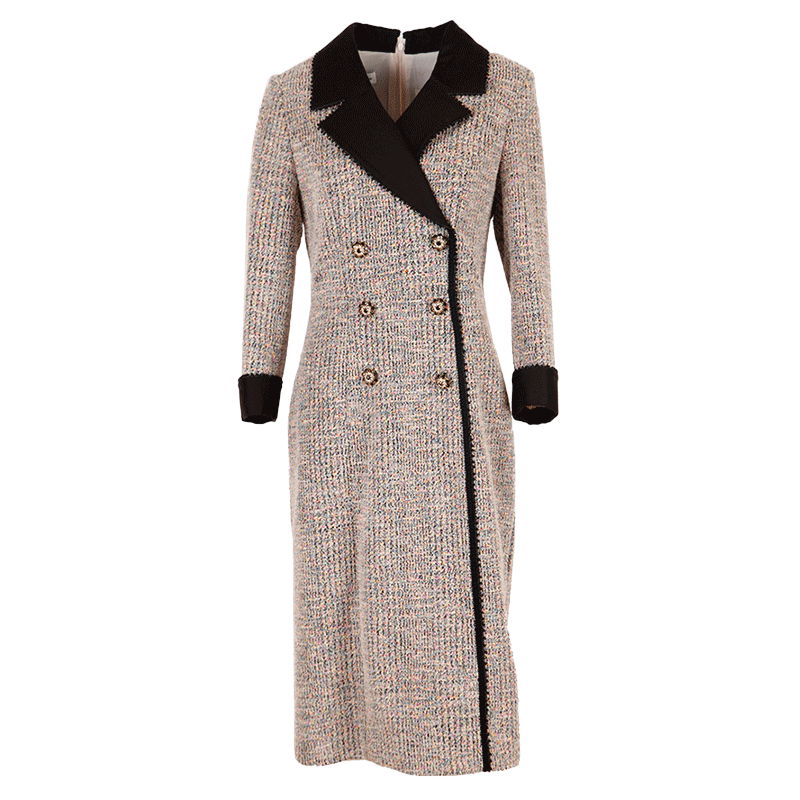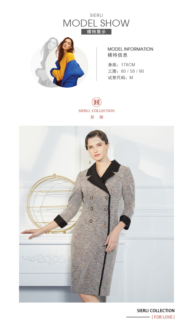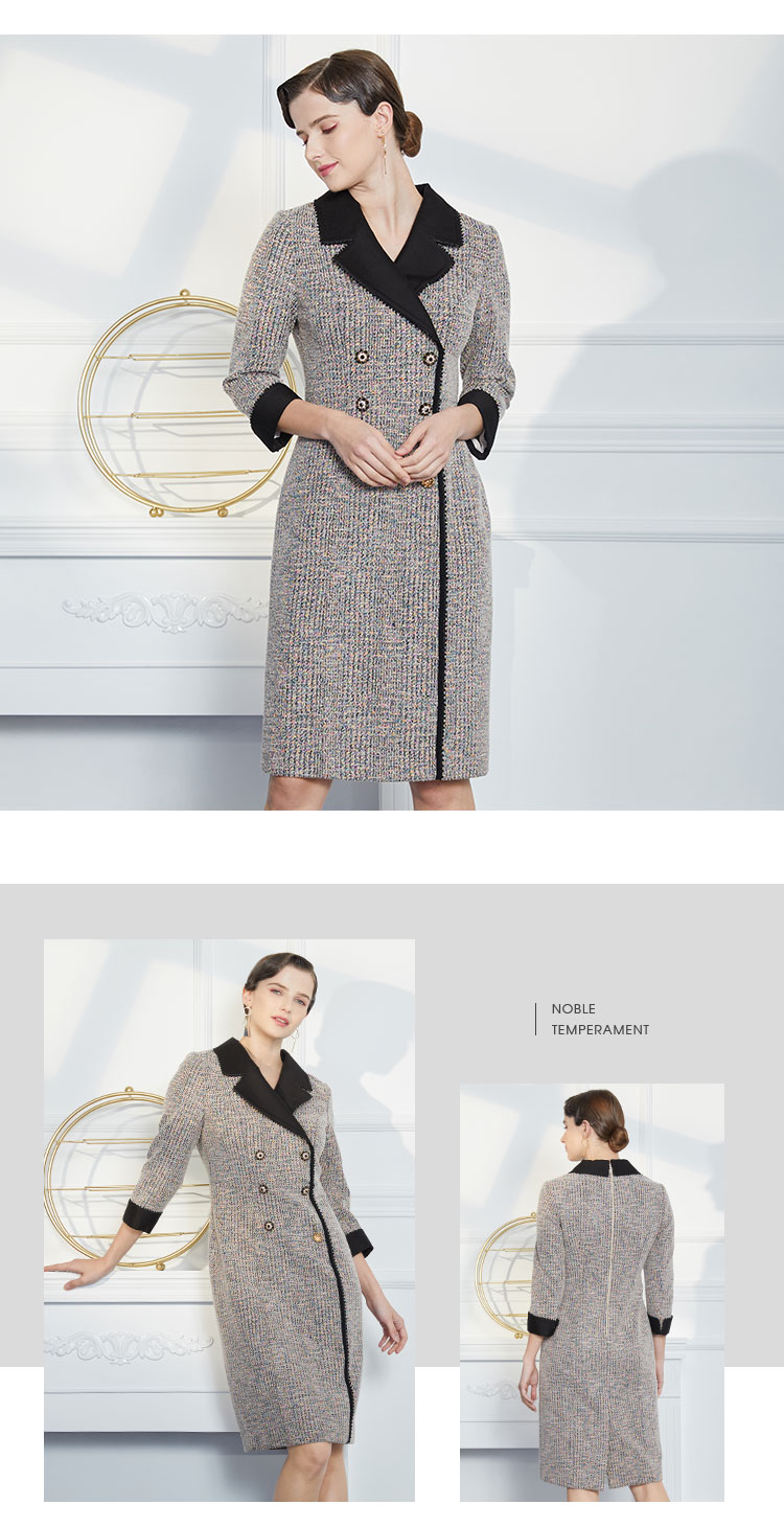 NC80U瑟俪商场同款复古洋气外套式合体百搭款翻领双排扣连衣裙