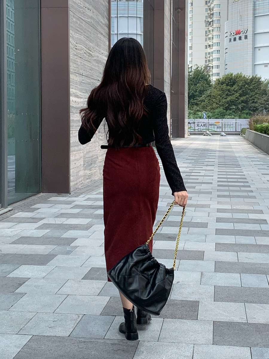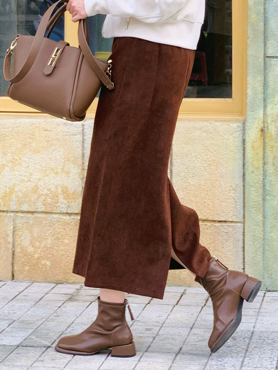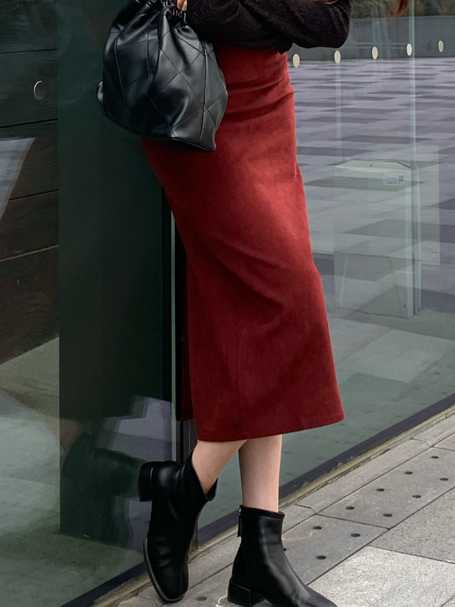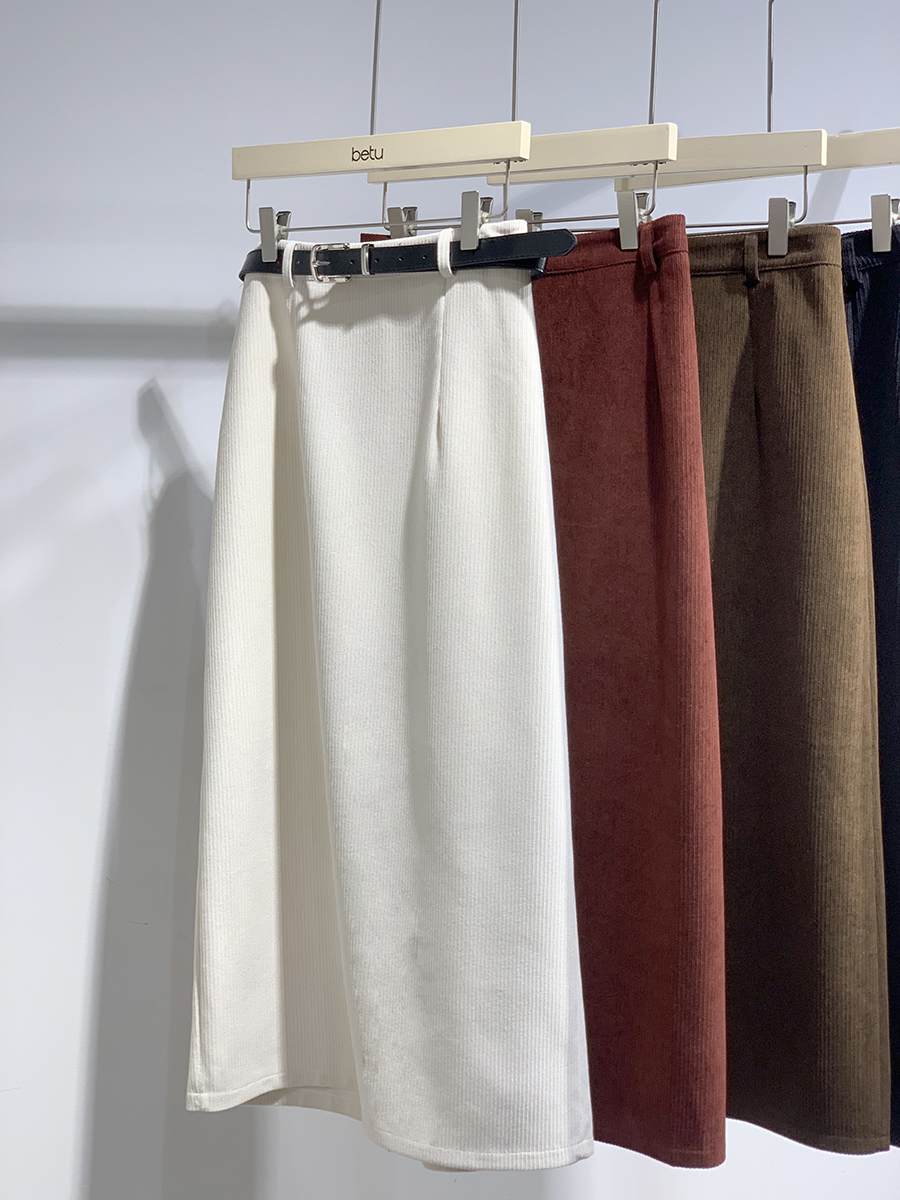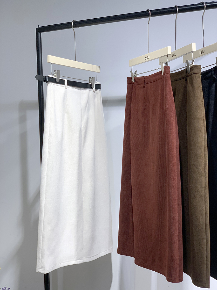 【百图lulu定制】【暖语半裙】【赠腰带】竖条纹 绒感 有肉感 显瘦 时髦A字 灯芯绒半裙