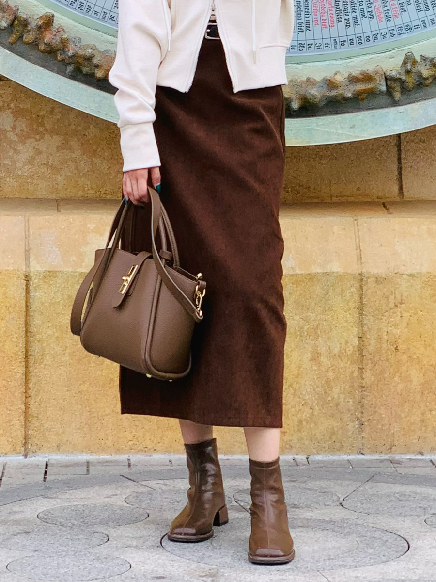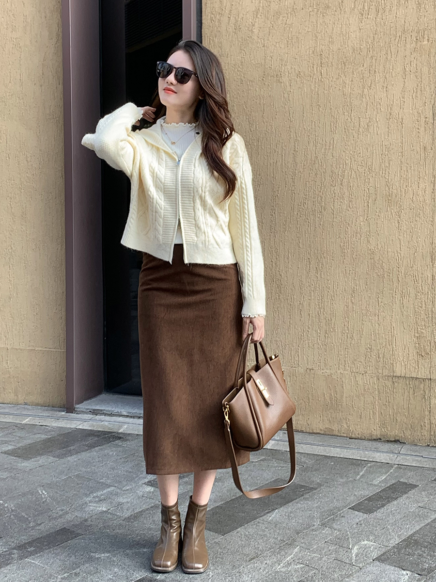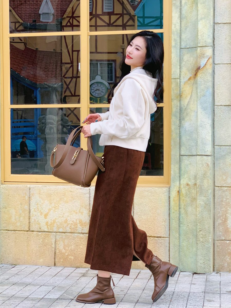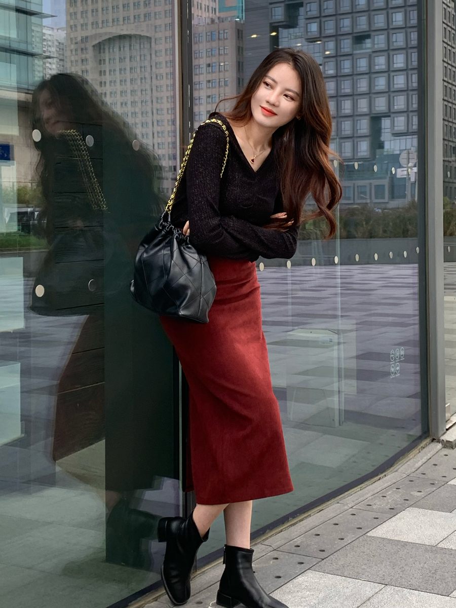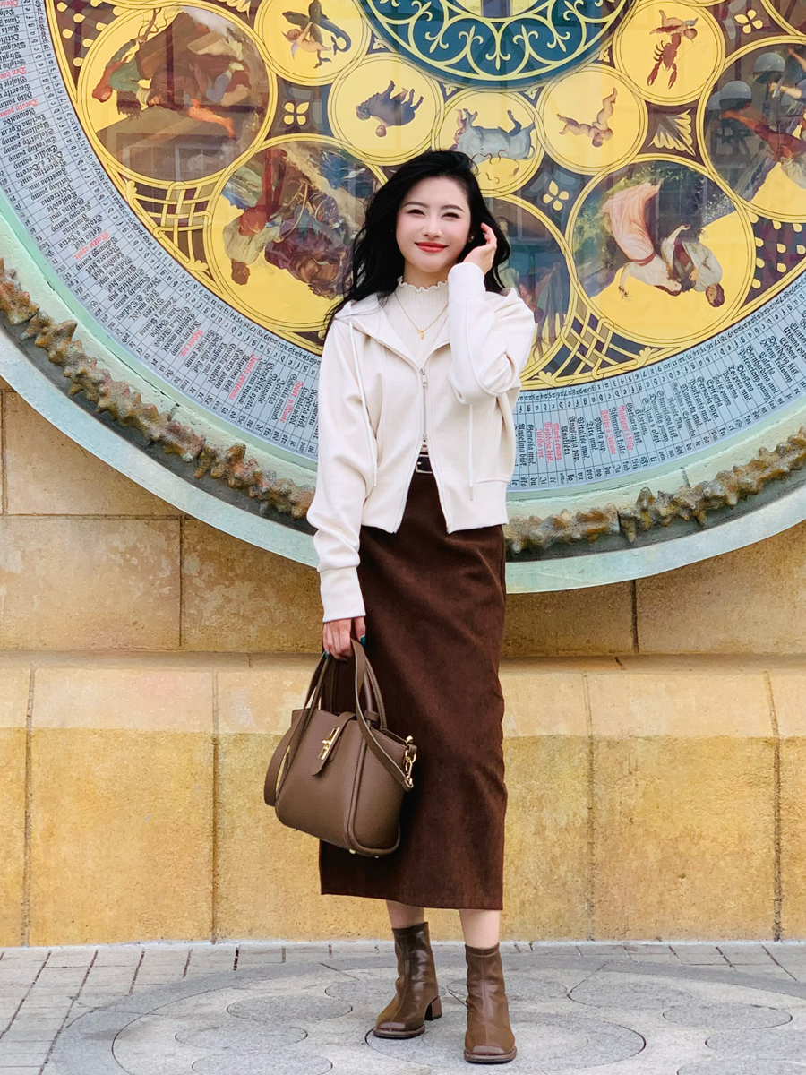 【百图lulu定制】【暖语半裙】【赠腰带】竖条纹 绒感 有肉感 显瘦 时髦A字 灯芯绒半裙