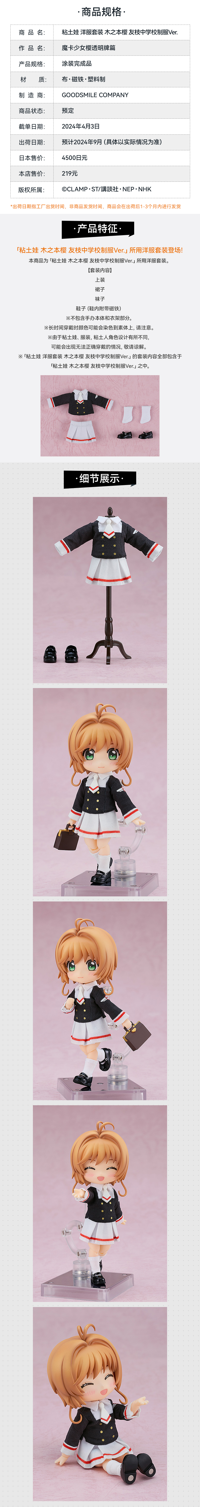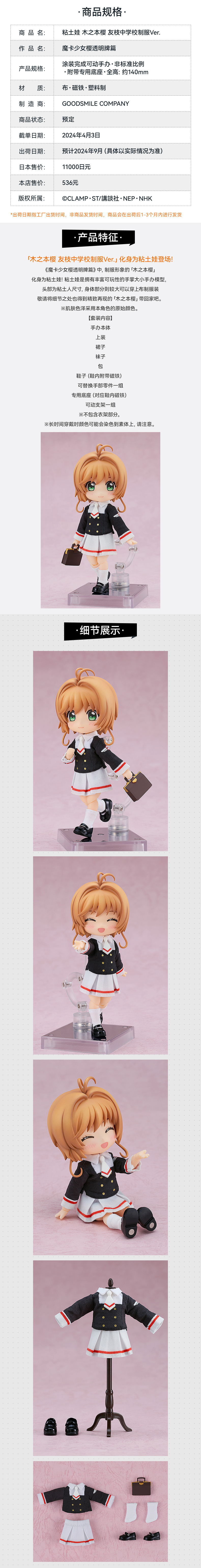【GSC现货】粘土娃 木之本樱/洋服套装 友枝中学校制服Ver.