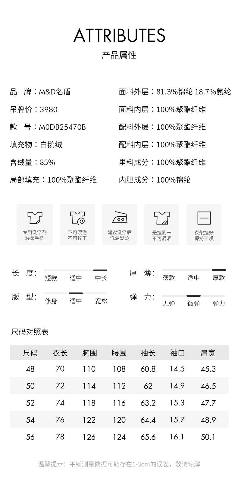 | 填充物: 白鹅绒 | 货号: M0DB25470B |