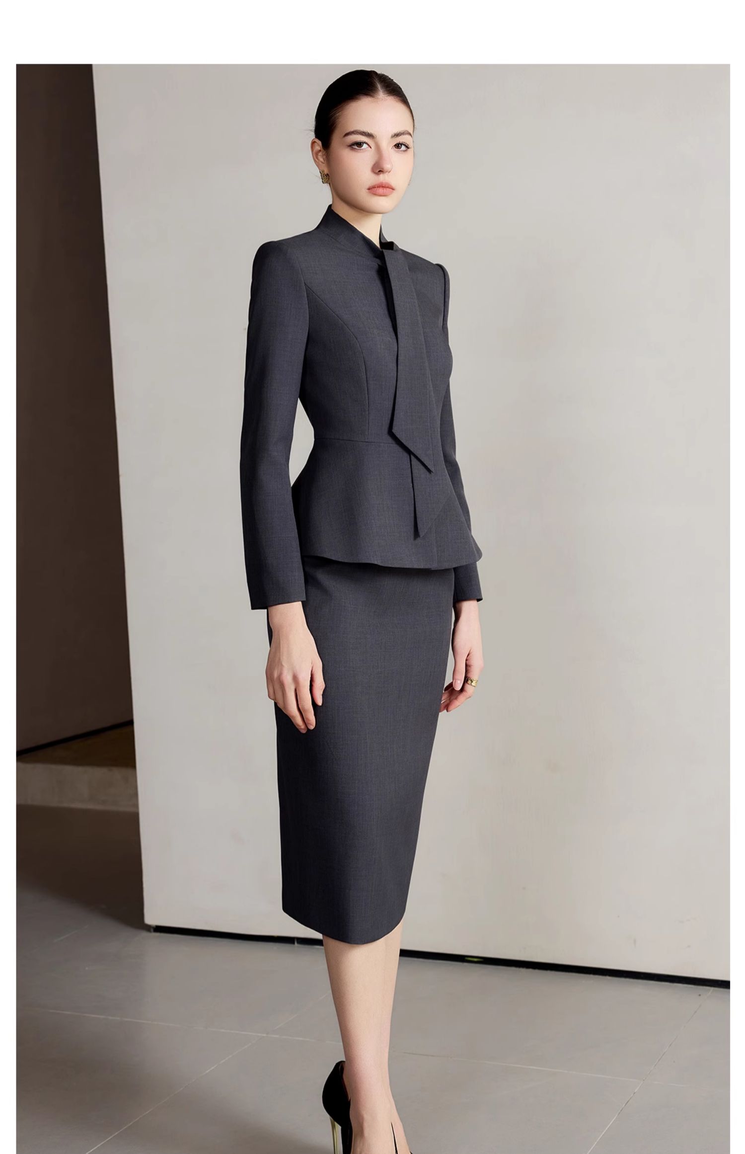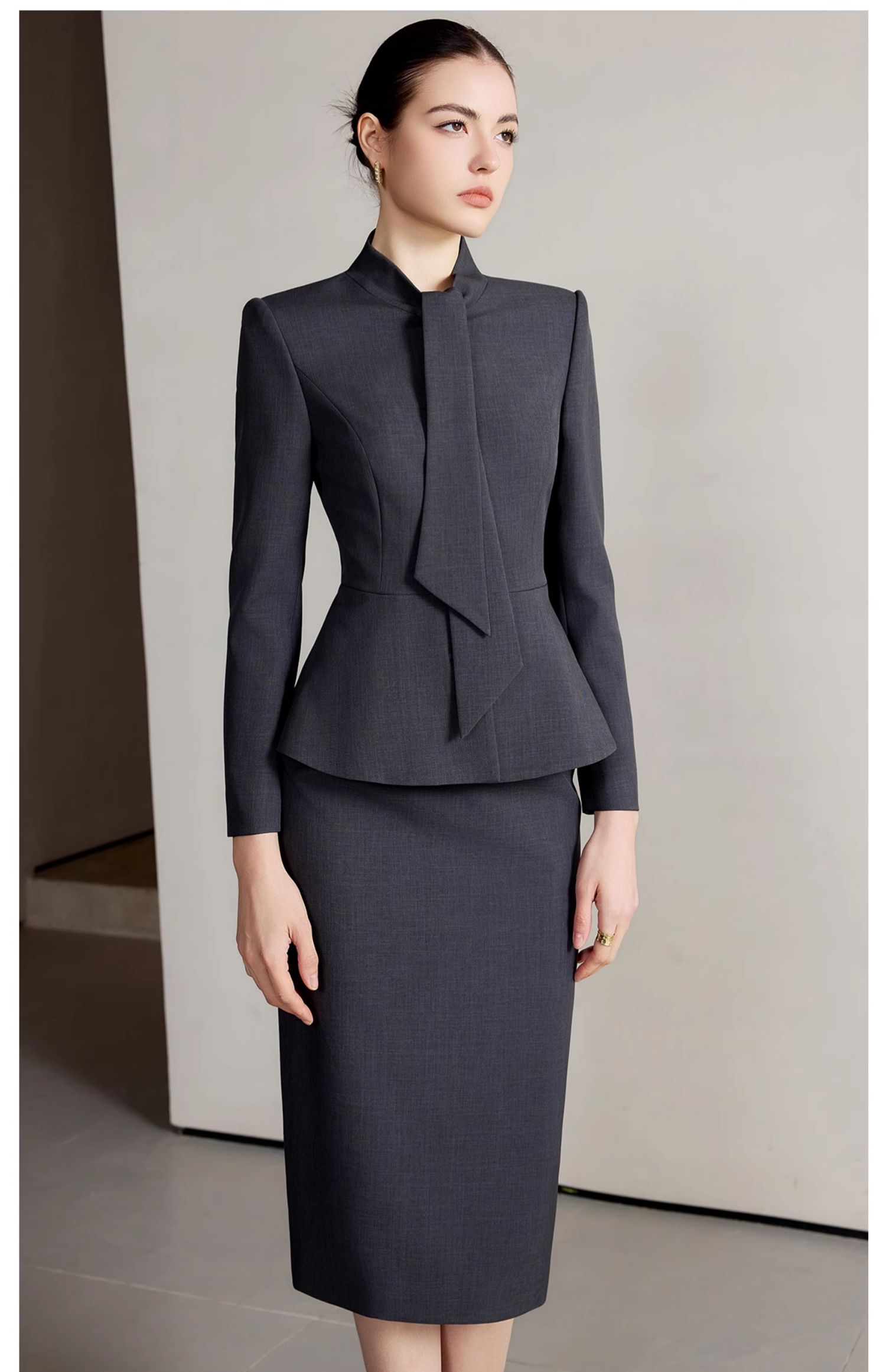 IWY/西装外套春装女新款轻奢高级感套装气质名媛灰色西服两件套CS2222