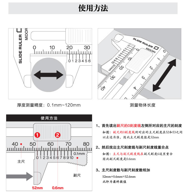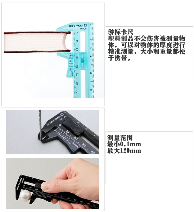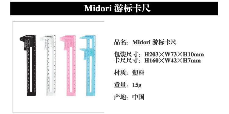 日本/美渡/midori/厚度/深度/高度测量/CL塑料游标卡尺/学生用卡尺