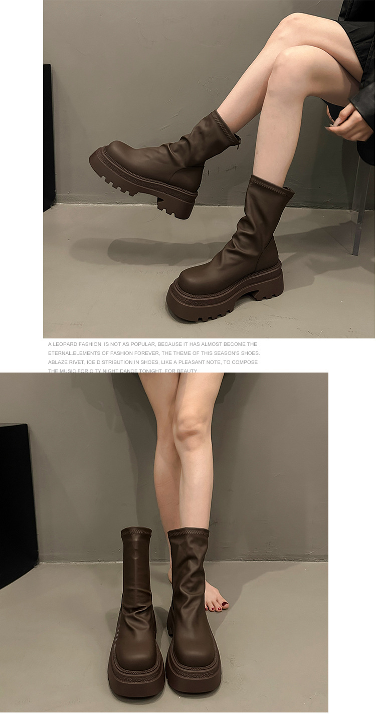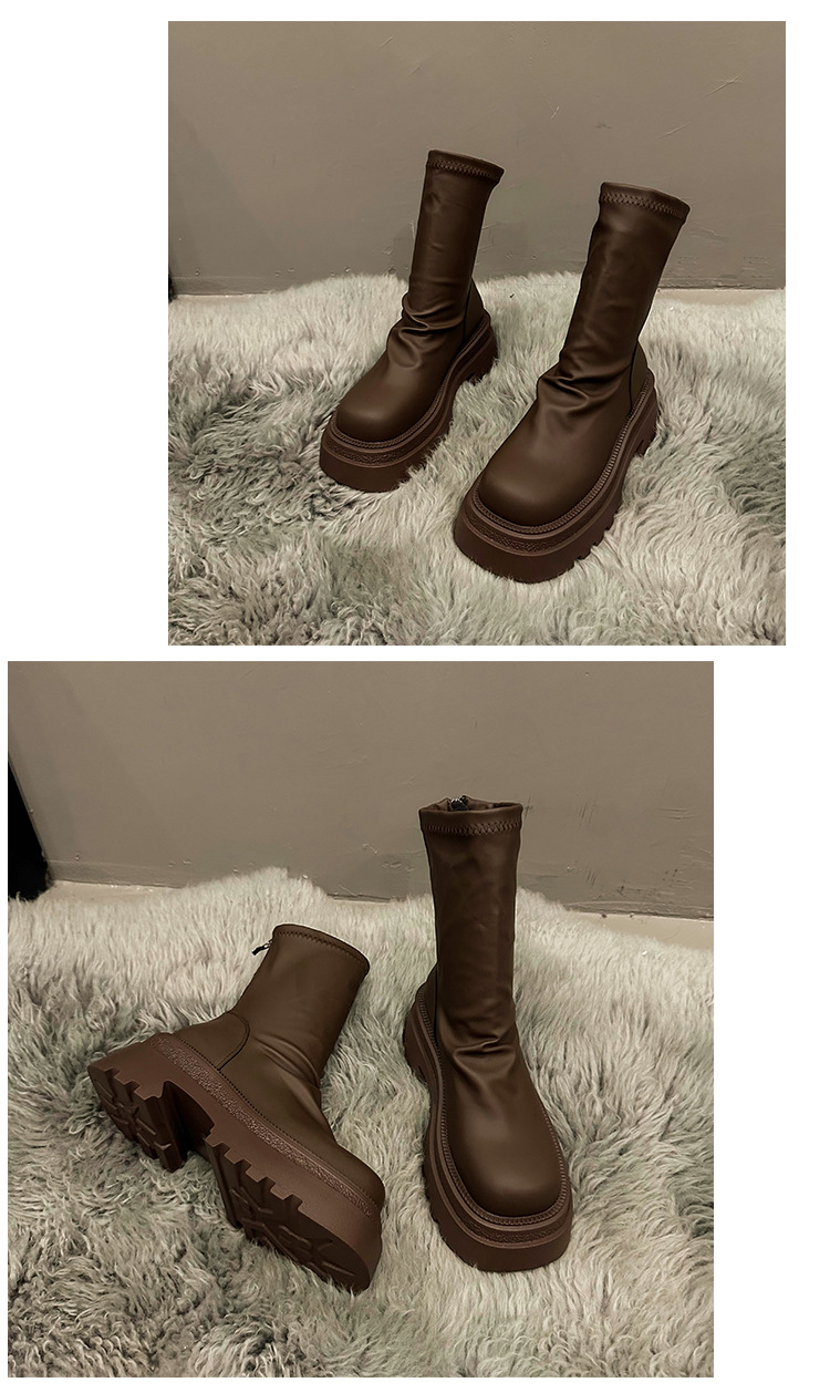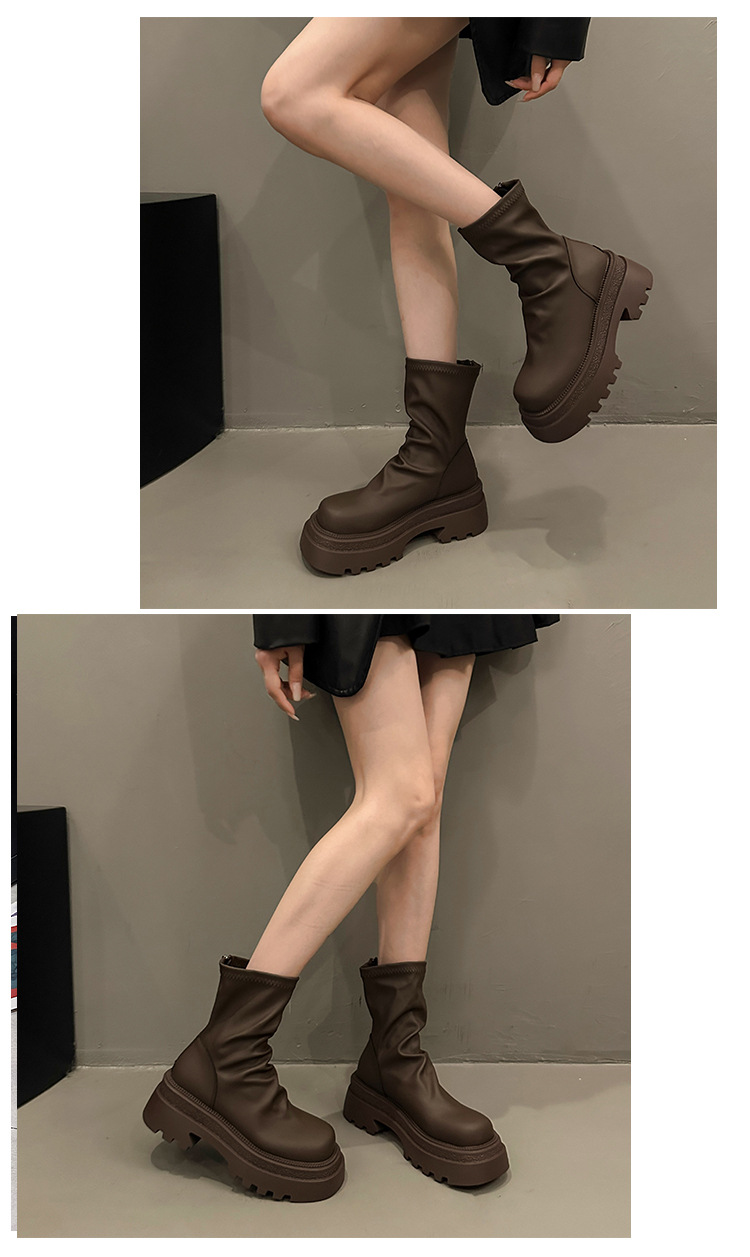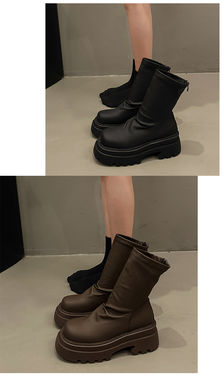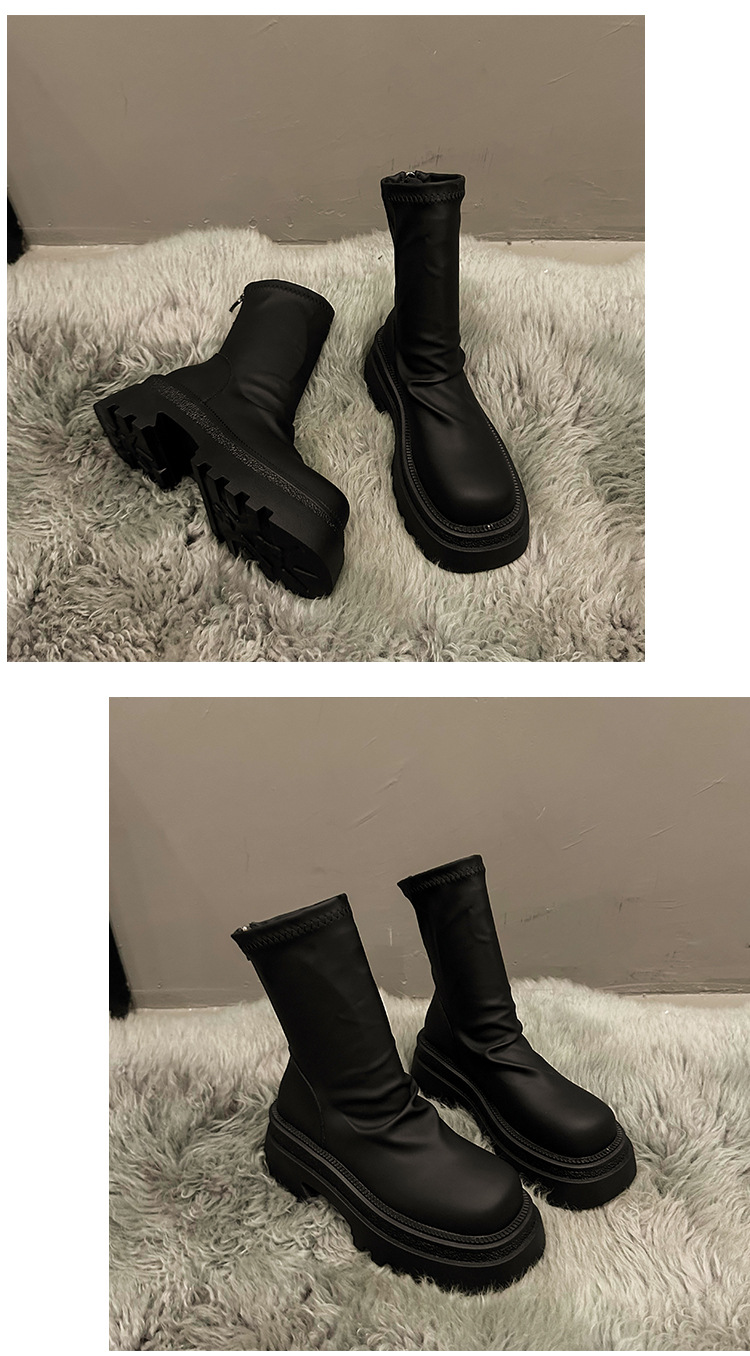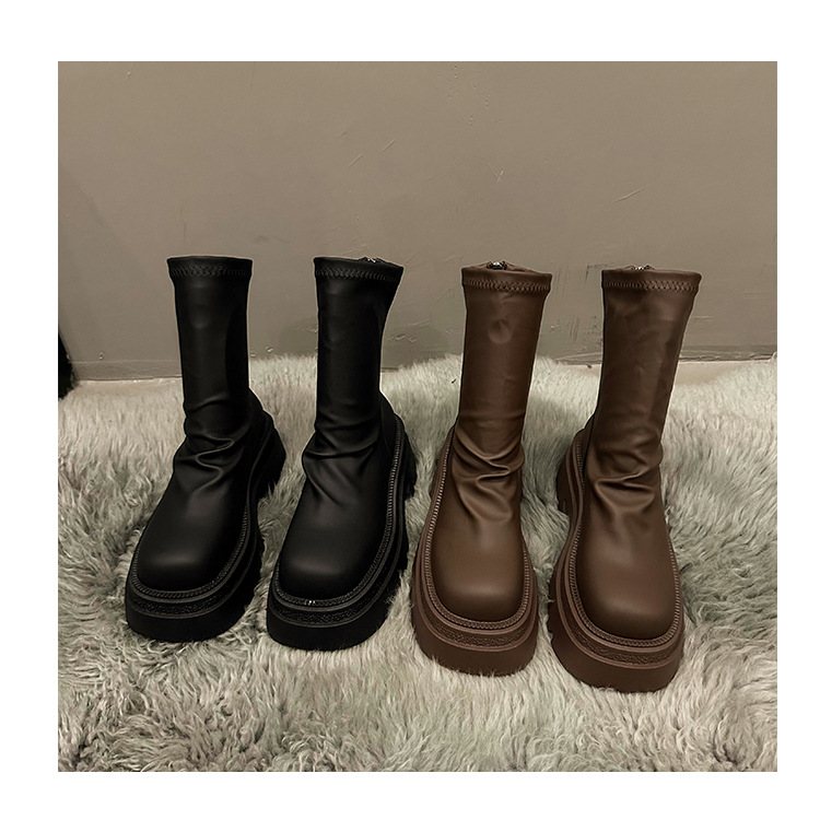 【粗跟短靴女】秋冬新款 厚底褶皱堆堆靴 时尚小个子显瘦弹力瘦瘦靴
