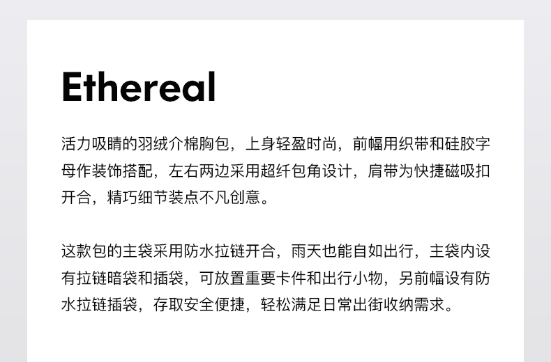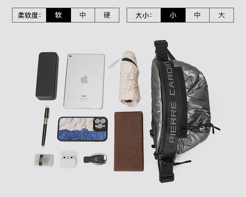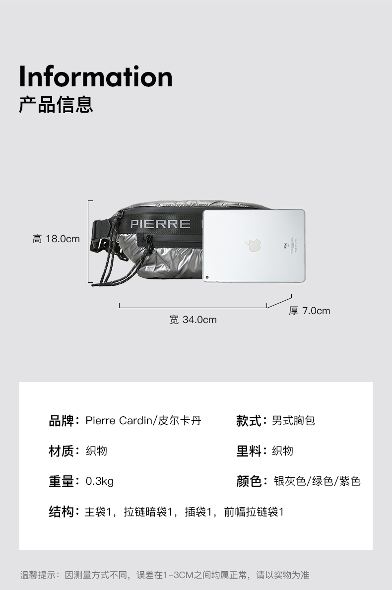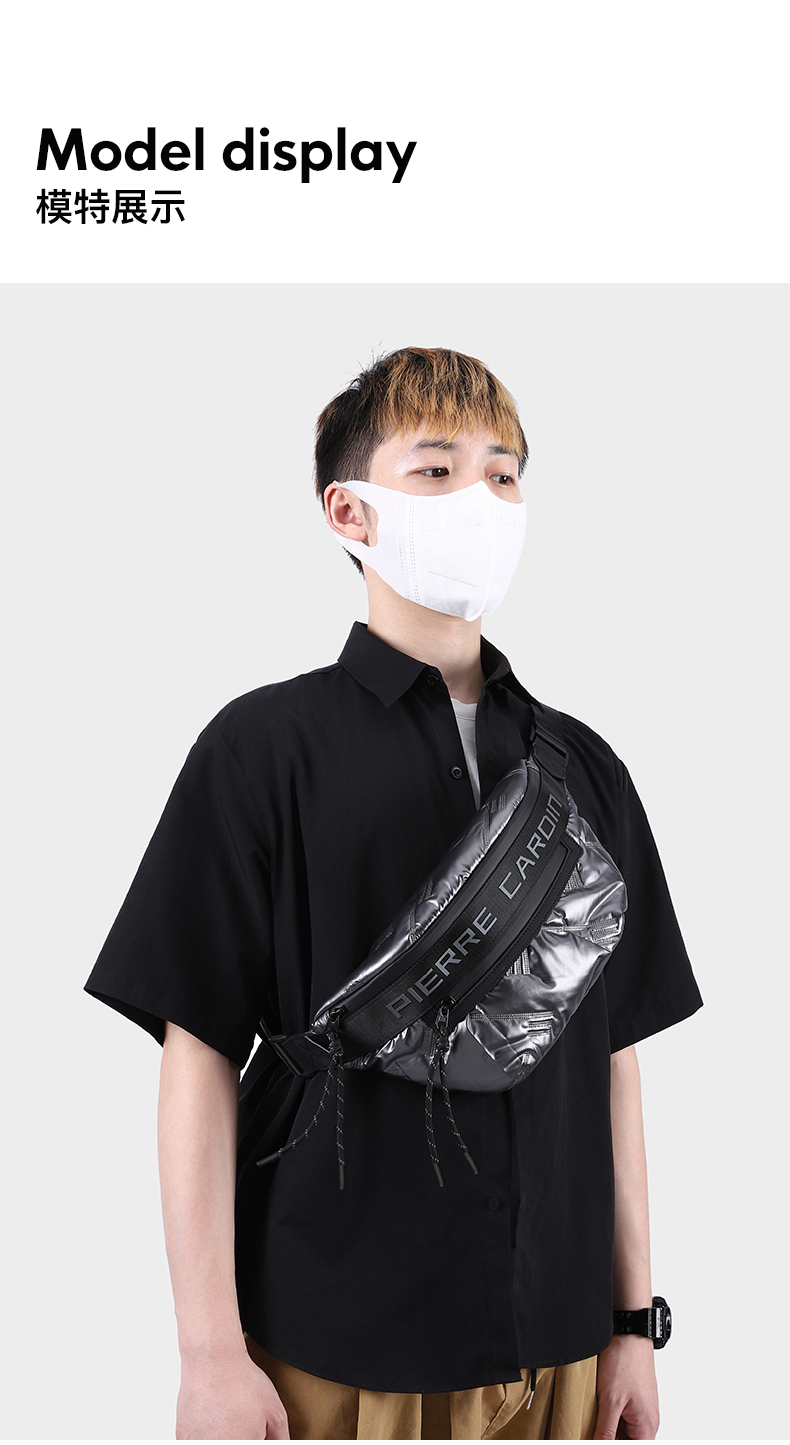 皮尔卡丹ethereal系列 活力羽绒胸包男士休闲斜挎包