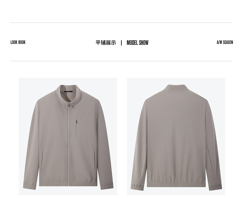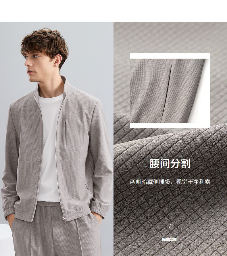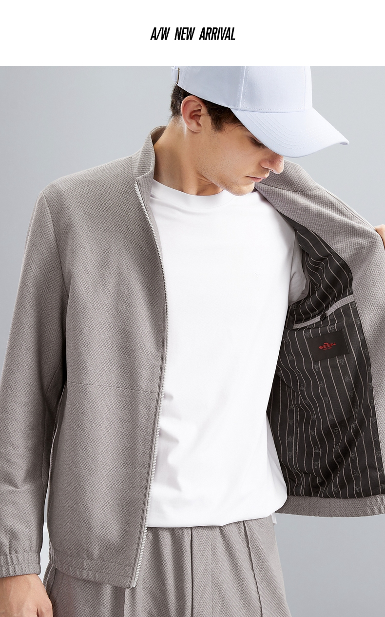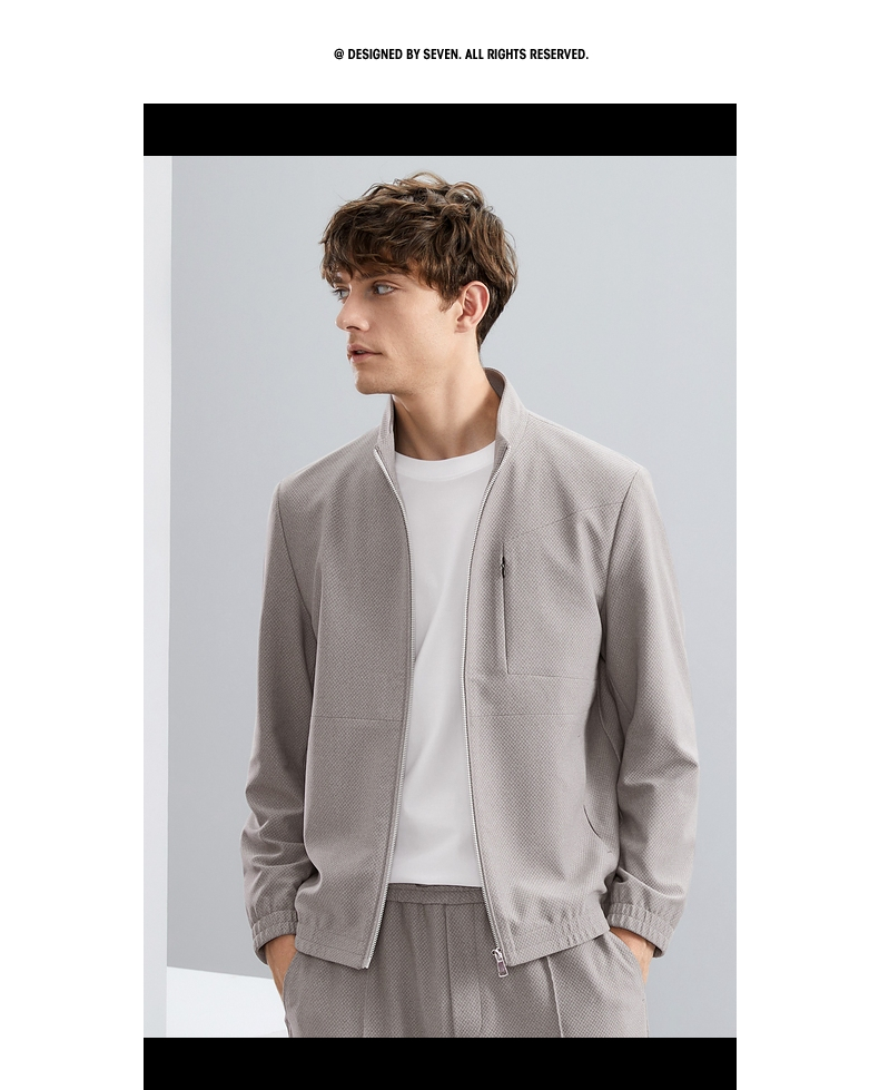 【特价】【华夫格】柒牌立领夹克男秋季新款时尚青年休闲灰色男士外套 125K70540