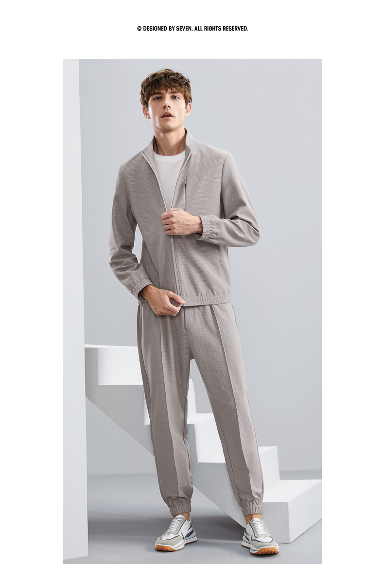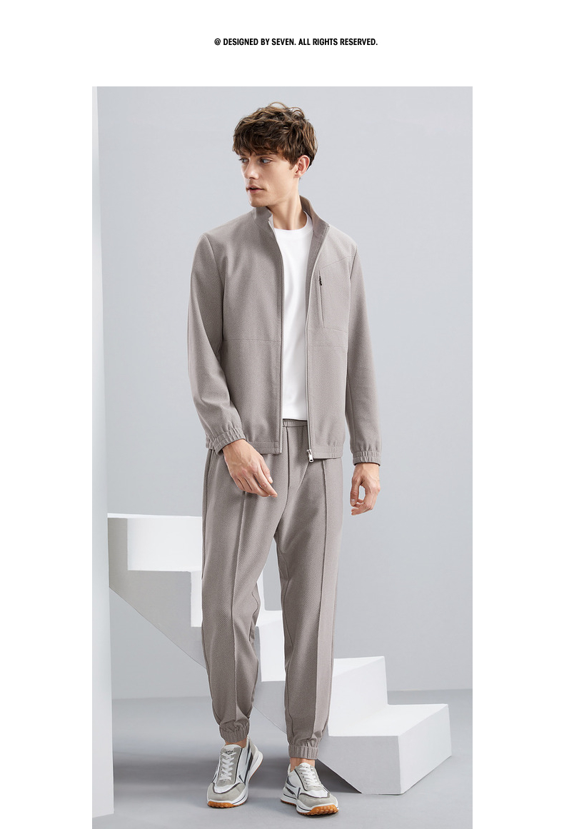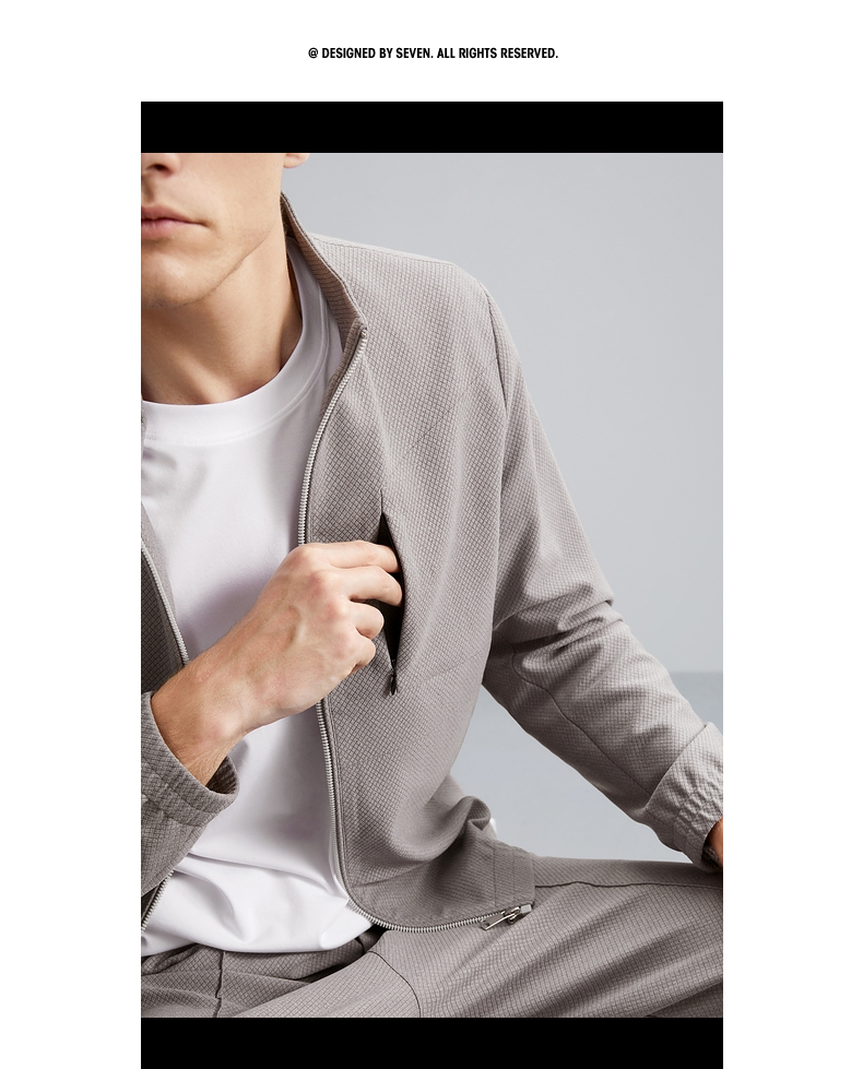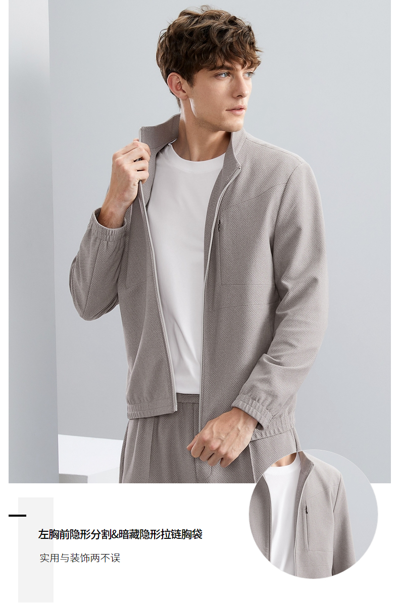 【特价】【华夫格】柒牌立领夹克男秋季新款时尚青年休闲灰色男士外套 125K70540
