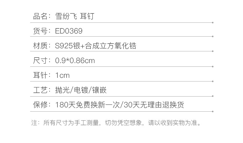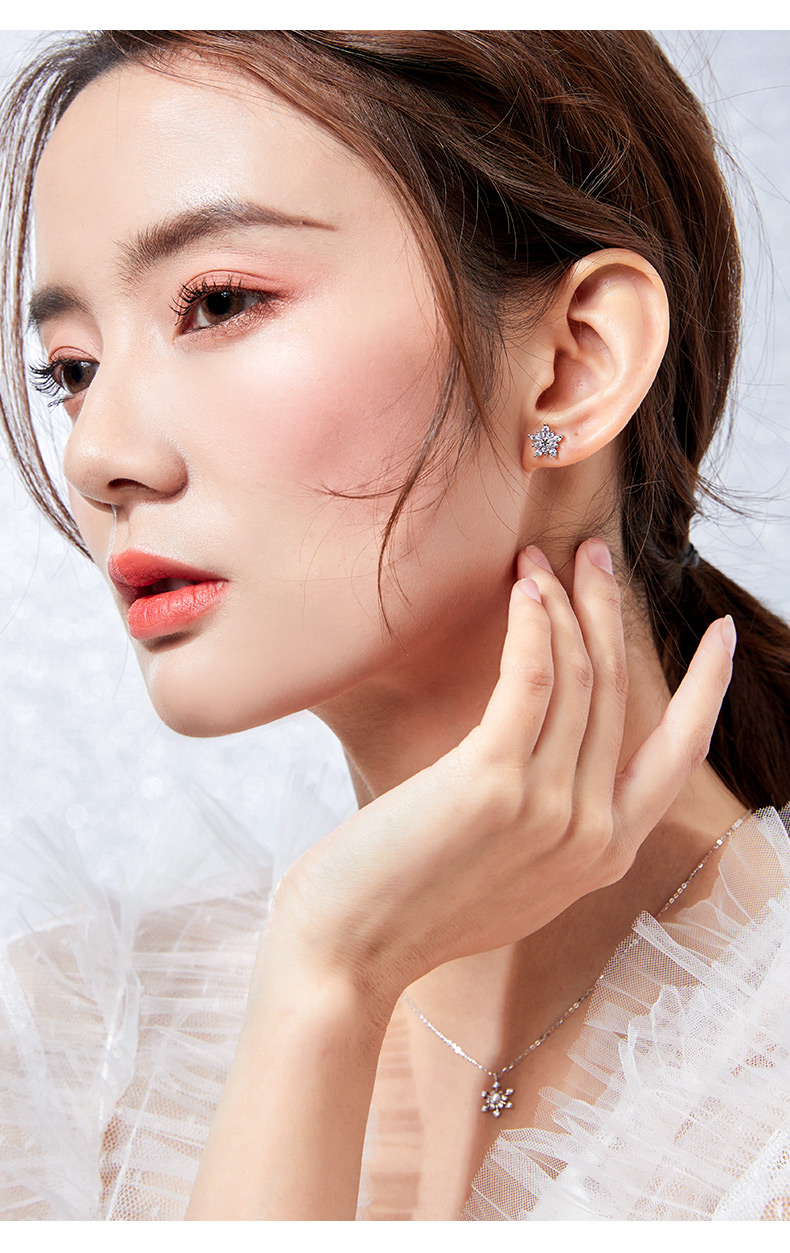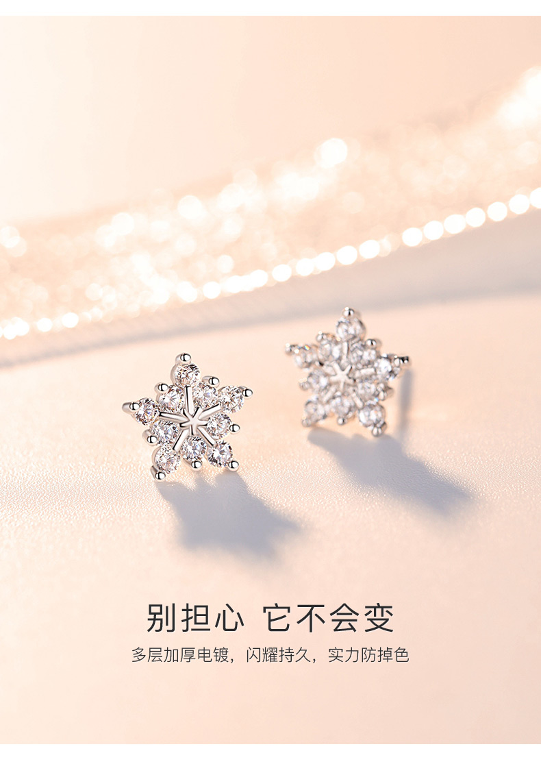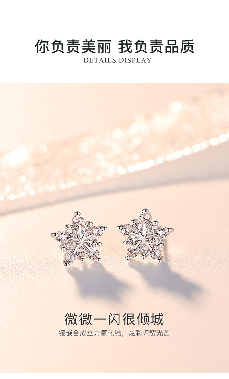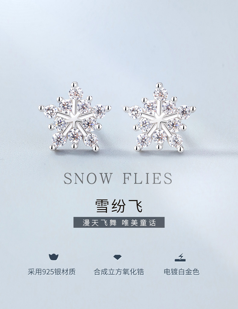银千惠/s925纯银雪花耳钉女耳环新款潮韩国简约个性冷淡风耳饰