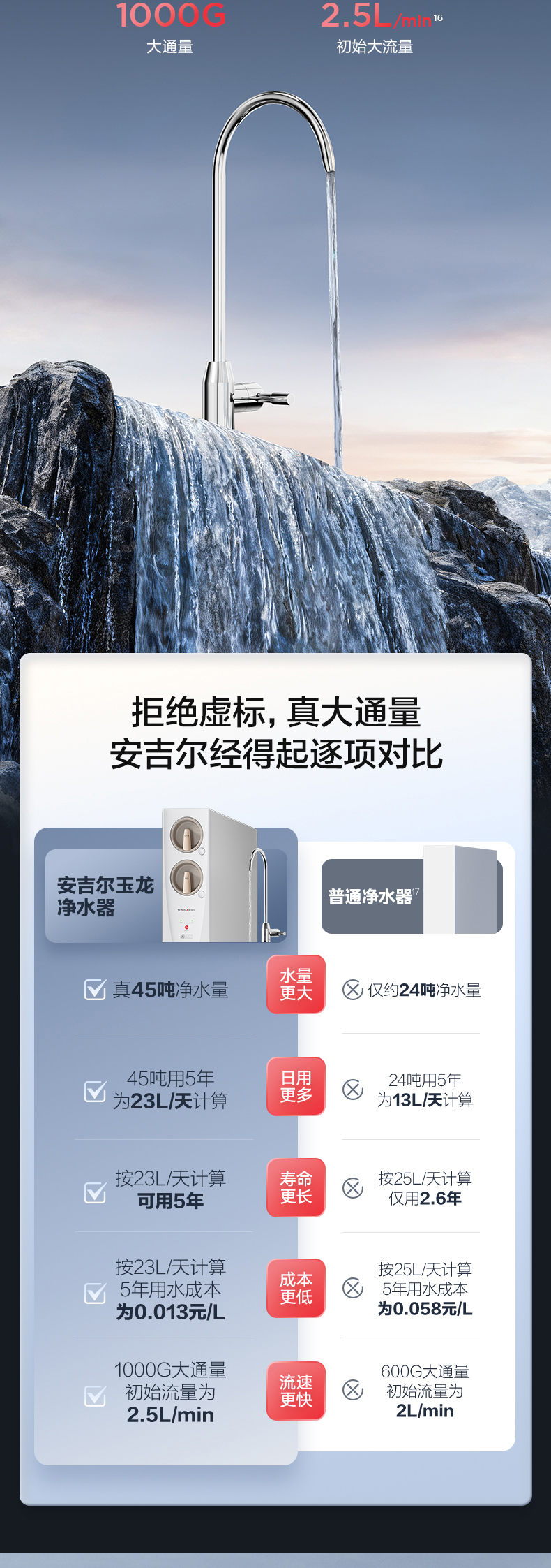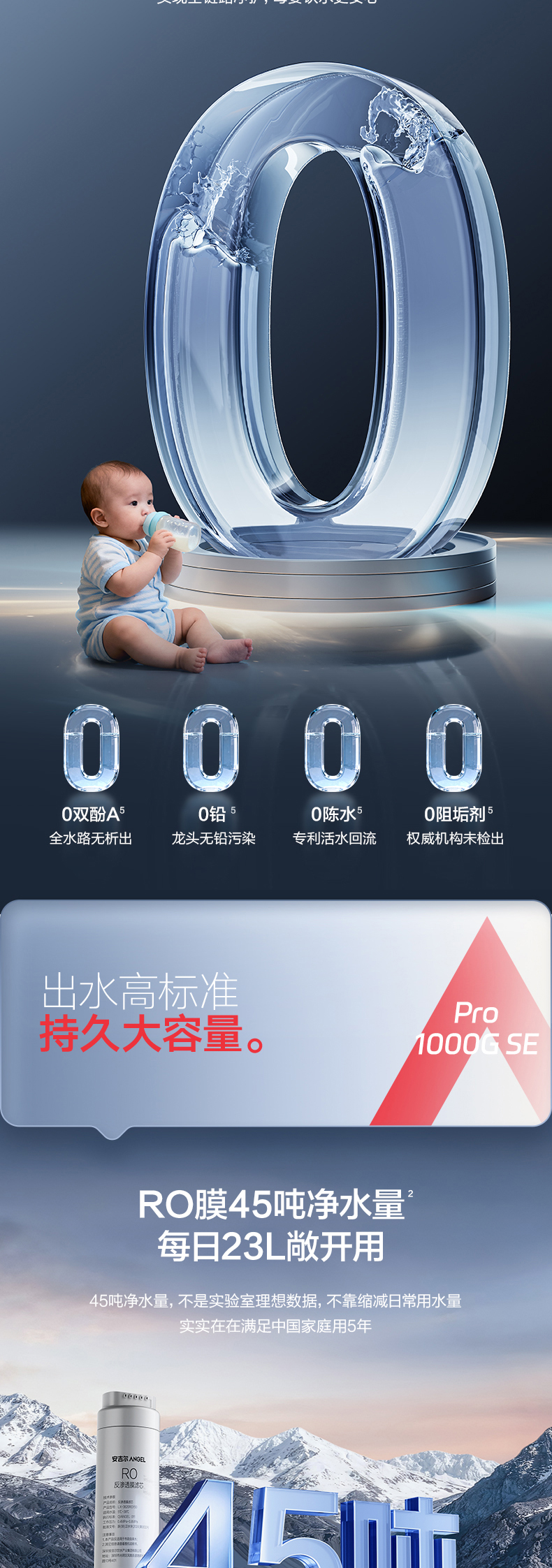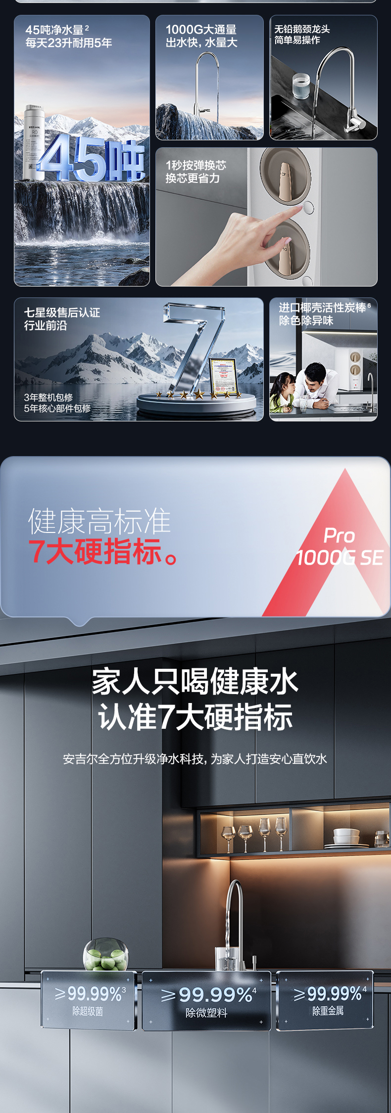 安吉尔家用净水器玉龙Pro1000GSE反渗透厨下直饮机