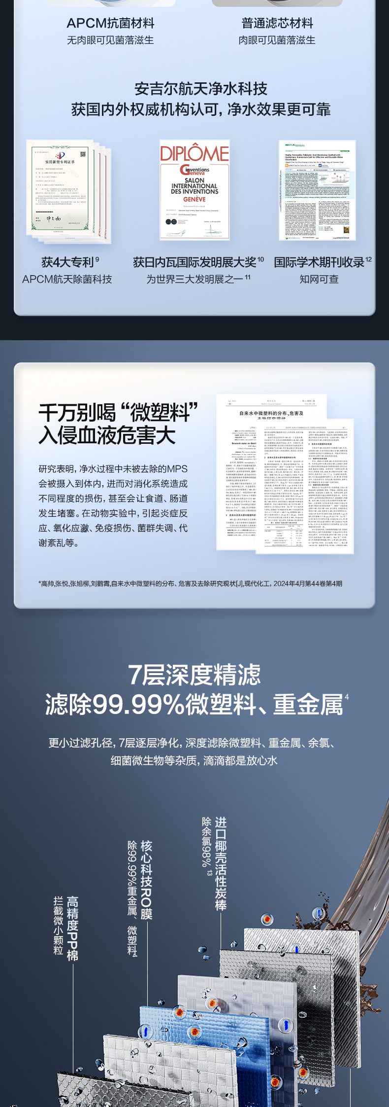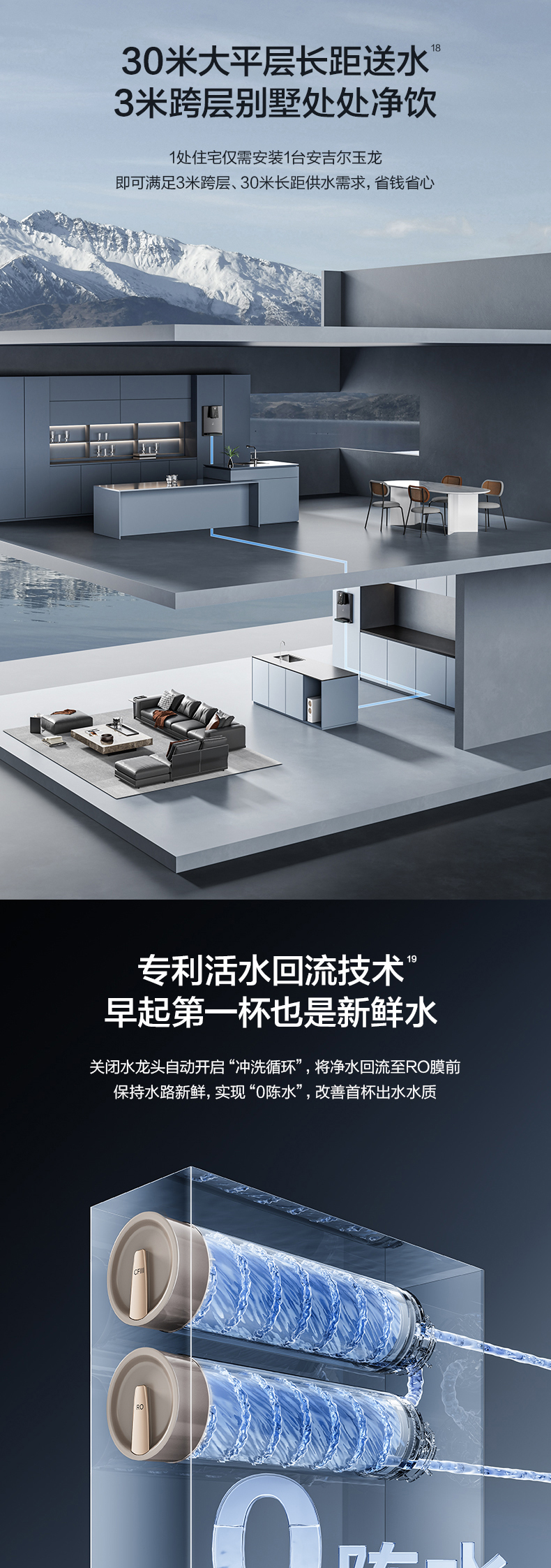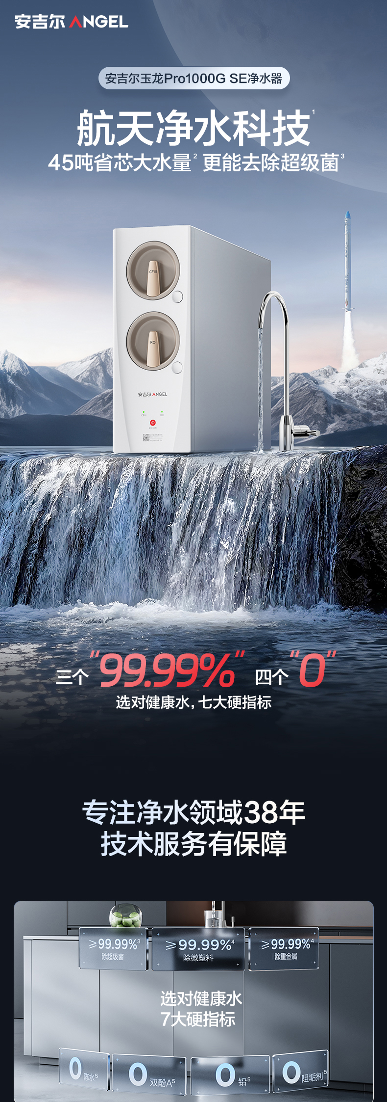 安吉尔家用净水器玉龙Pro1000GSE反渗透厨下直饮机