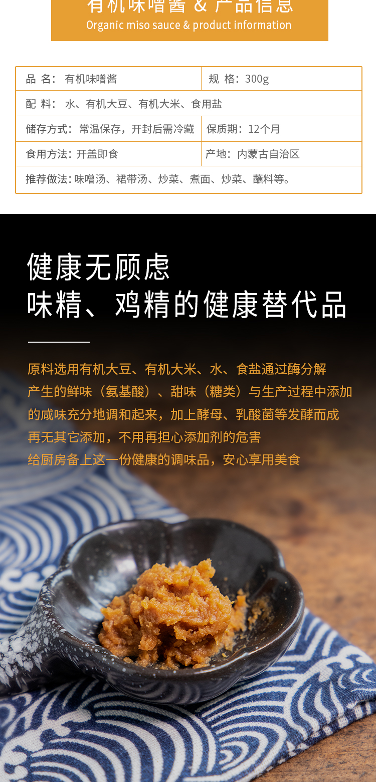 【有机赤味噌】 日式地道风味 精湛工艺 有机原料发酵 一招致鲜 厨房多功能调味酱料