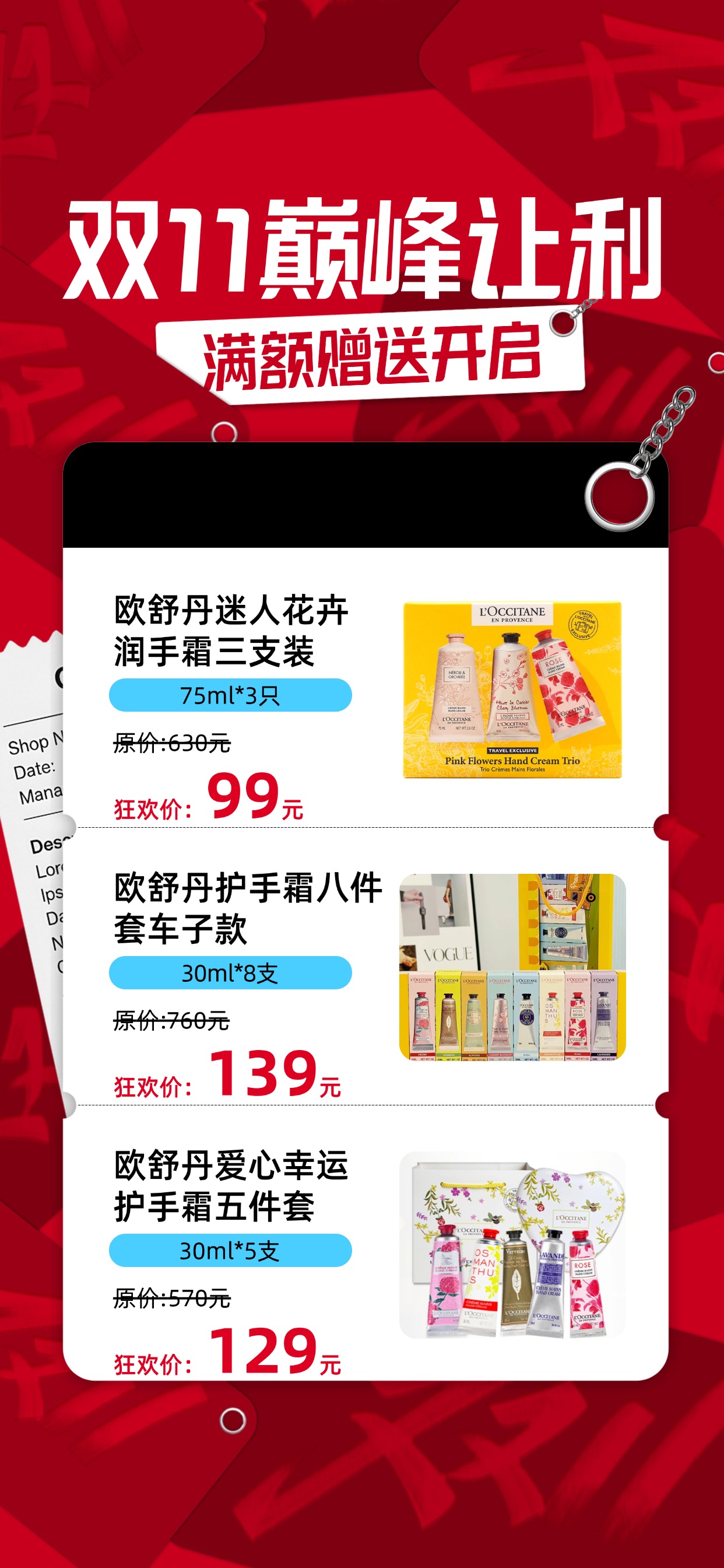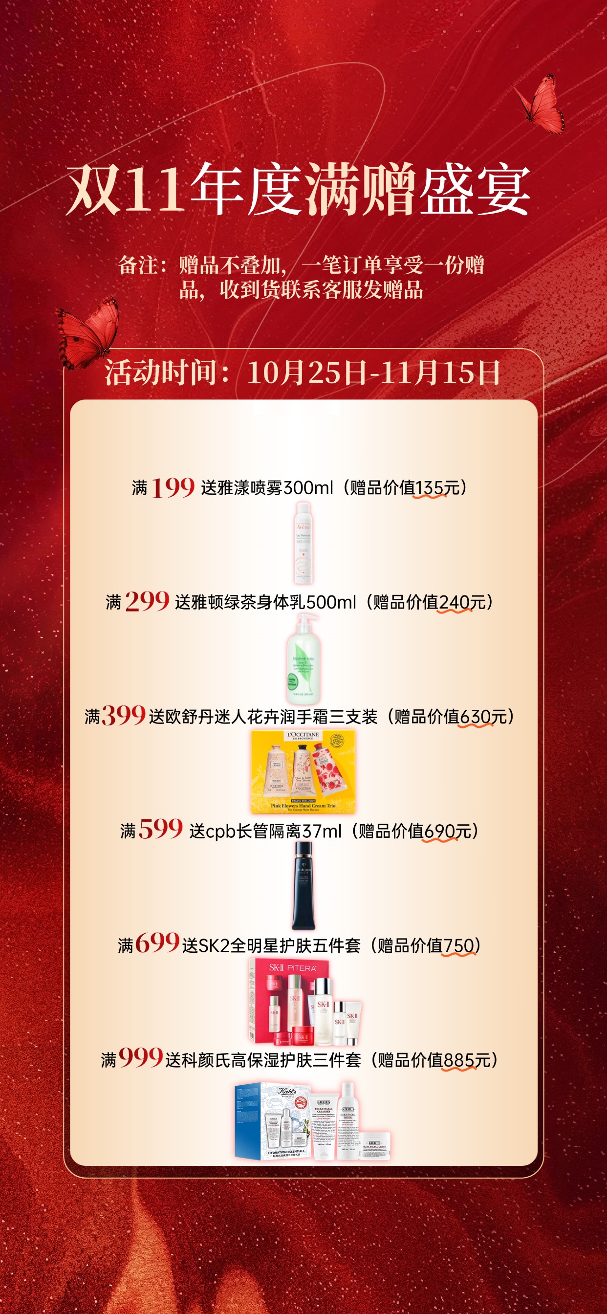 双11品牌活动丨送赠品 海蓝之谜迪奥娇韵诗娇兰