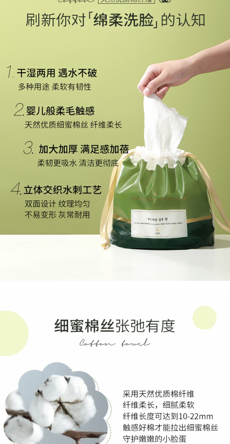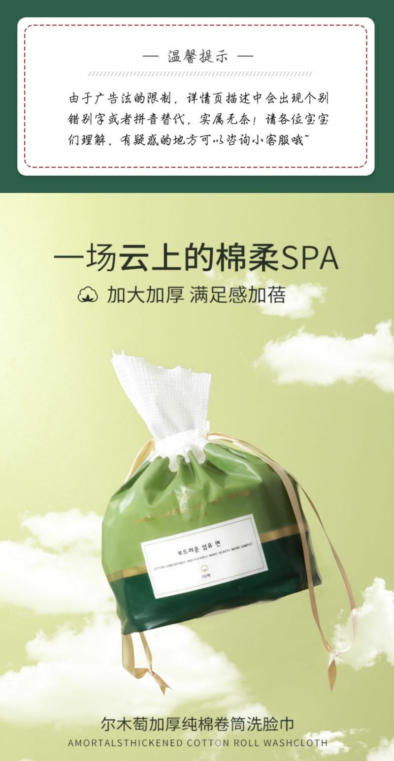 【YZ】尔木萄洗脸巾女一次性加厚纯棉擦脸洁面巾卷筒抽取式70片