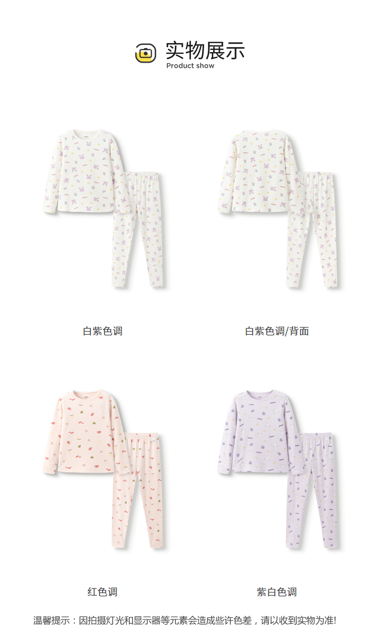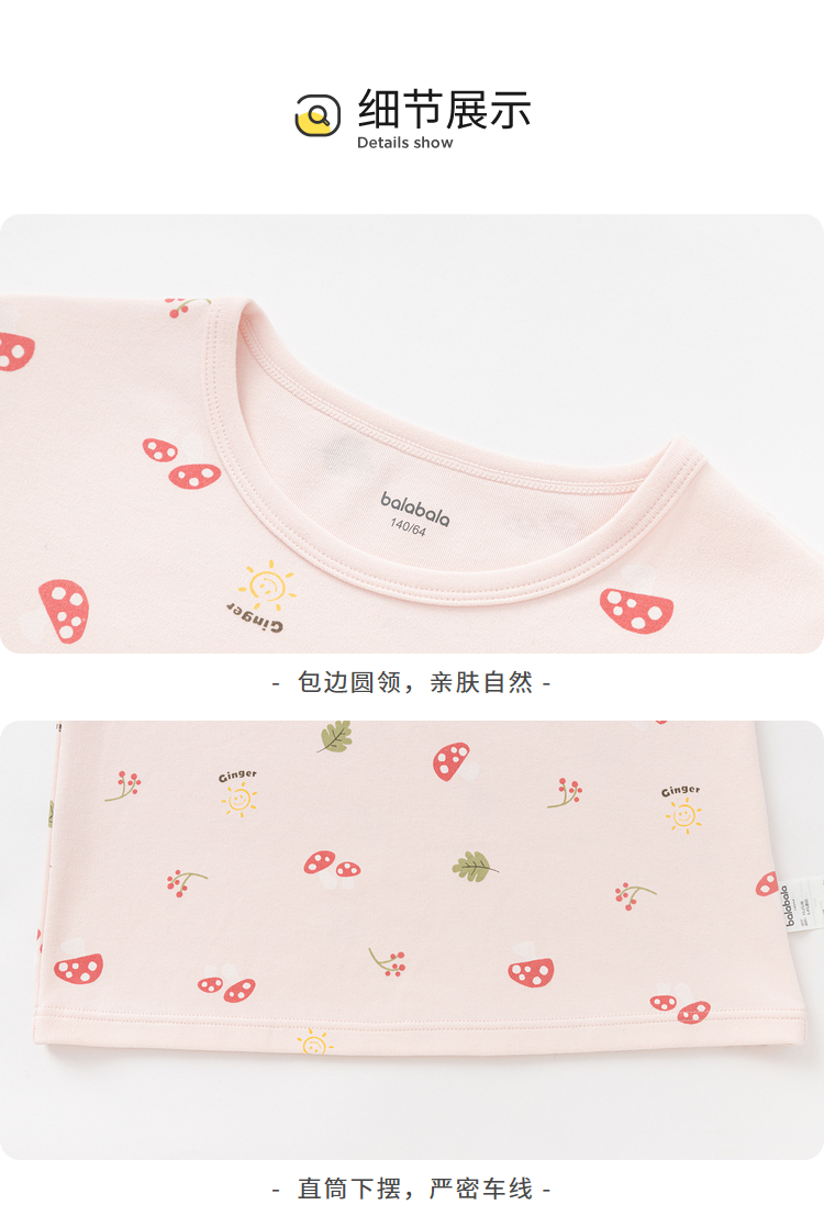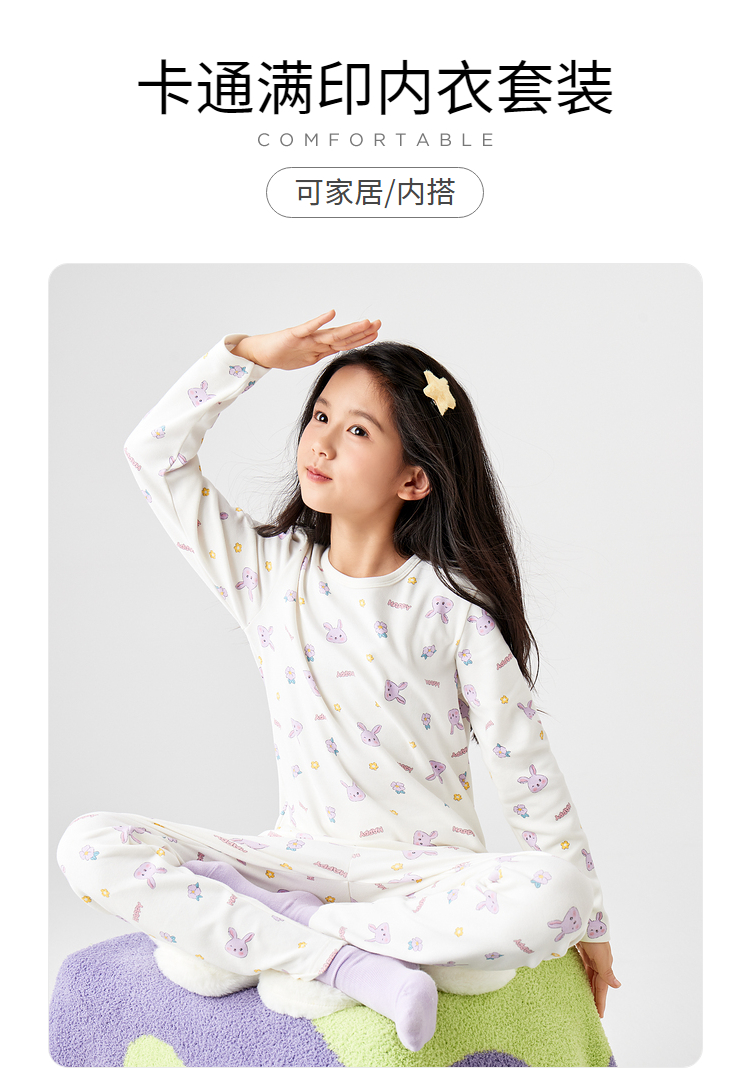 巴拉巴拉儿童秋衣秋裤套装棉女童保暖内衣秋冬加厚中小童打底睡衣
