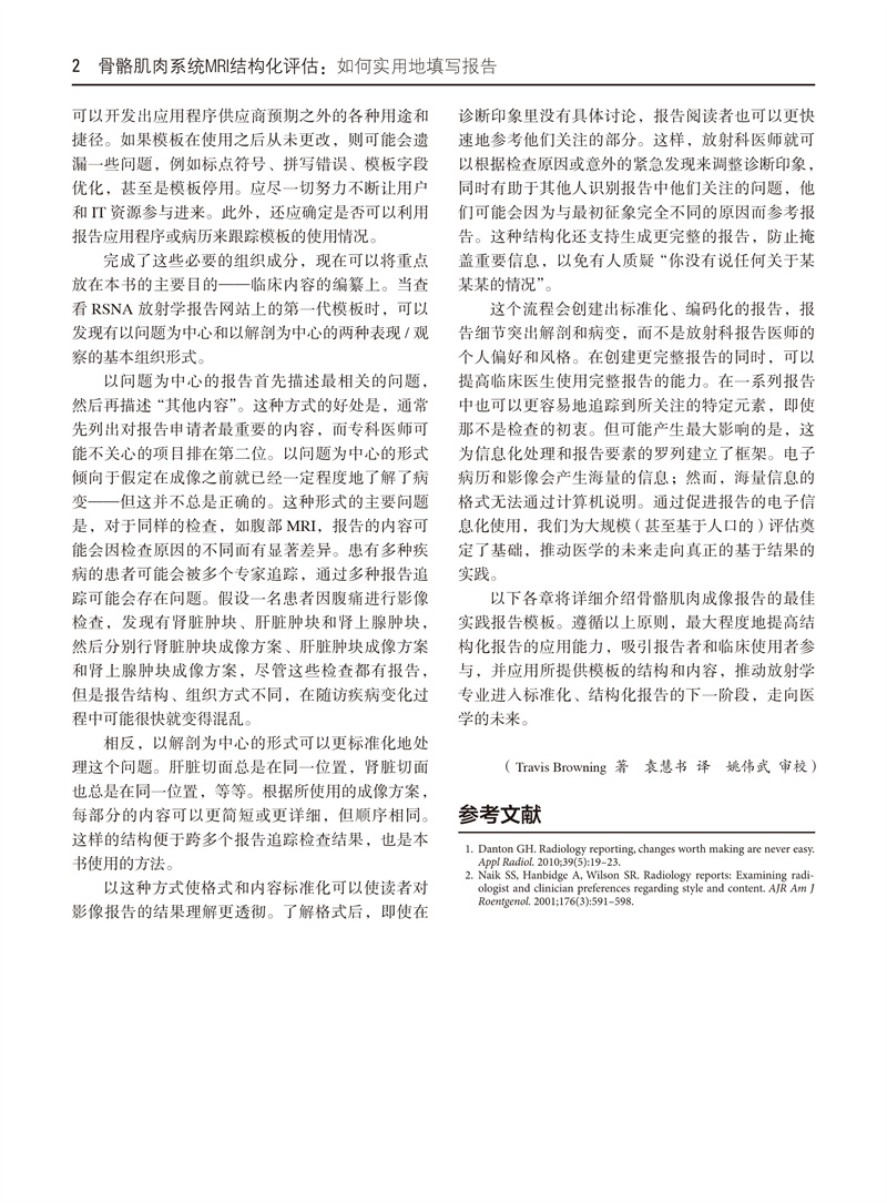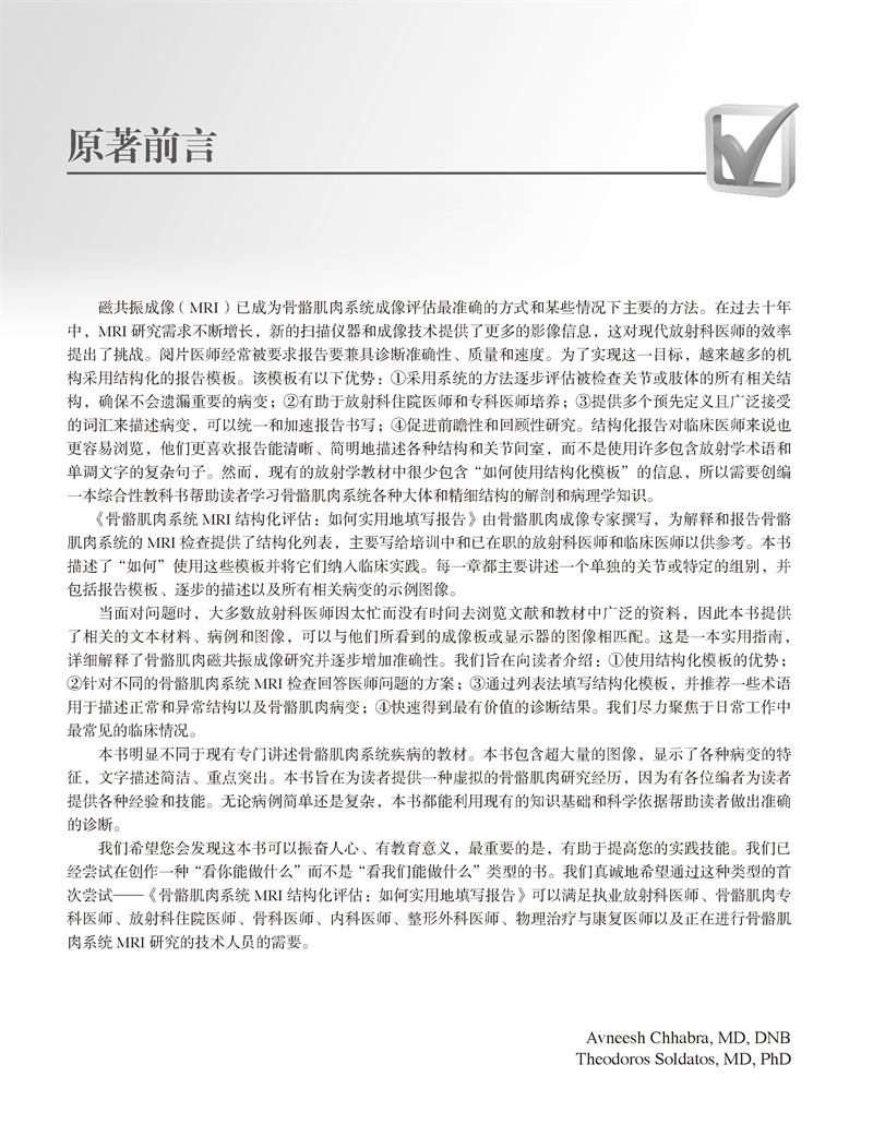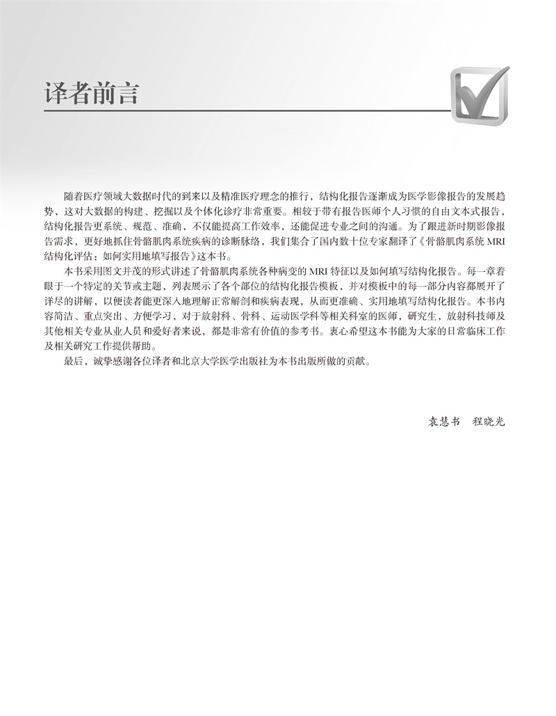 骨骼肌肉系统MRI结构化评估 如何实用地填写报告 袁慧书 程晓光 主译 肌肉骨骼系统-核磁共振成像 影像学 北京大学医学出版社