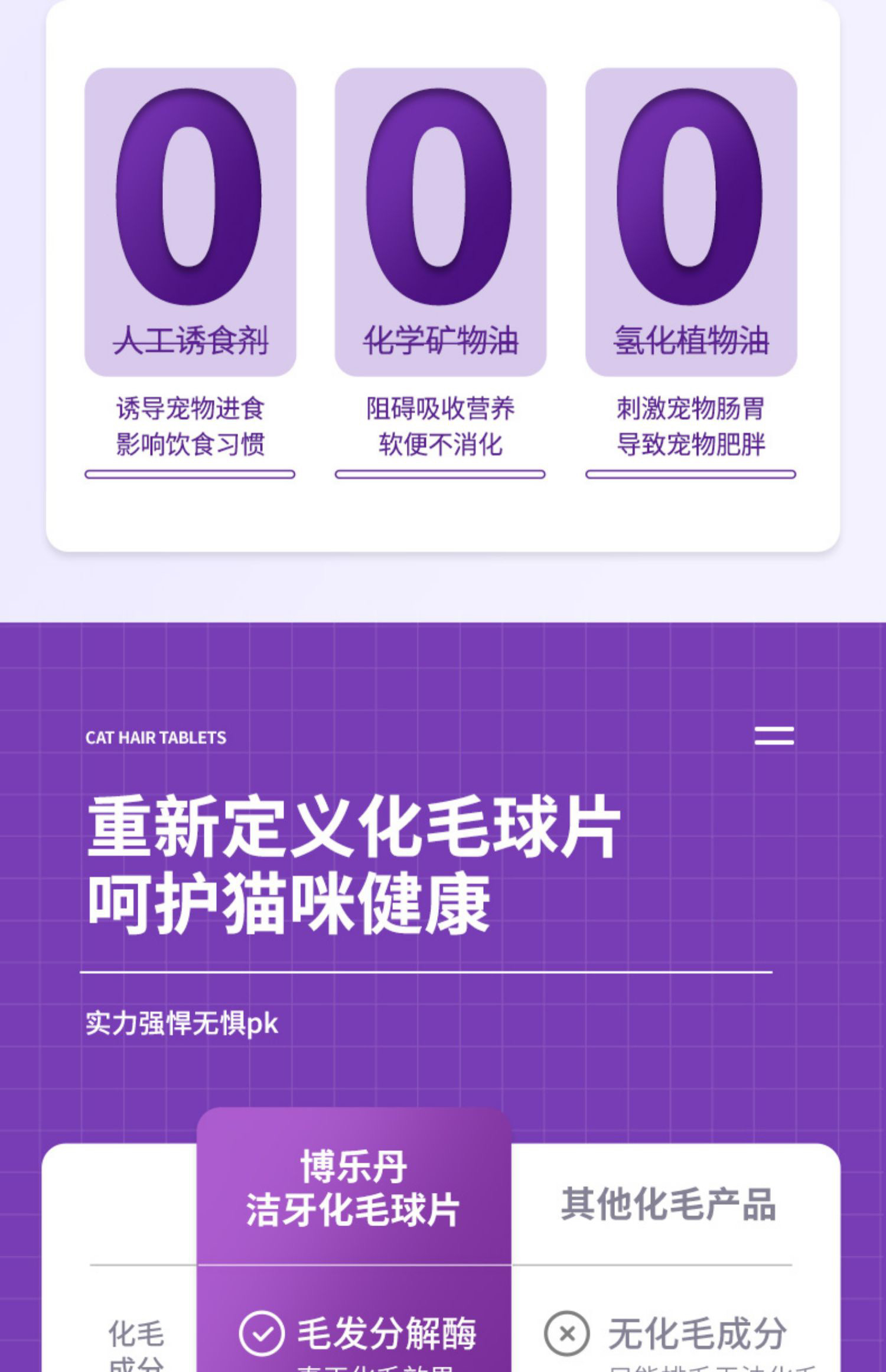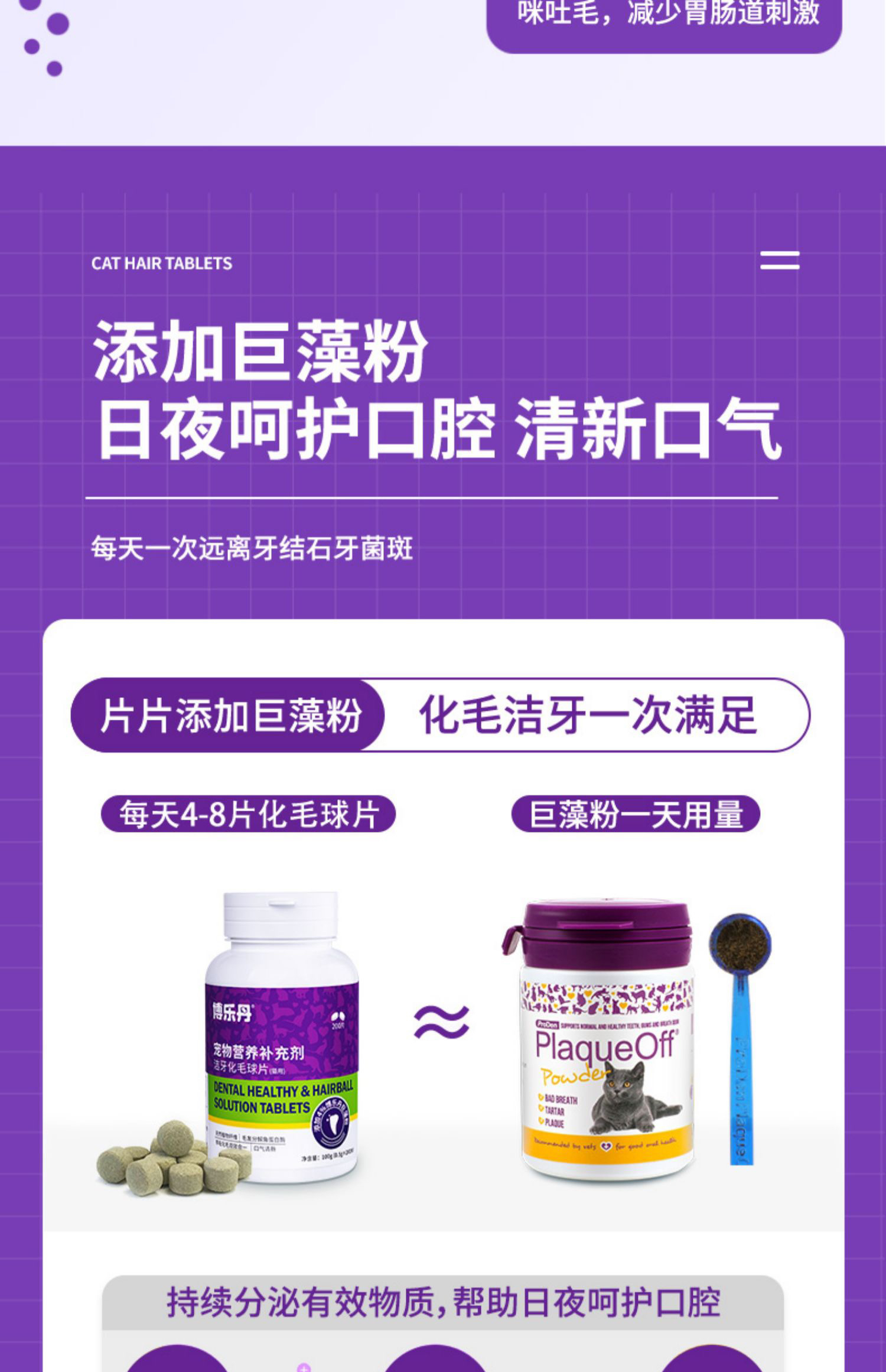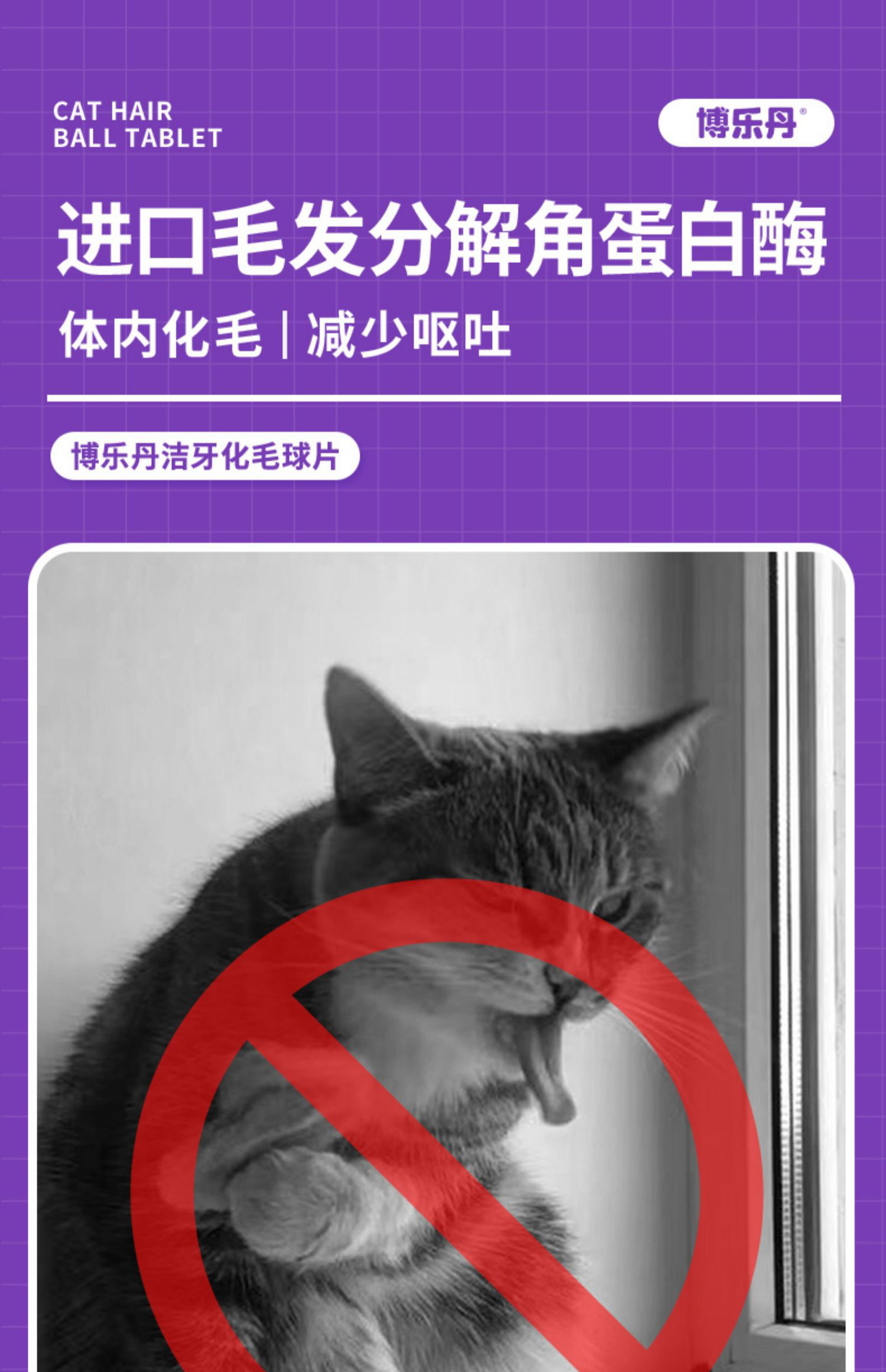 猫研所 博乐丹洁牙化毛排毛猫草片 体内化毛促进排毛球添加巨藻