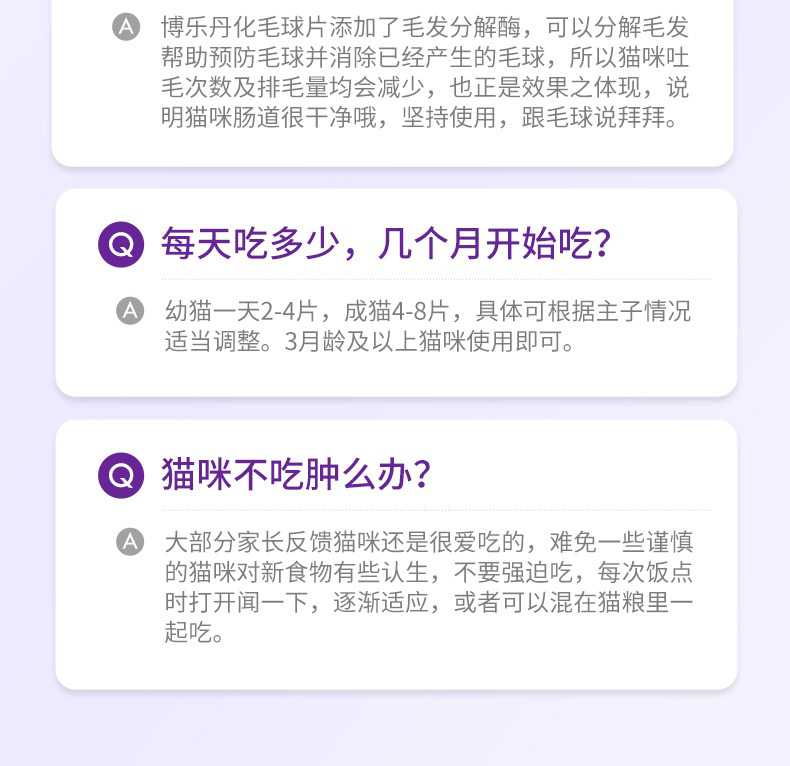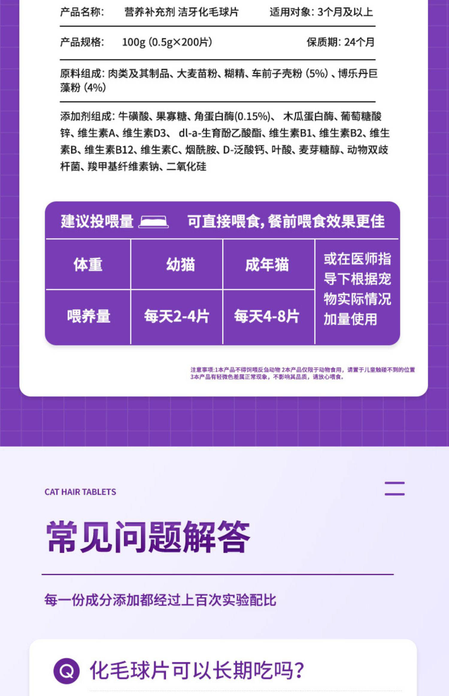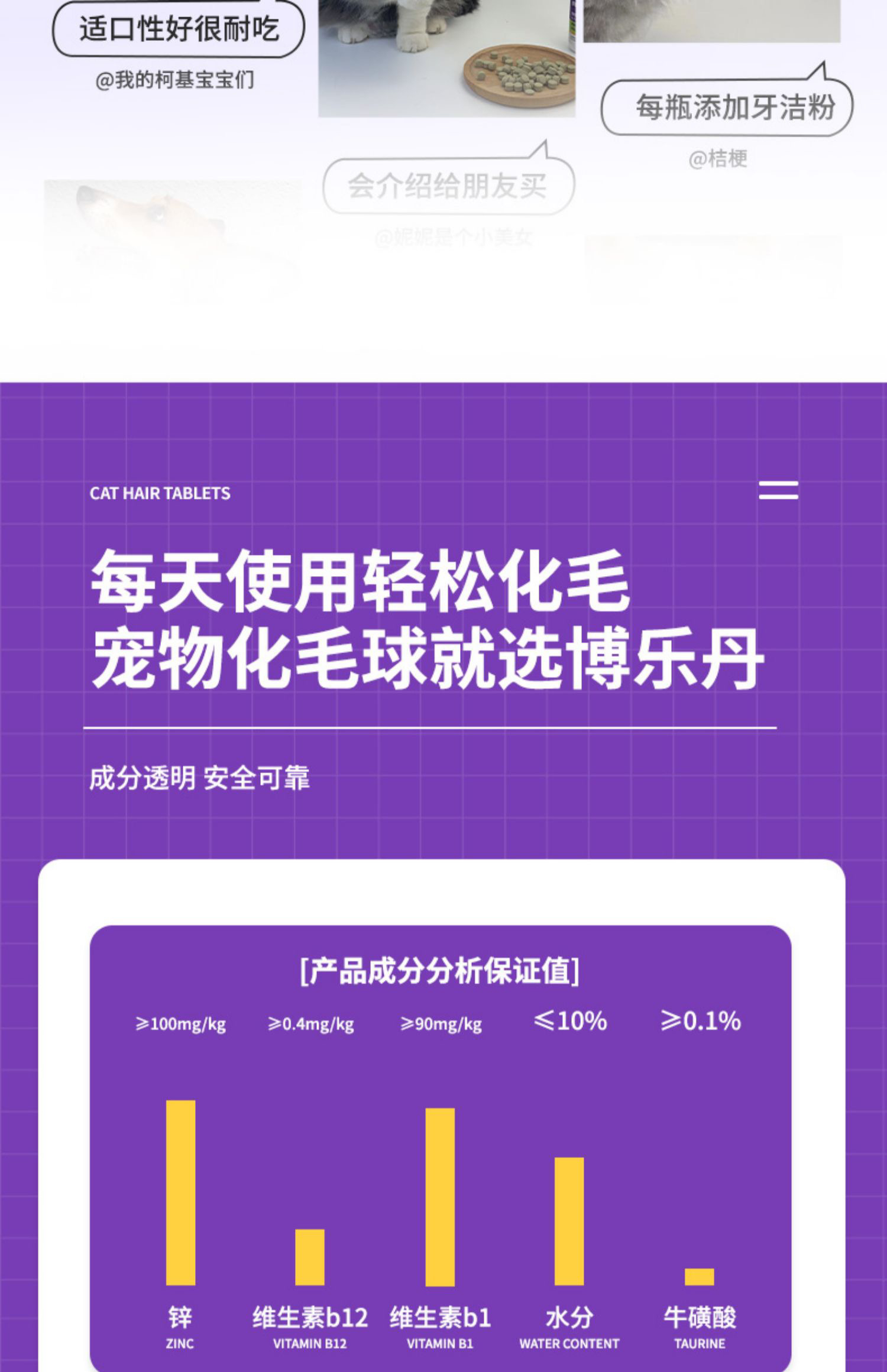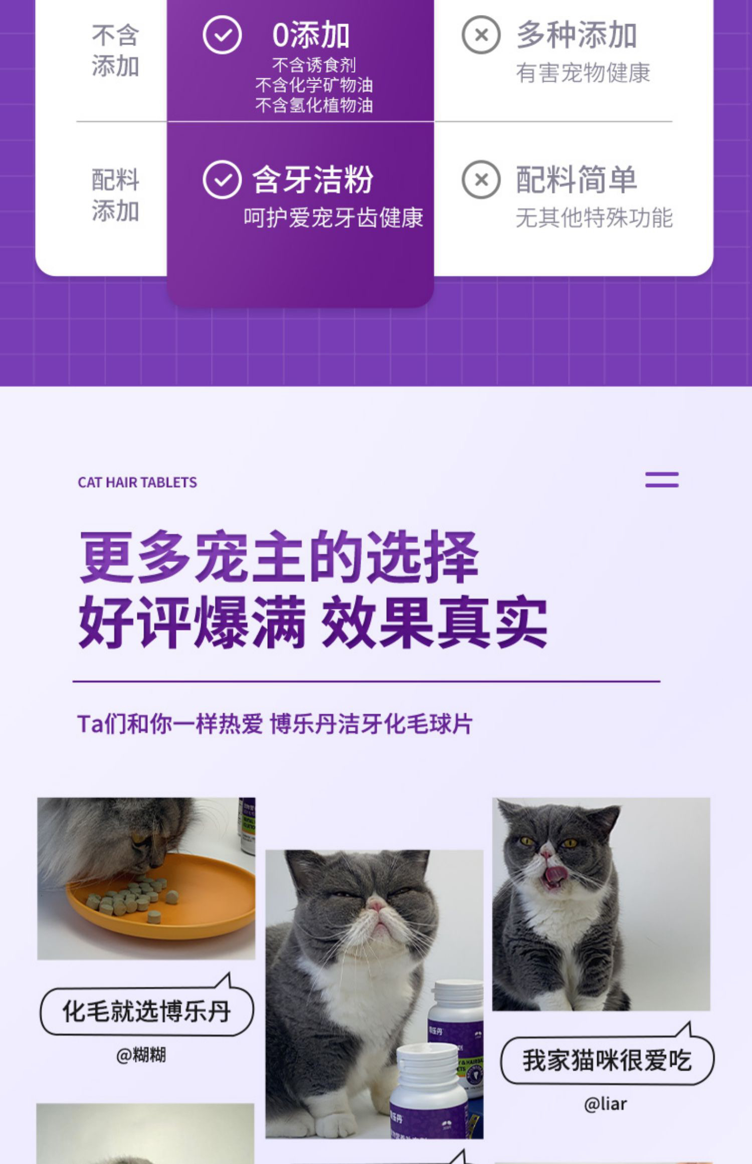 猫研所 博乐丹洁牙化毛排毛猫草片 体内化毛促进排毛球添加巨藻