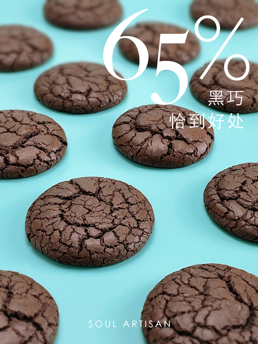 配料:65%黑巧克力、可可粉、黄油、鸡蛋、盐、糖、面粉、小苏打