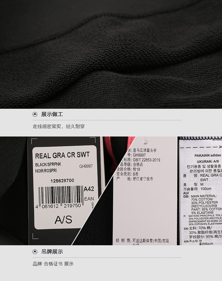 小李子ADIDAS阿迪达斯20-21赛季皇马球迷足球卫衣套头衫GH9997