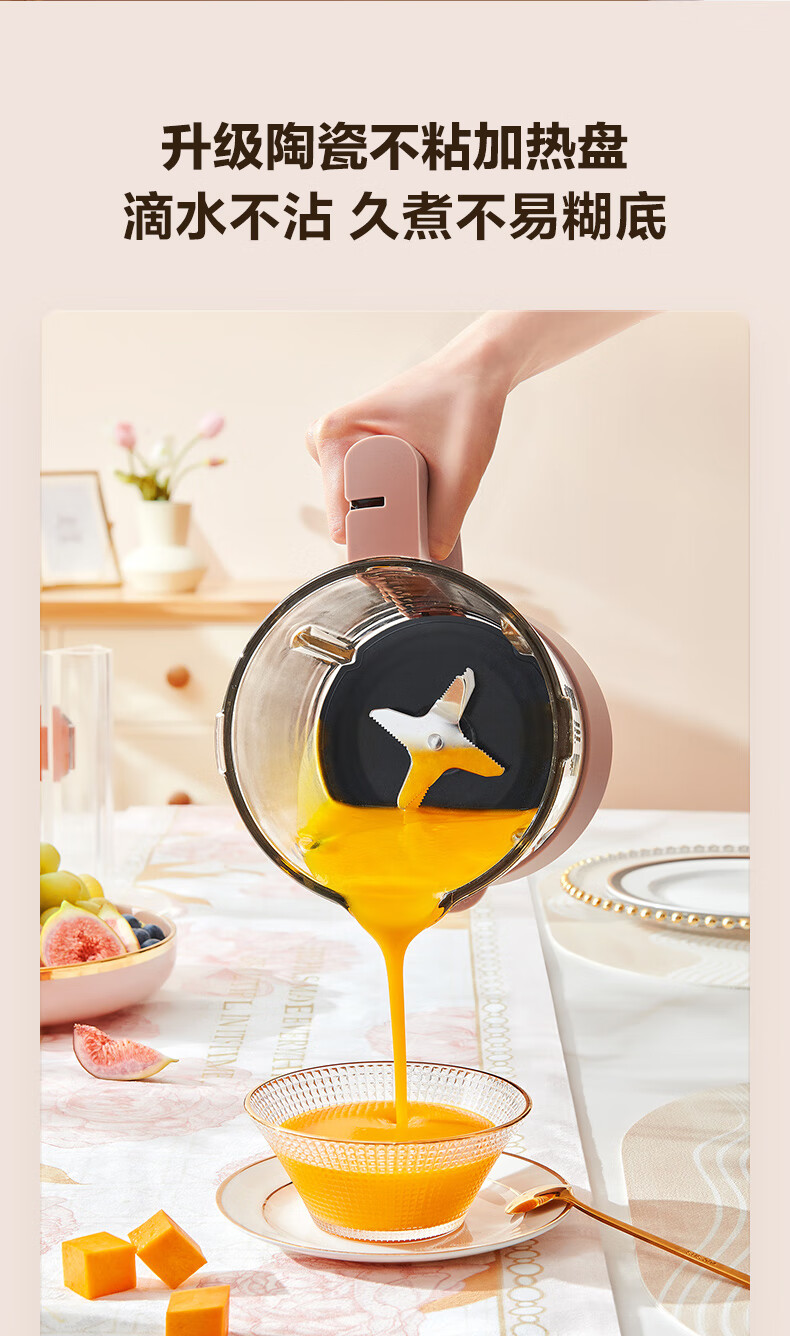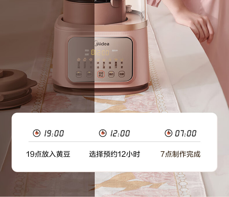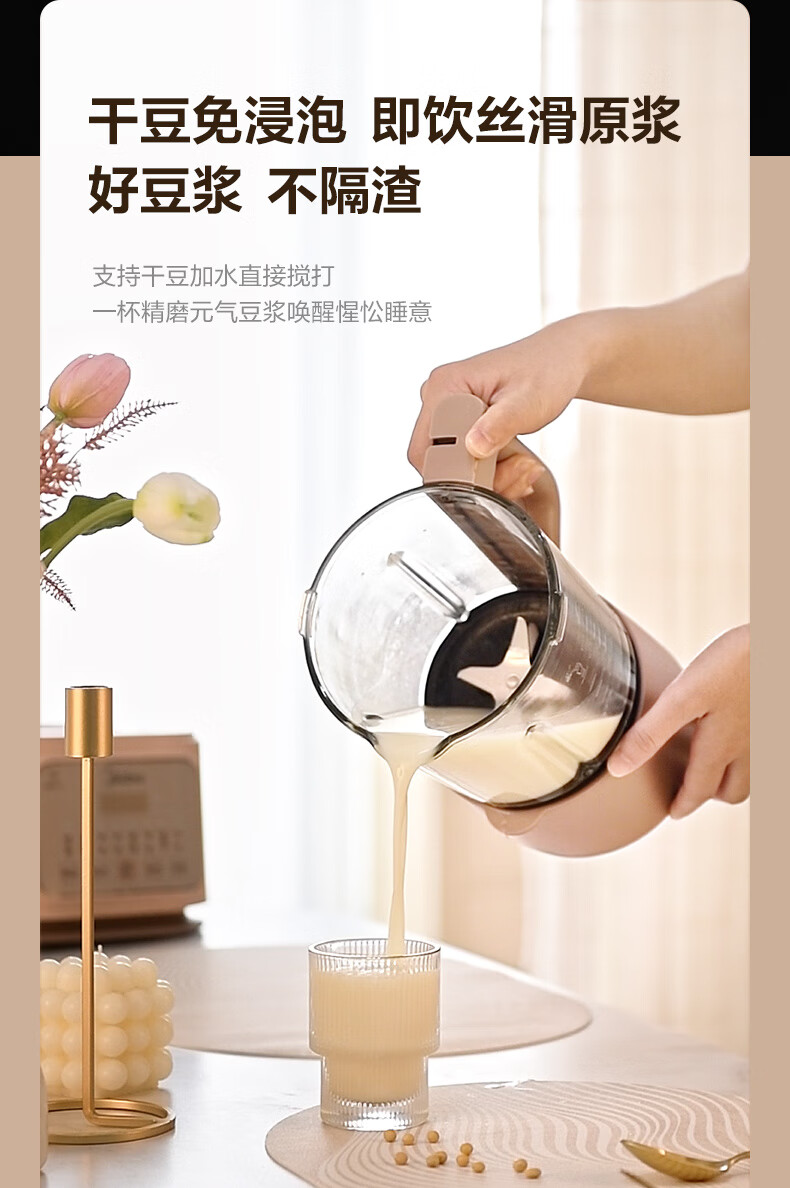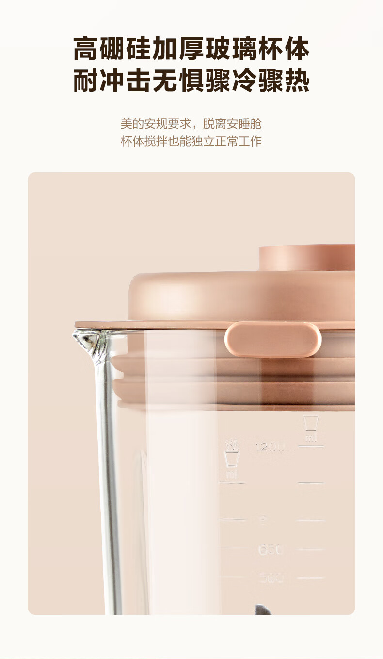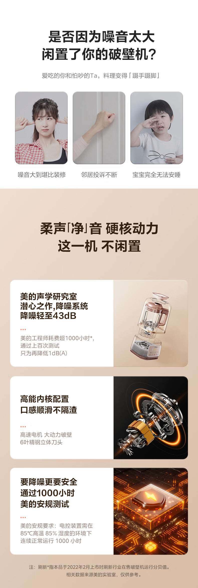 美的(Midea)低音破壁机安睡升级43dB降噪静柔音破壁豆浆机辅食料理榨汁机 MJ-PB80S2