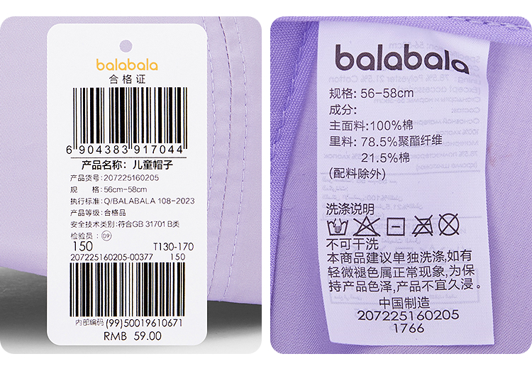 巴拉巴拉儿童帽子男女童棒球帽夏季舒适时尚简约休闲