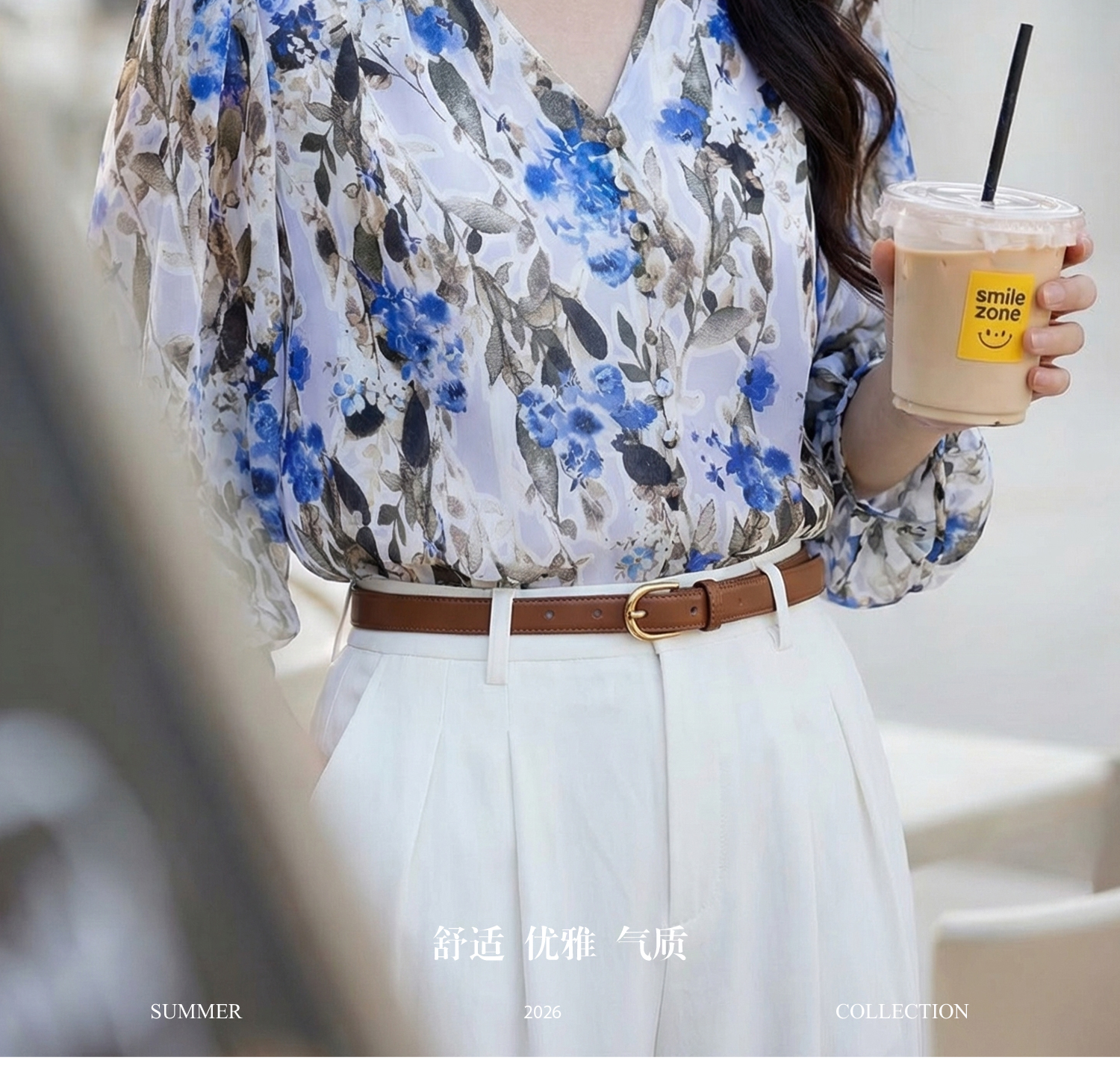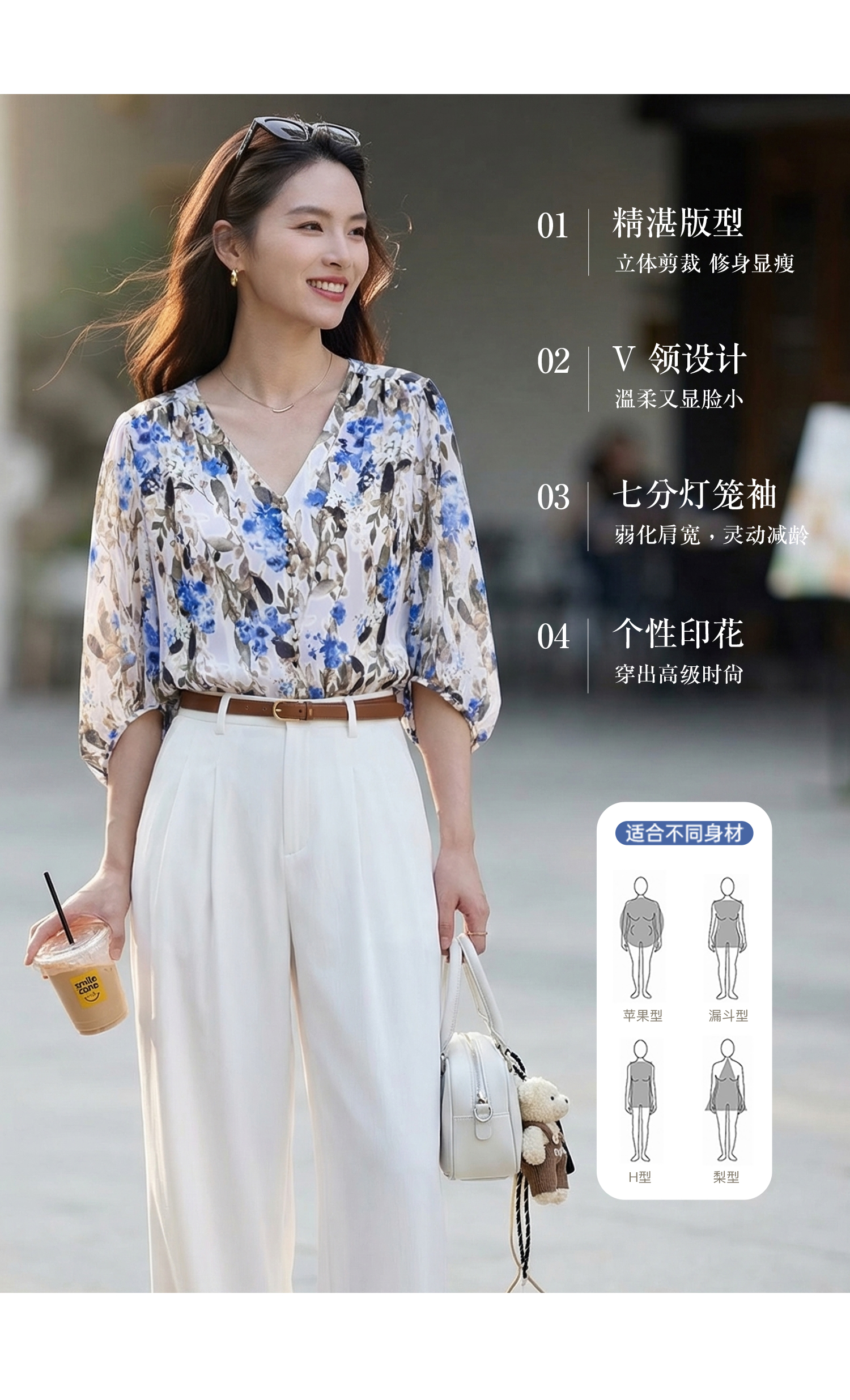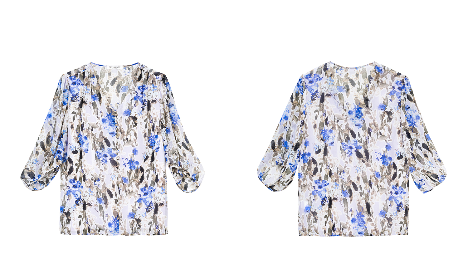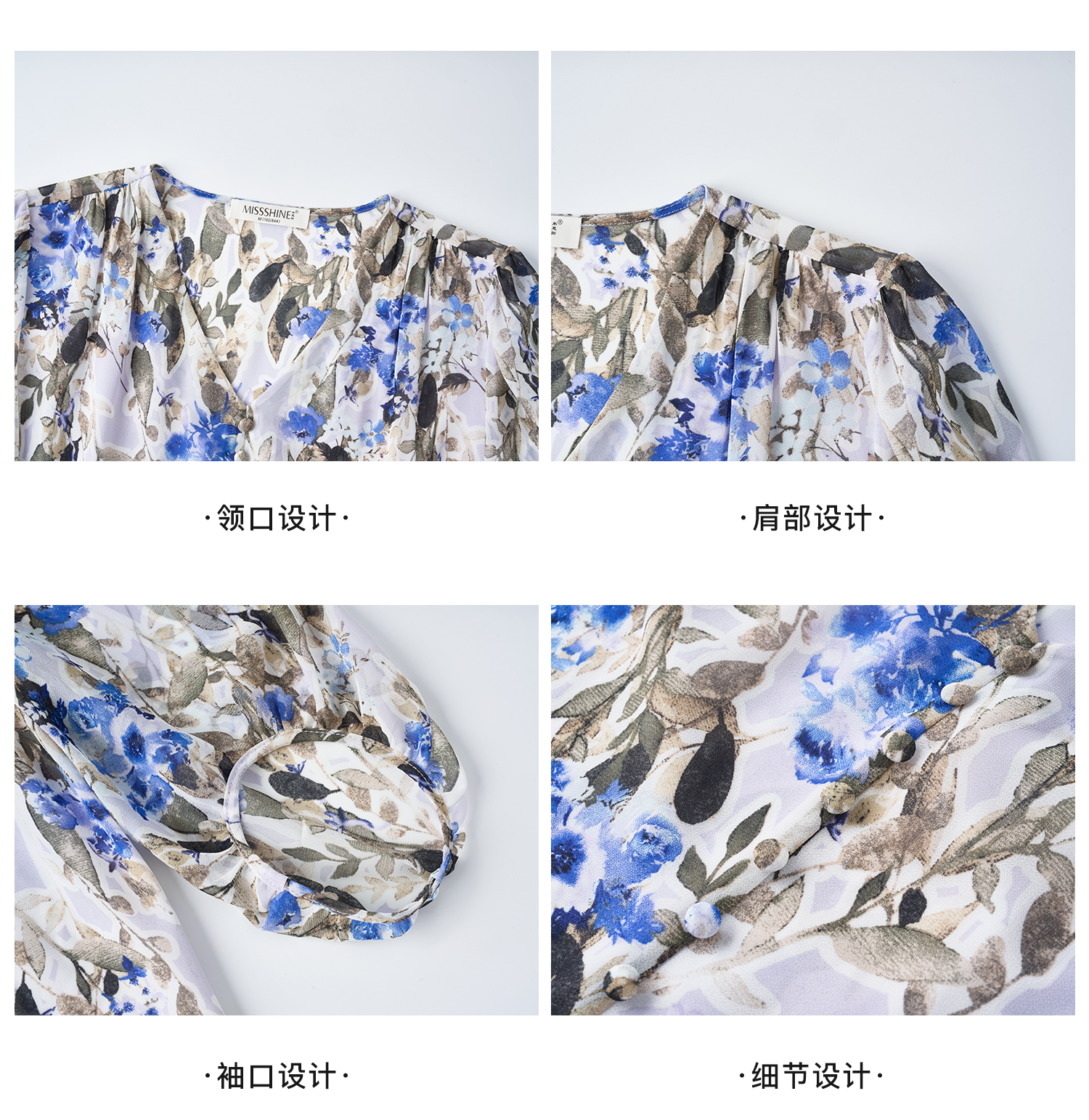 米思阳2026夏季法式优雅印花衬衫V领宽松袖直筒衬衣女4277