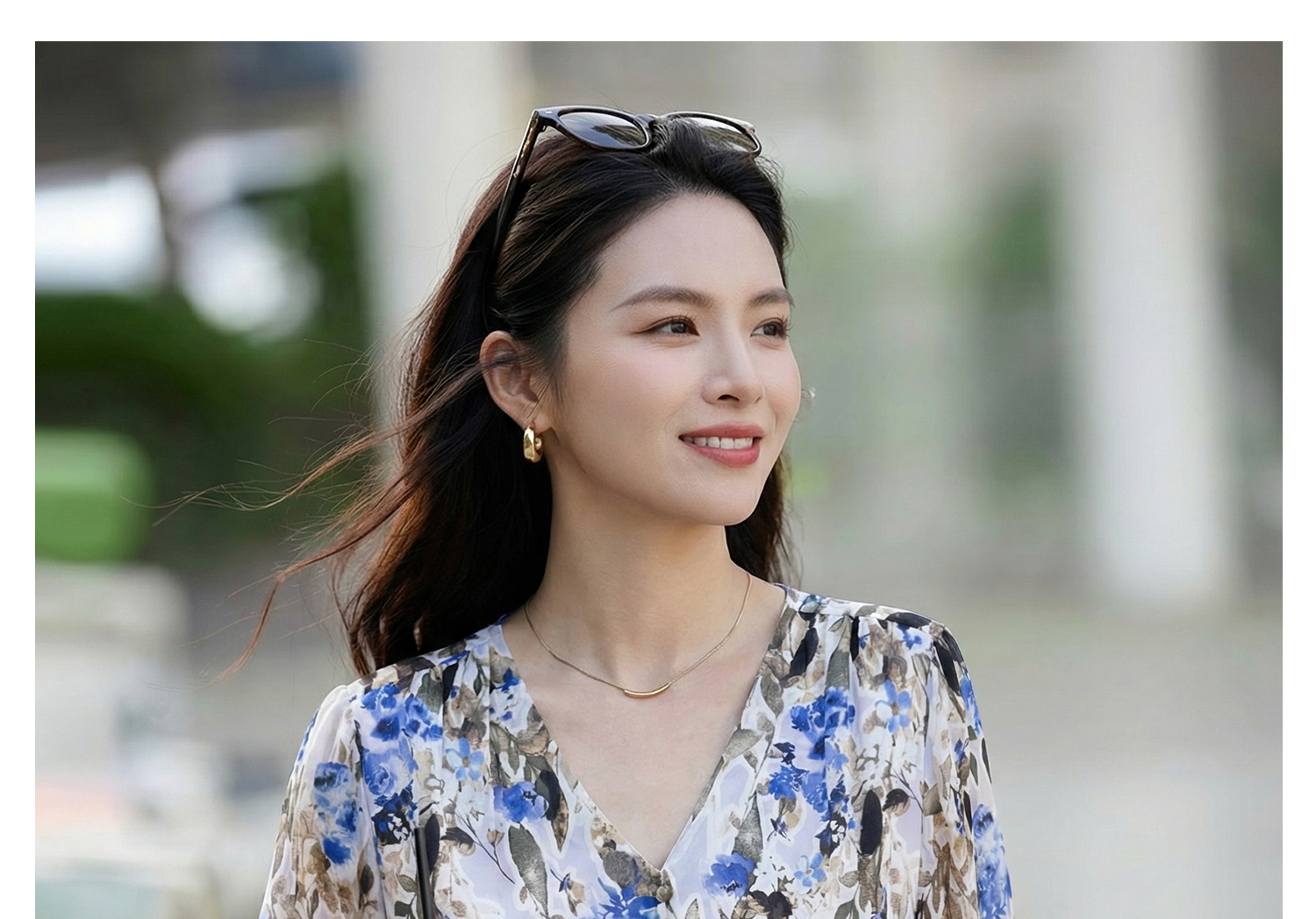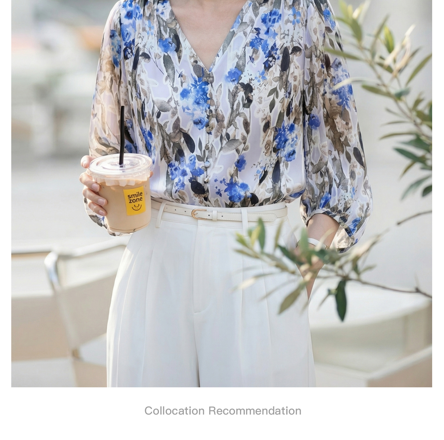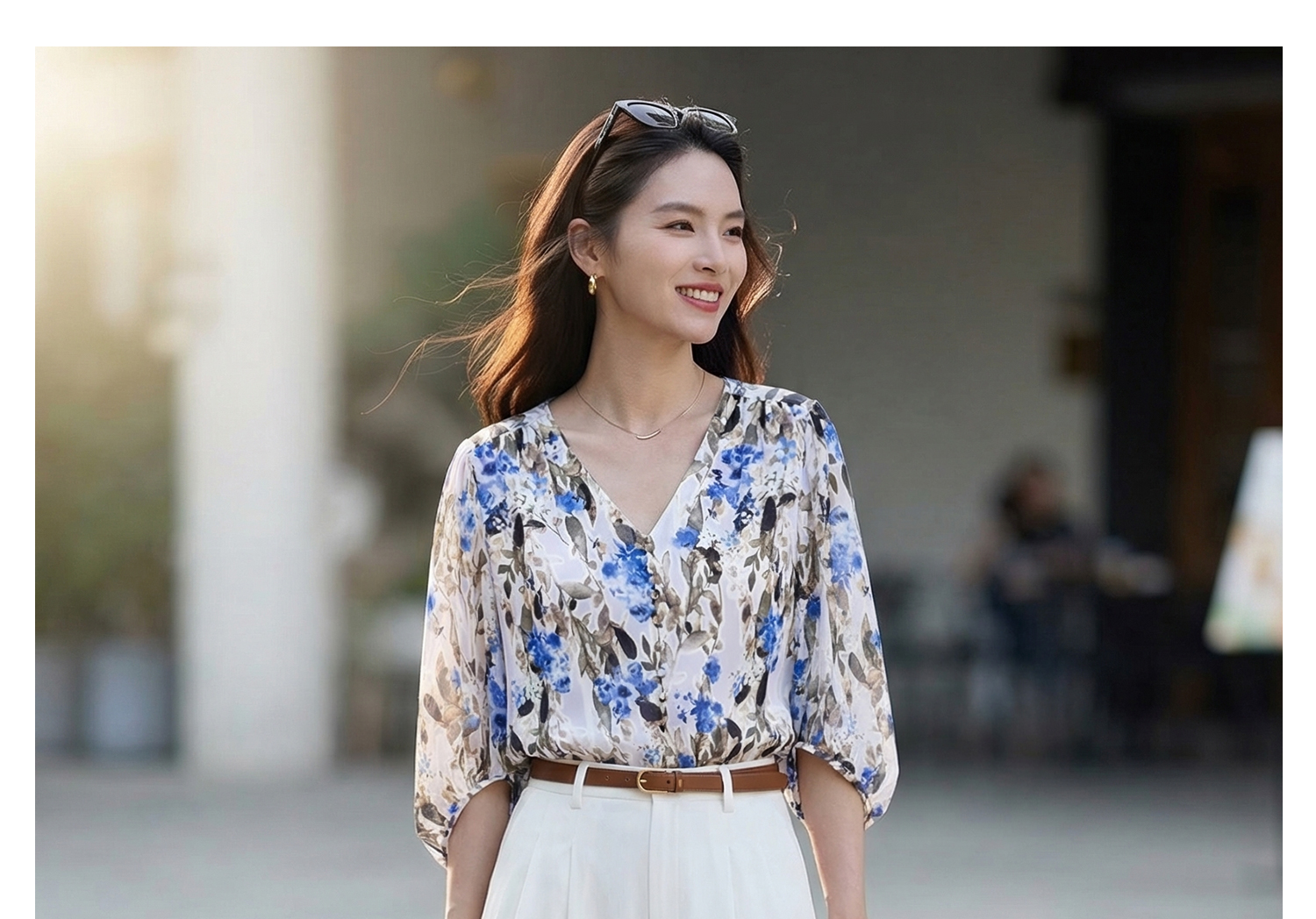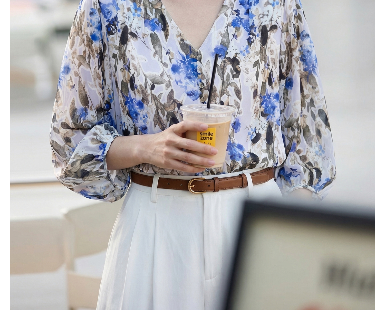 米思阳2026夏季法式优雅印花衬衫V领宽松袖直筒衬衣女4277