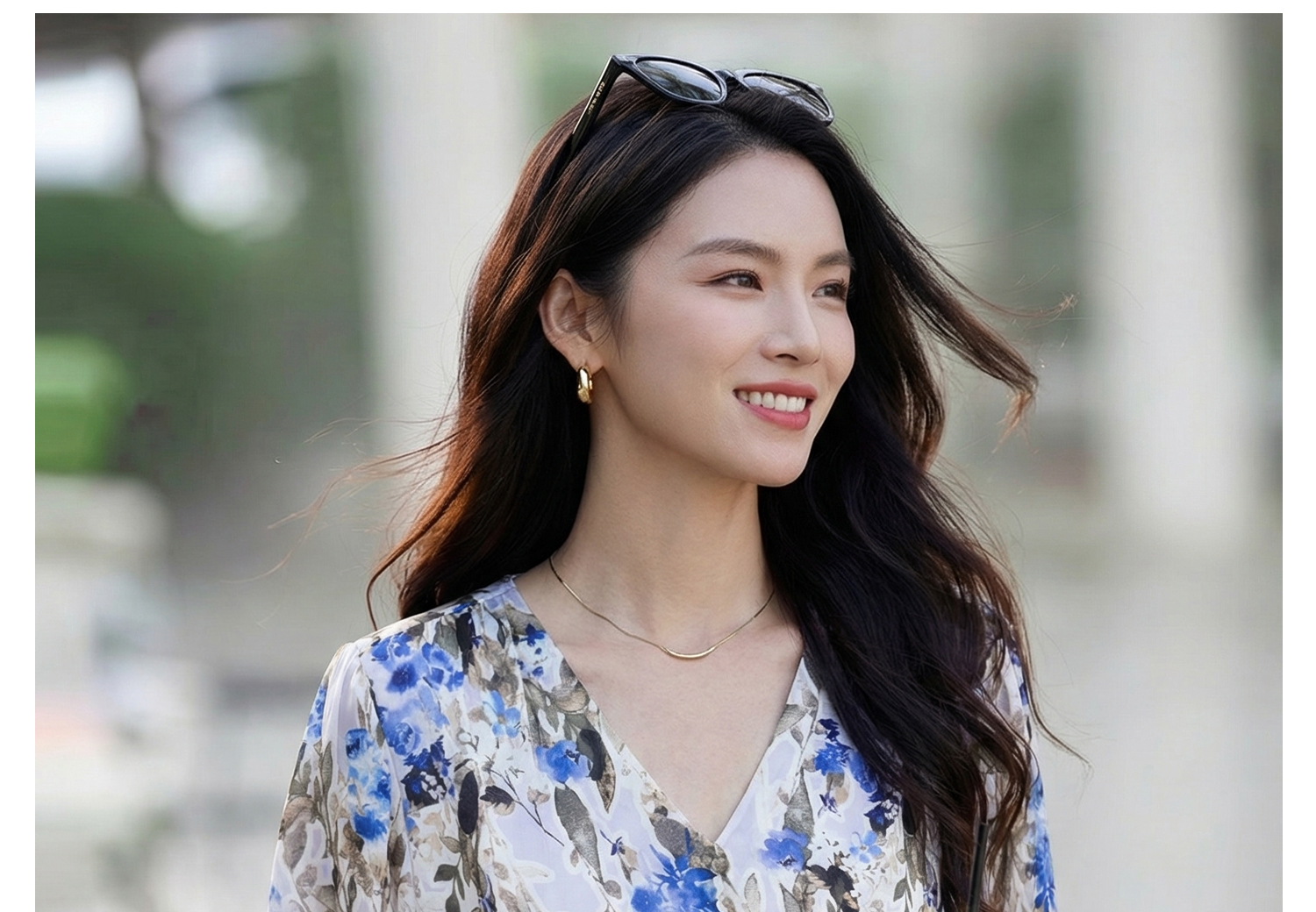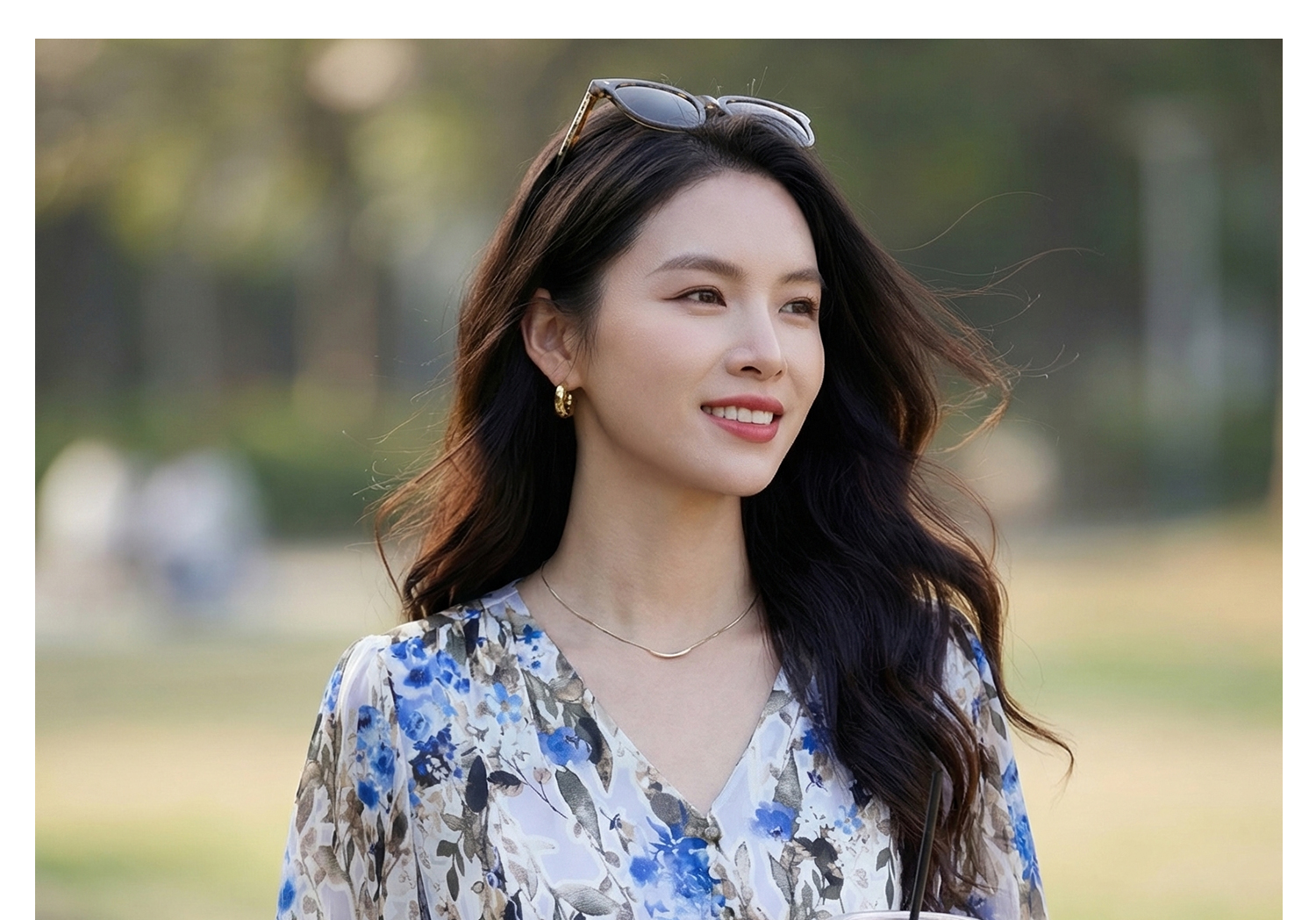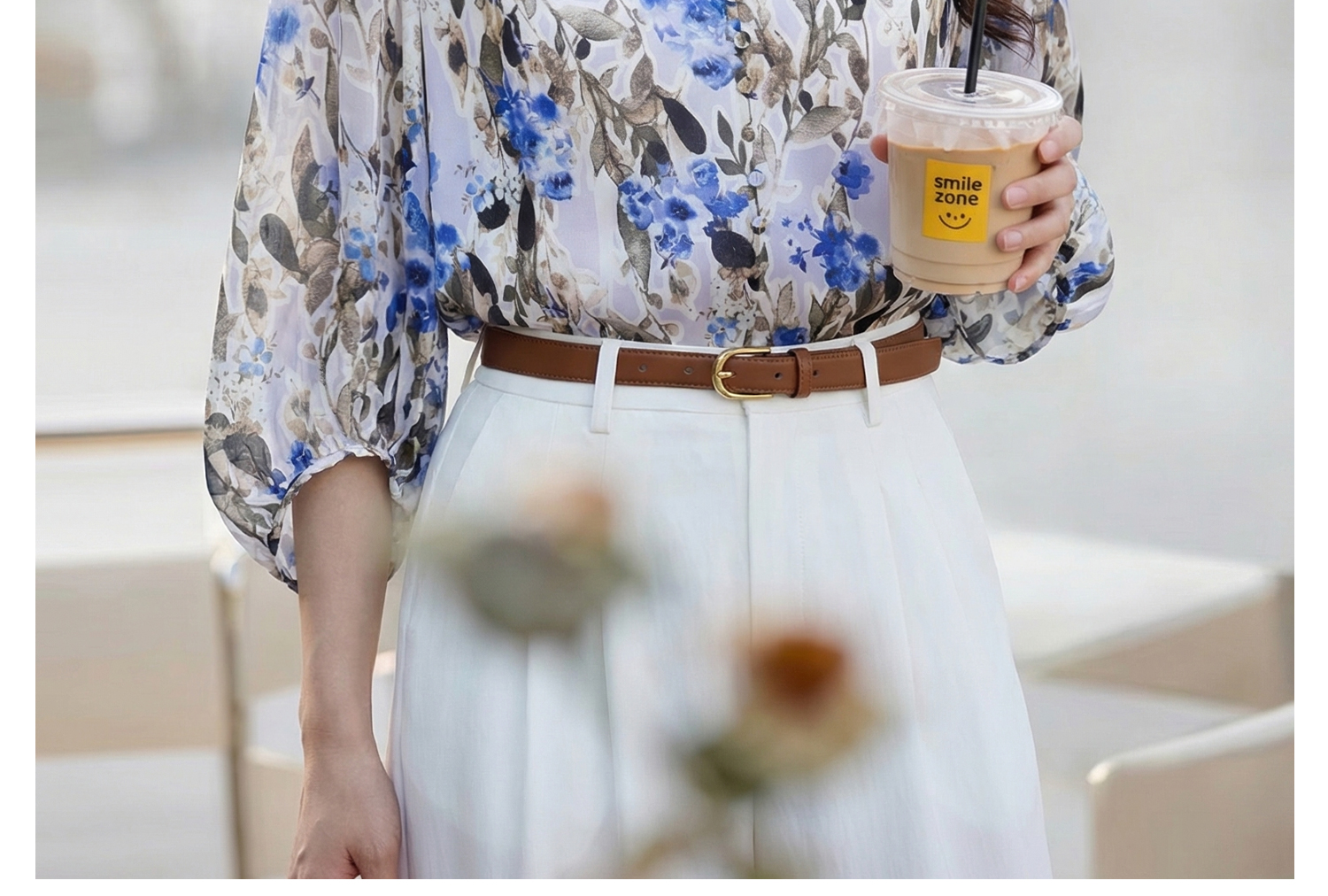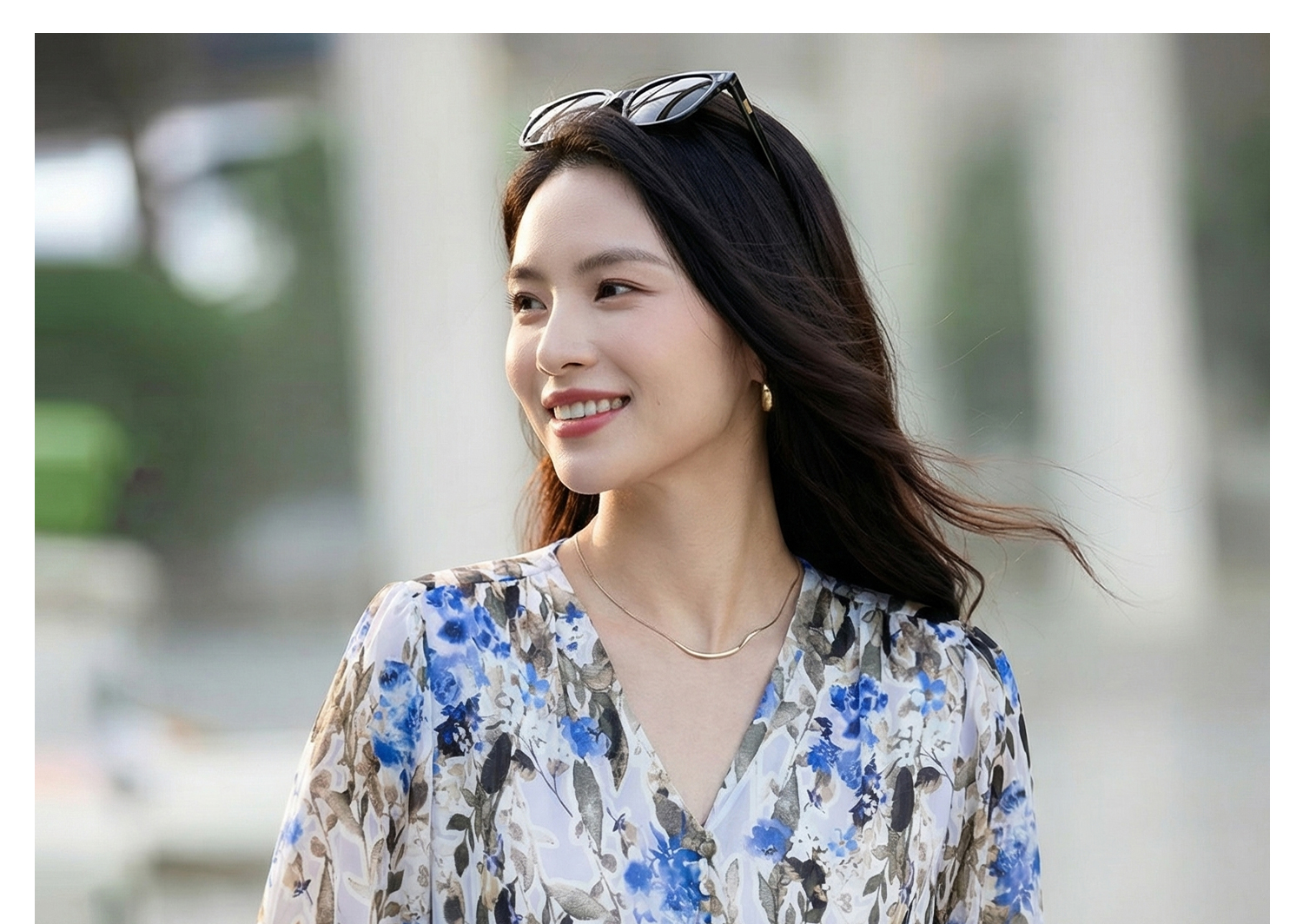 米思阳2026夏季法式优雅印花衬衫V领宽松袖直筒衬衣女4277