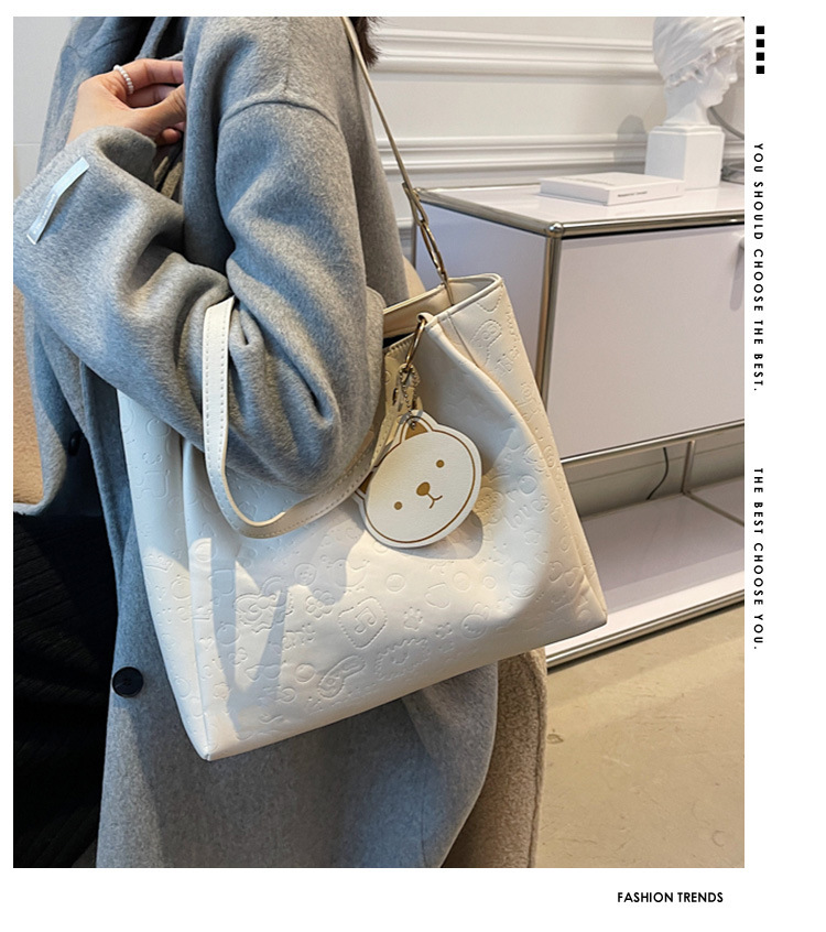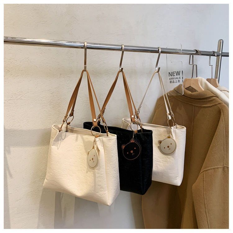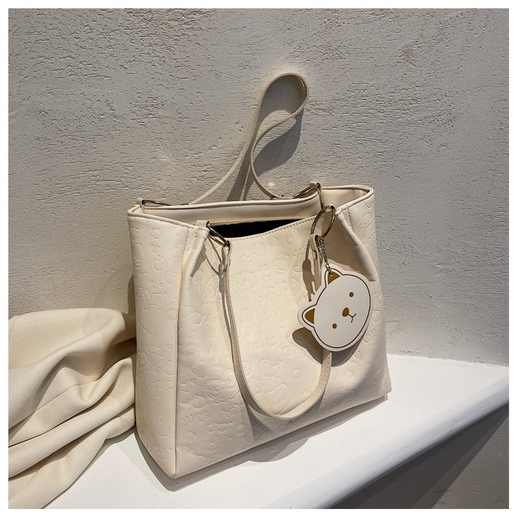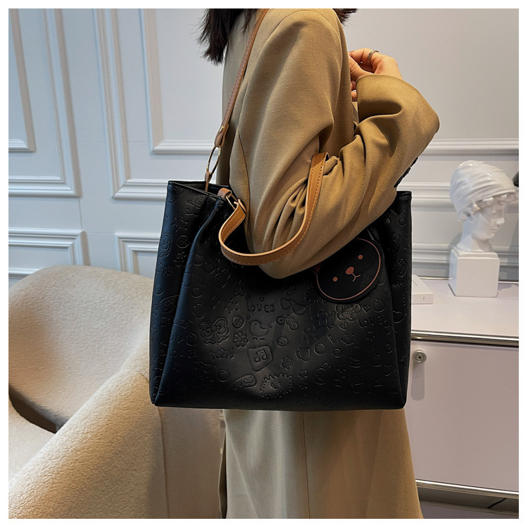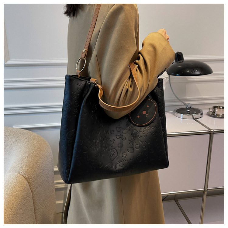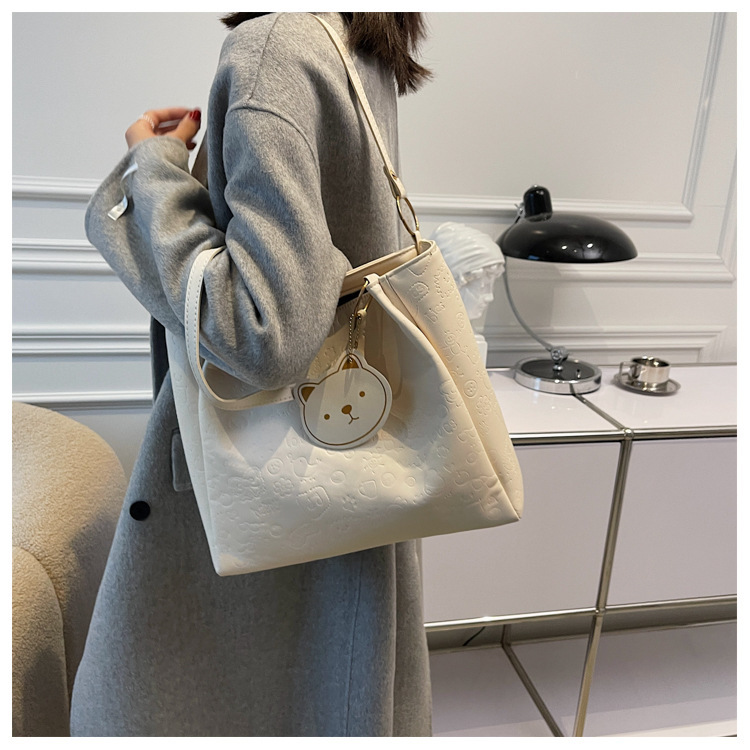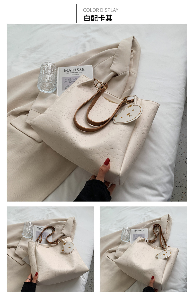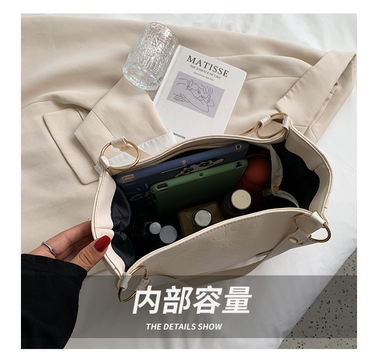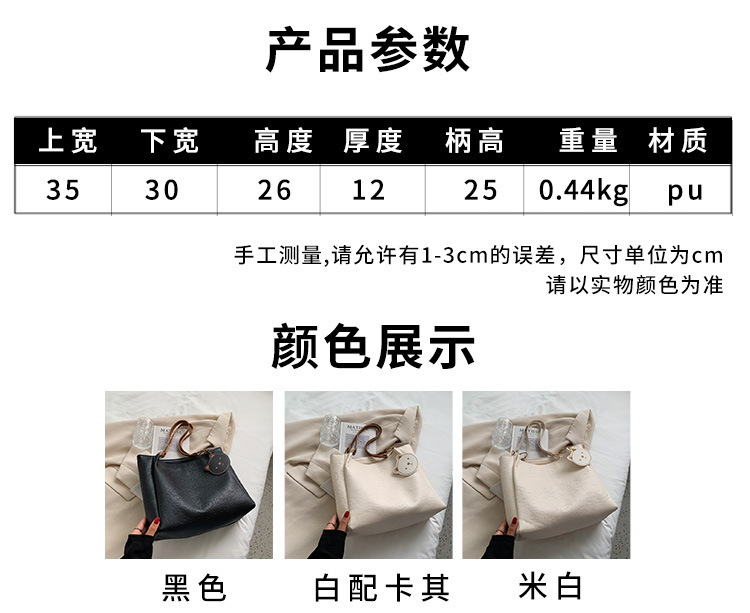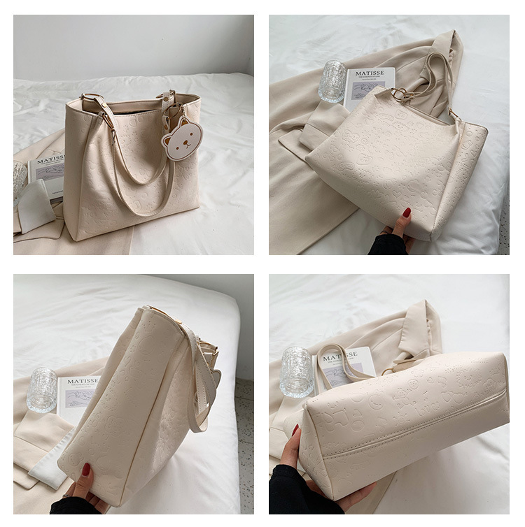 大容量女包2021新款秋季压花纯色单肩通勤包洋气休闲手提托特大包