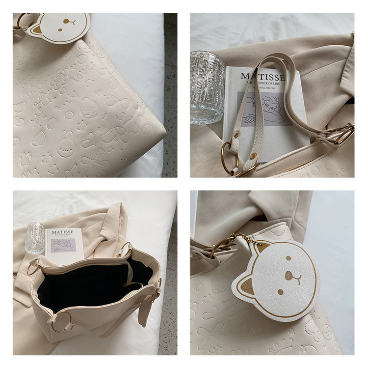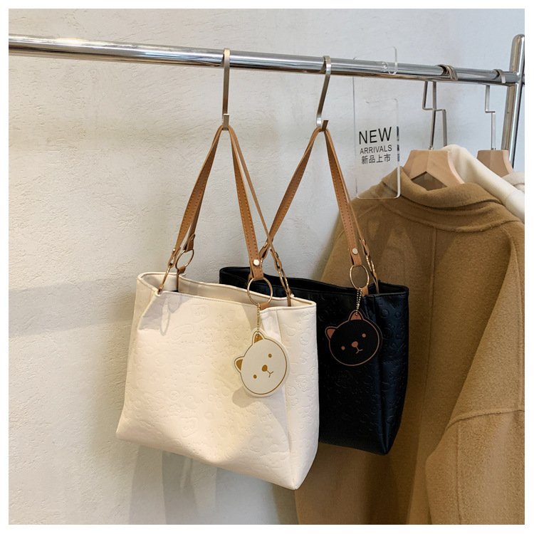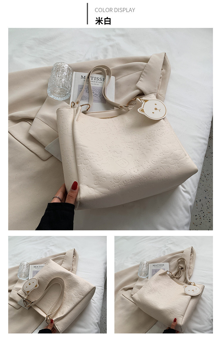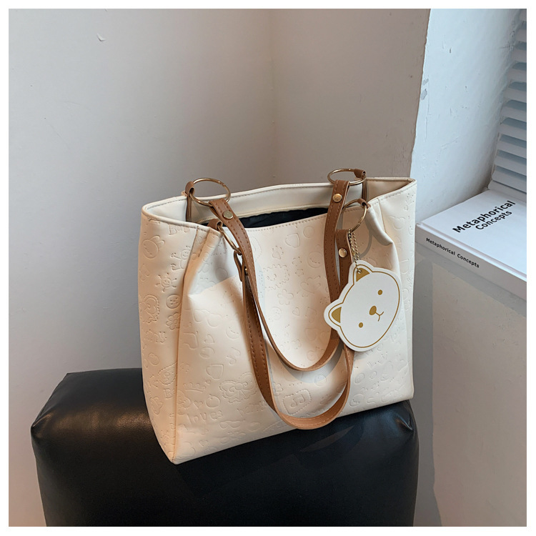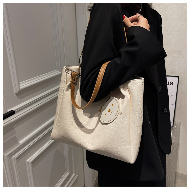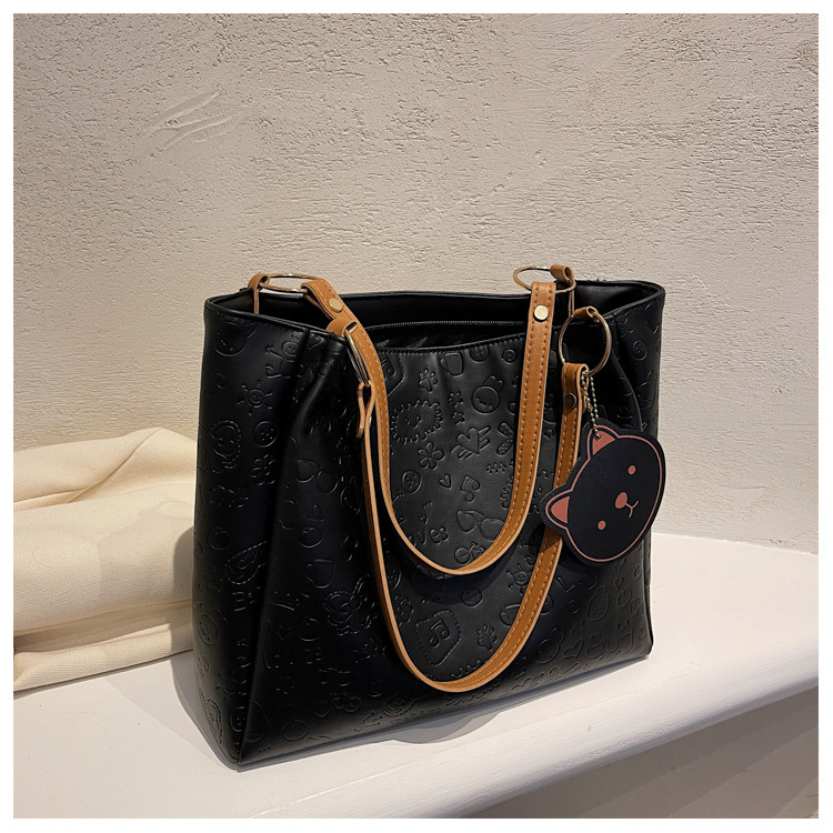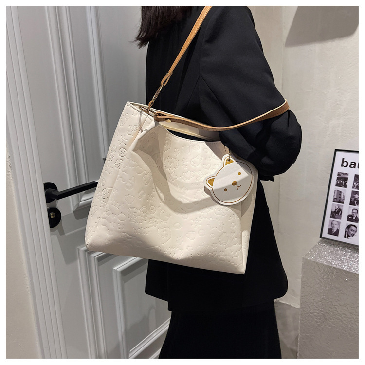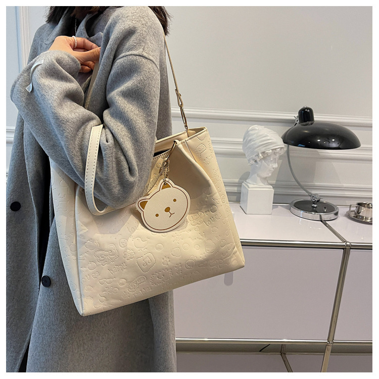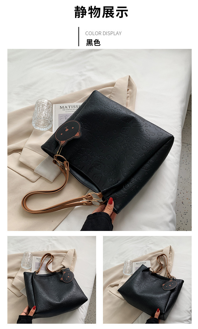 大容量女包2021新款秋季压花纯色单肩通勤包洋气休闲手提托特大包