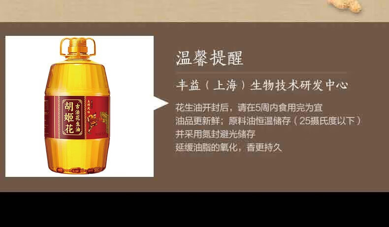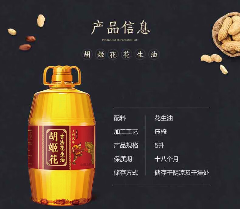 胡姬花 花生油家用食用油节日送礼 古法土榨花生油5L