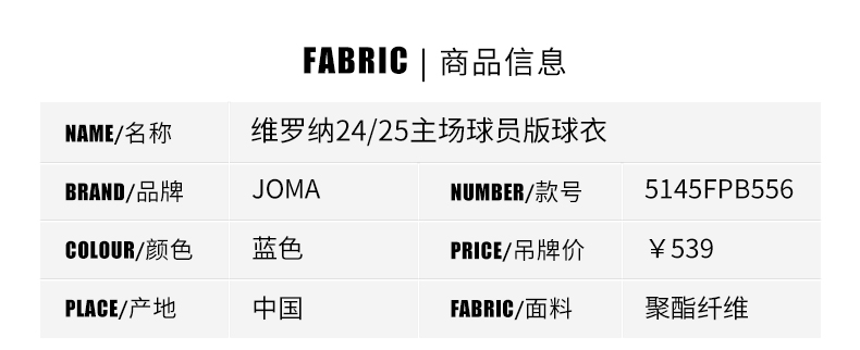 SFS 荷马Joma 24/25维罗纳主场球员版足球服 5145FPB556