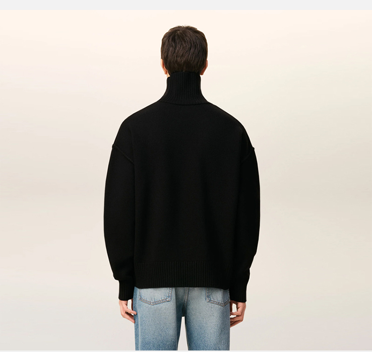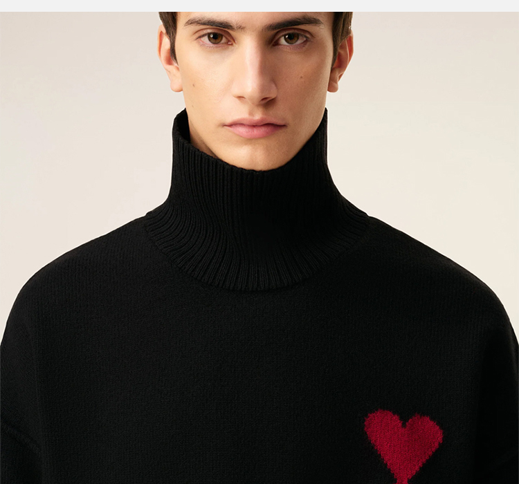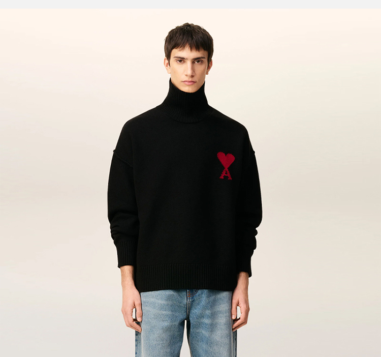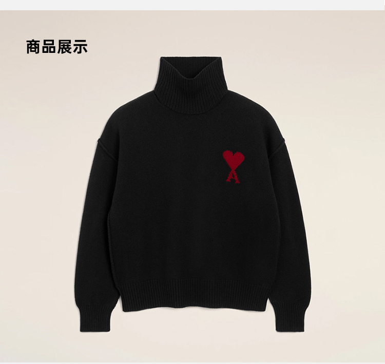 AMI 男女同款心形徽标刺绣嵌花羊毛针织衫 黑色 UKS839 018 009