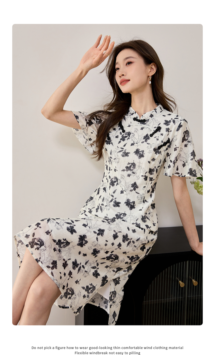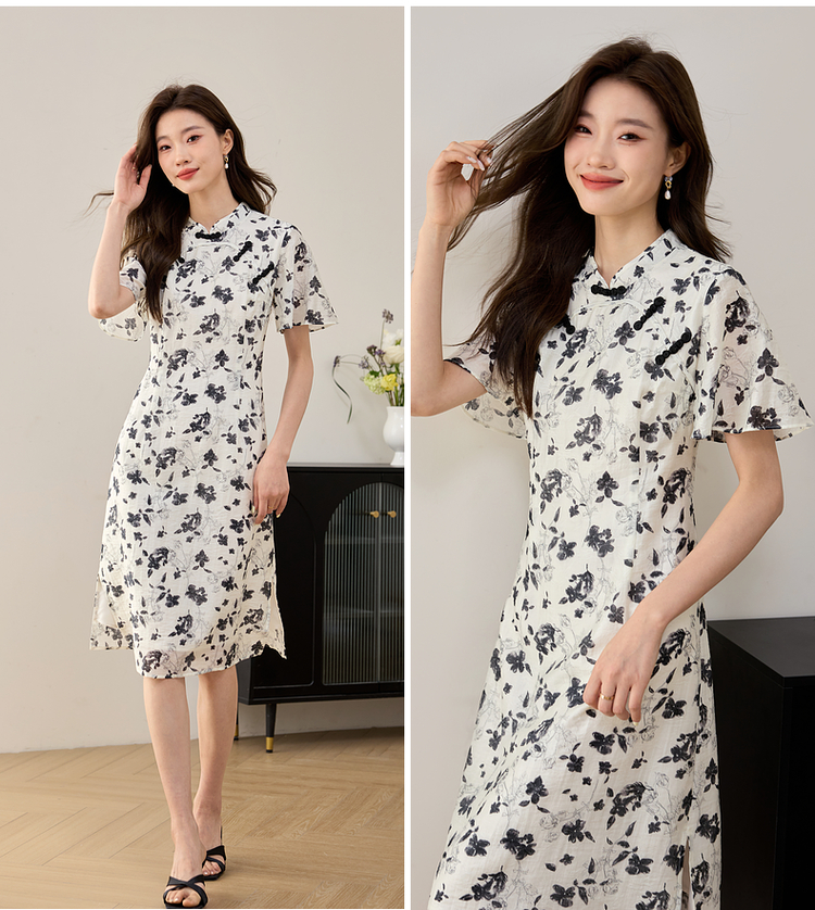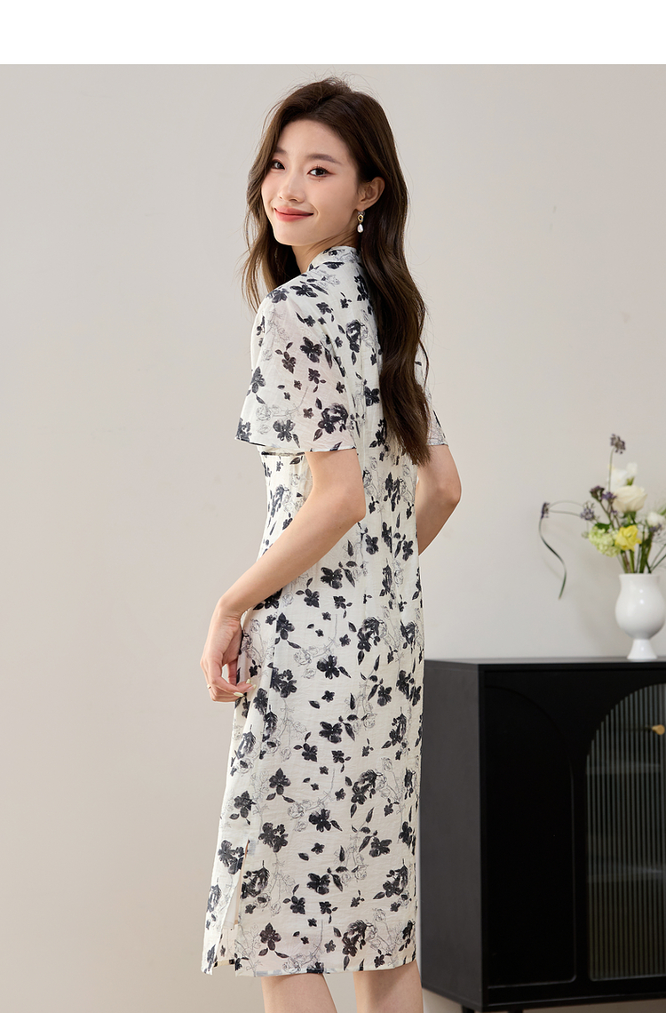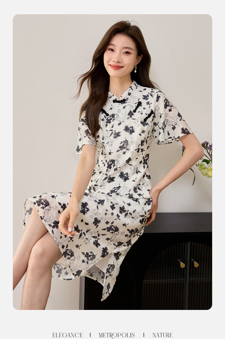 【专属特价】熙世界天丝新中式改良旗袍连衣裙夏季气质国风复古碎花雪纺裙子
