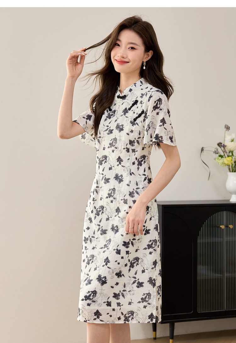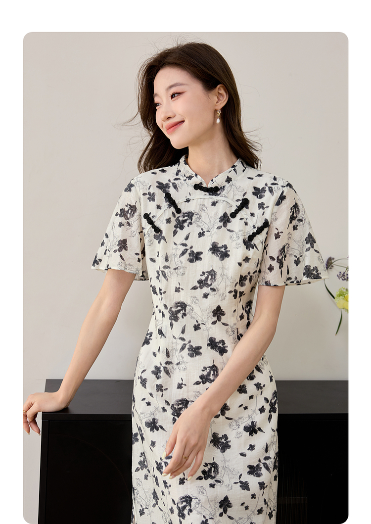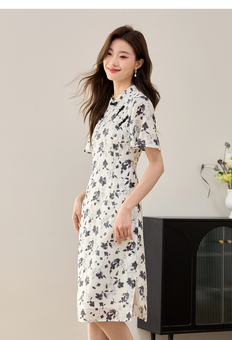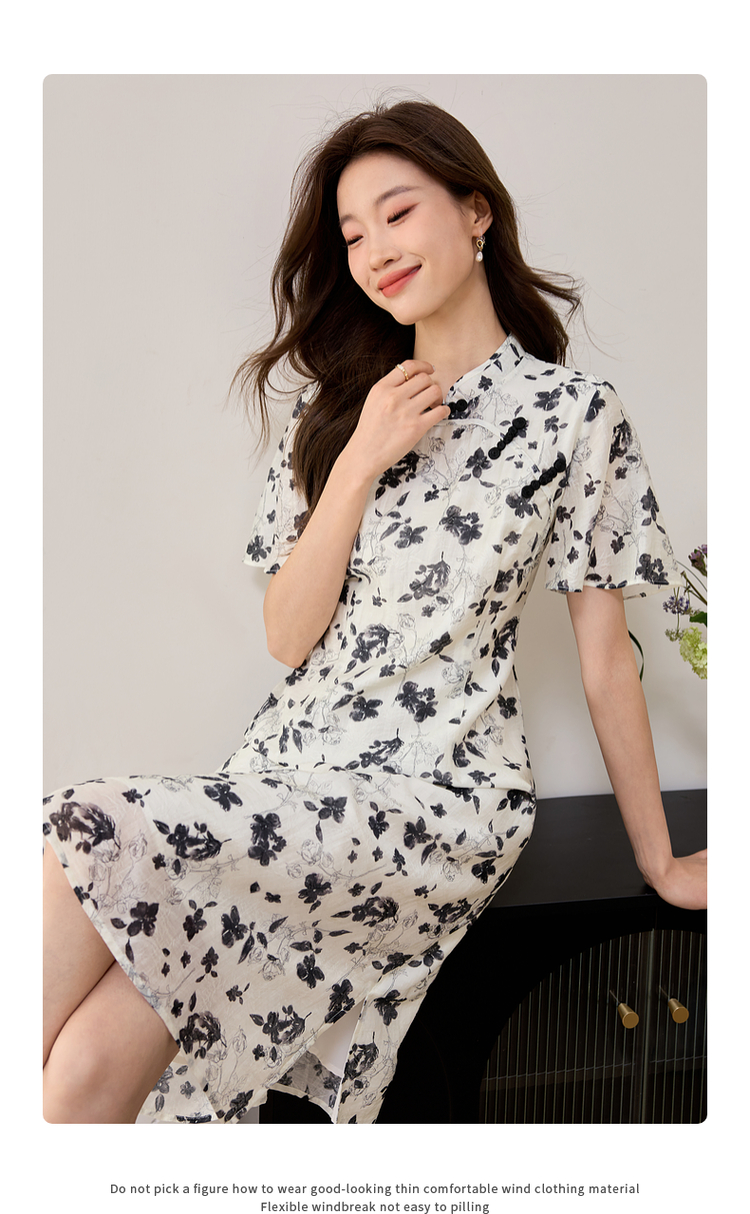 【专属特价】熙世界天丝新中式改良旗袍连衣裙夏季气质国风复古碎花雪纺裙子