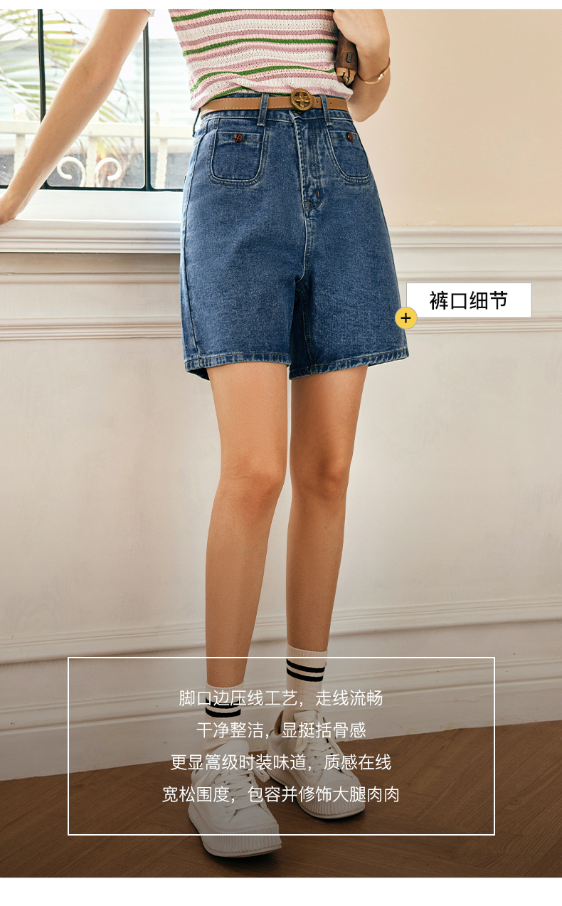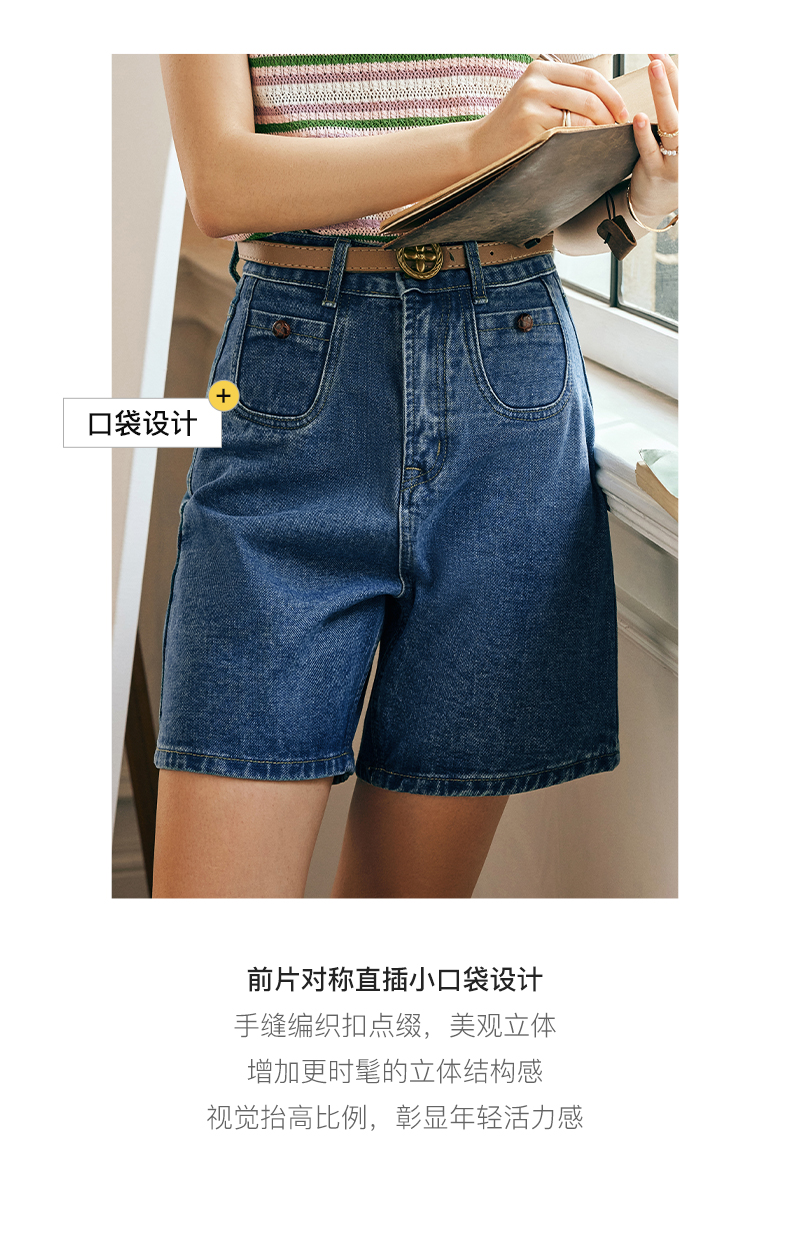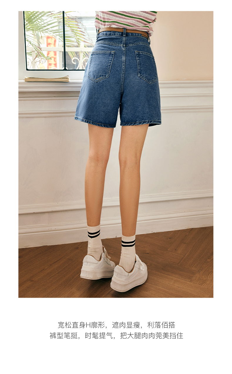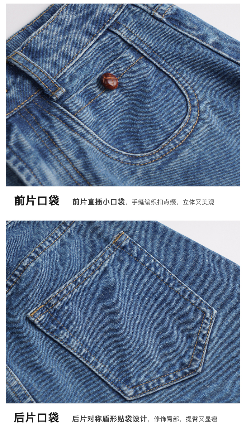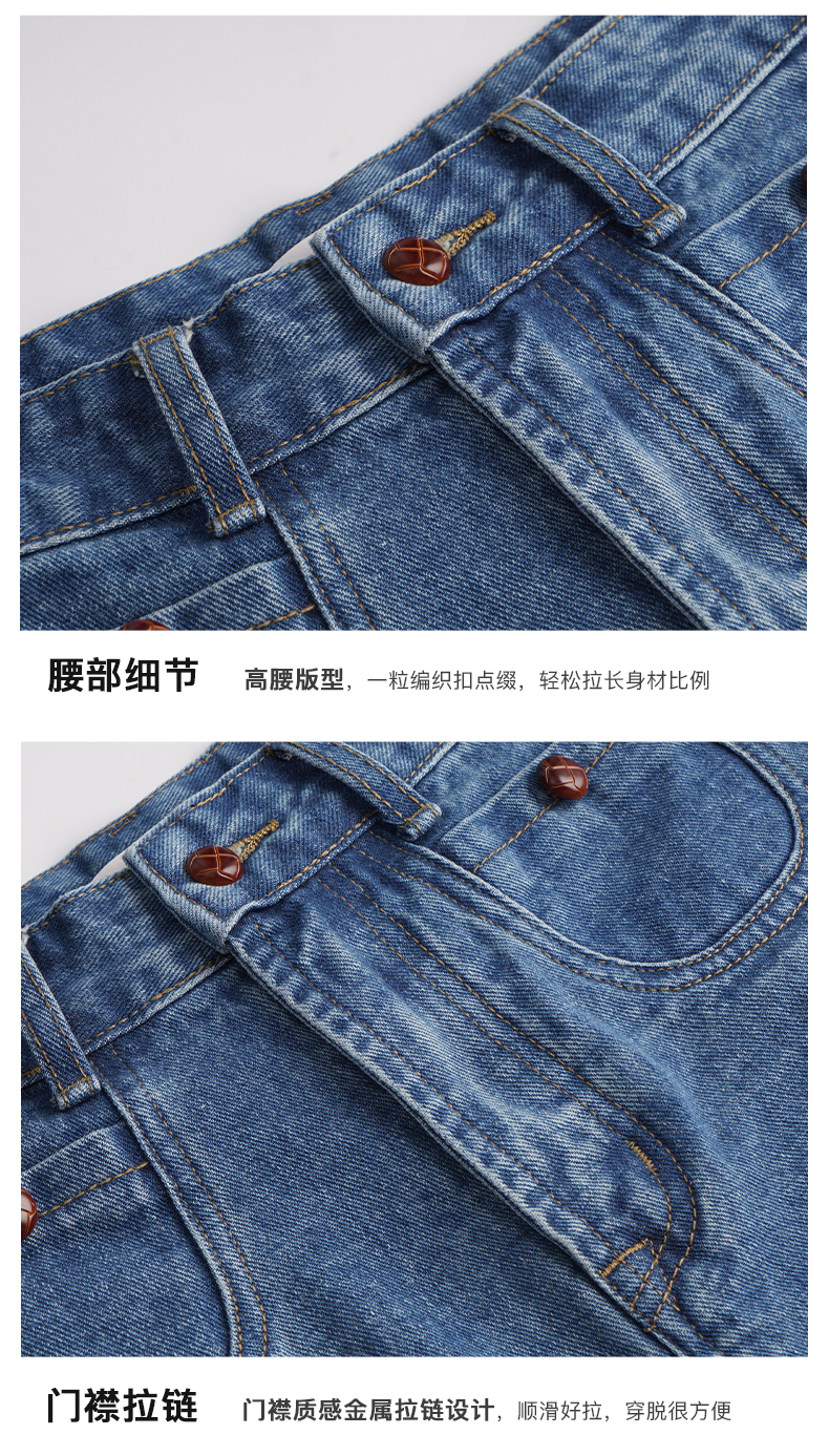 OLrain欧芮儿法式短款牛仔裤女春季2023年新款高腰阔腿直筒五分裤
