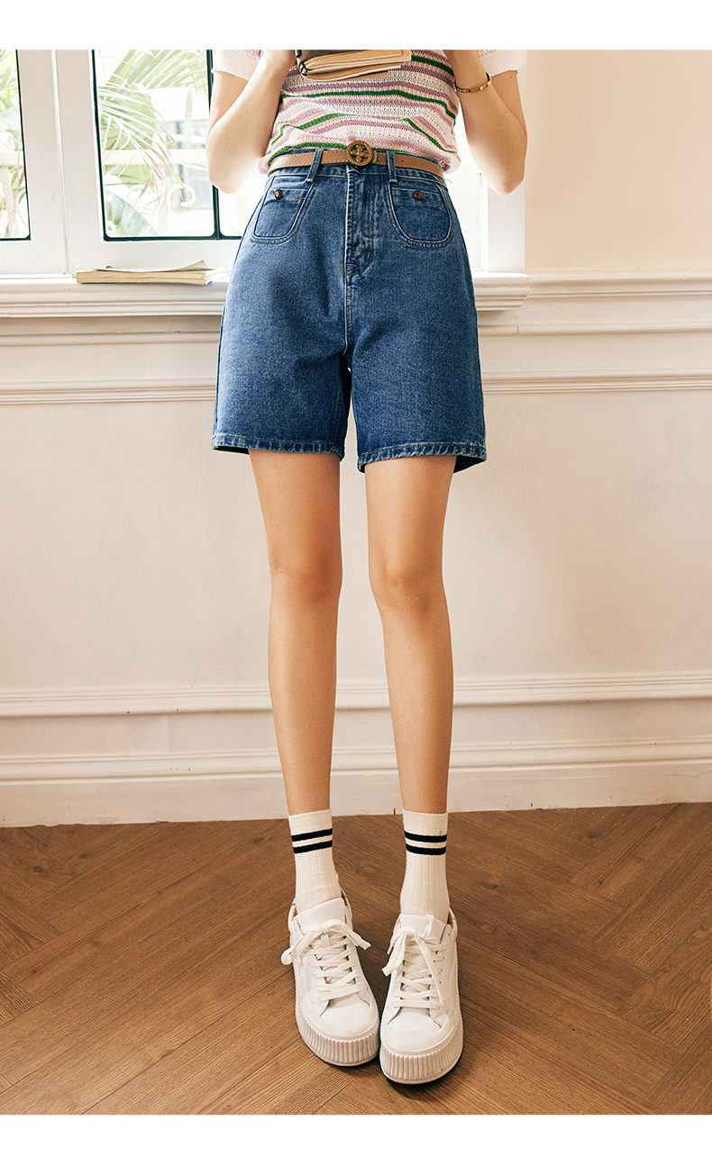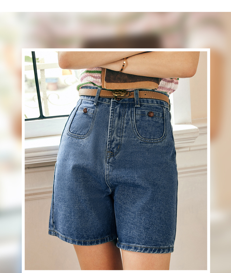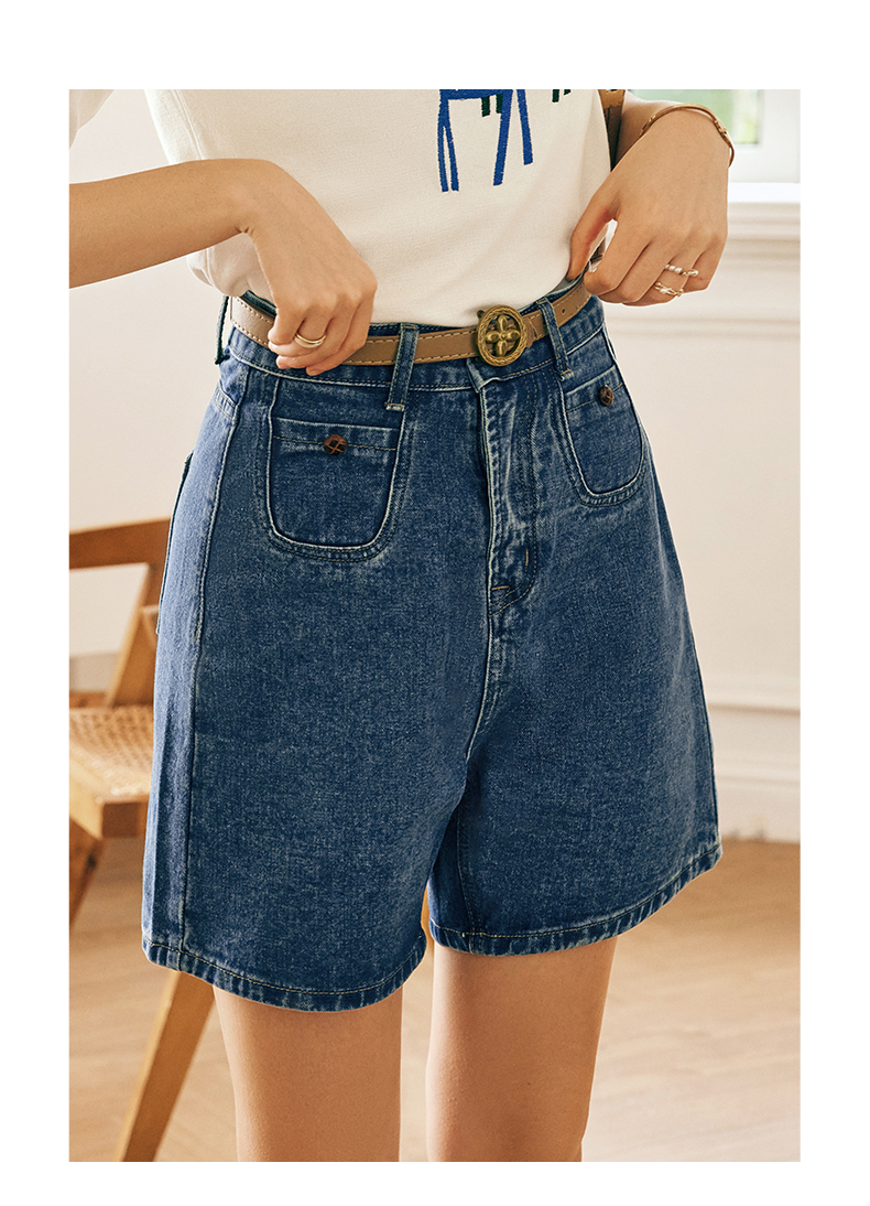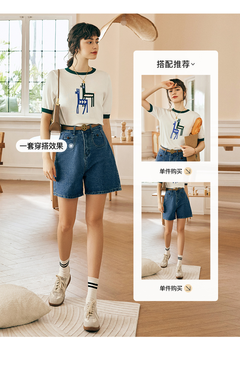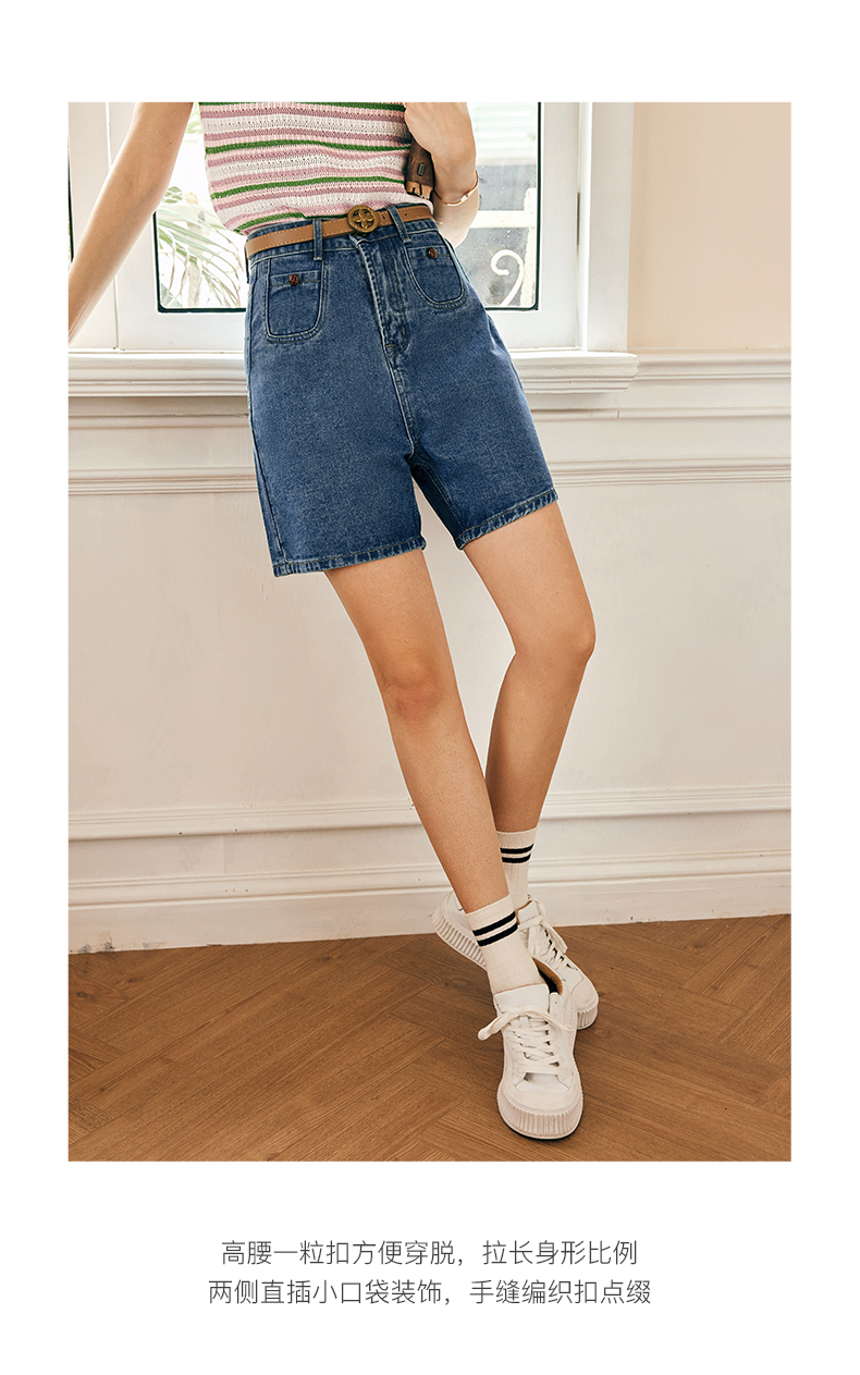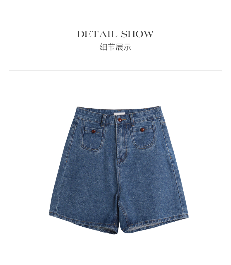 OLrain欧芮儿法式短款牛仔裤女春季2023年新款高腰阔腿直筒五分裤